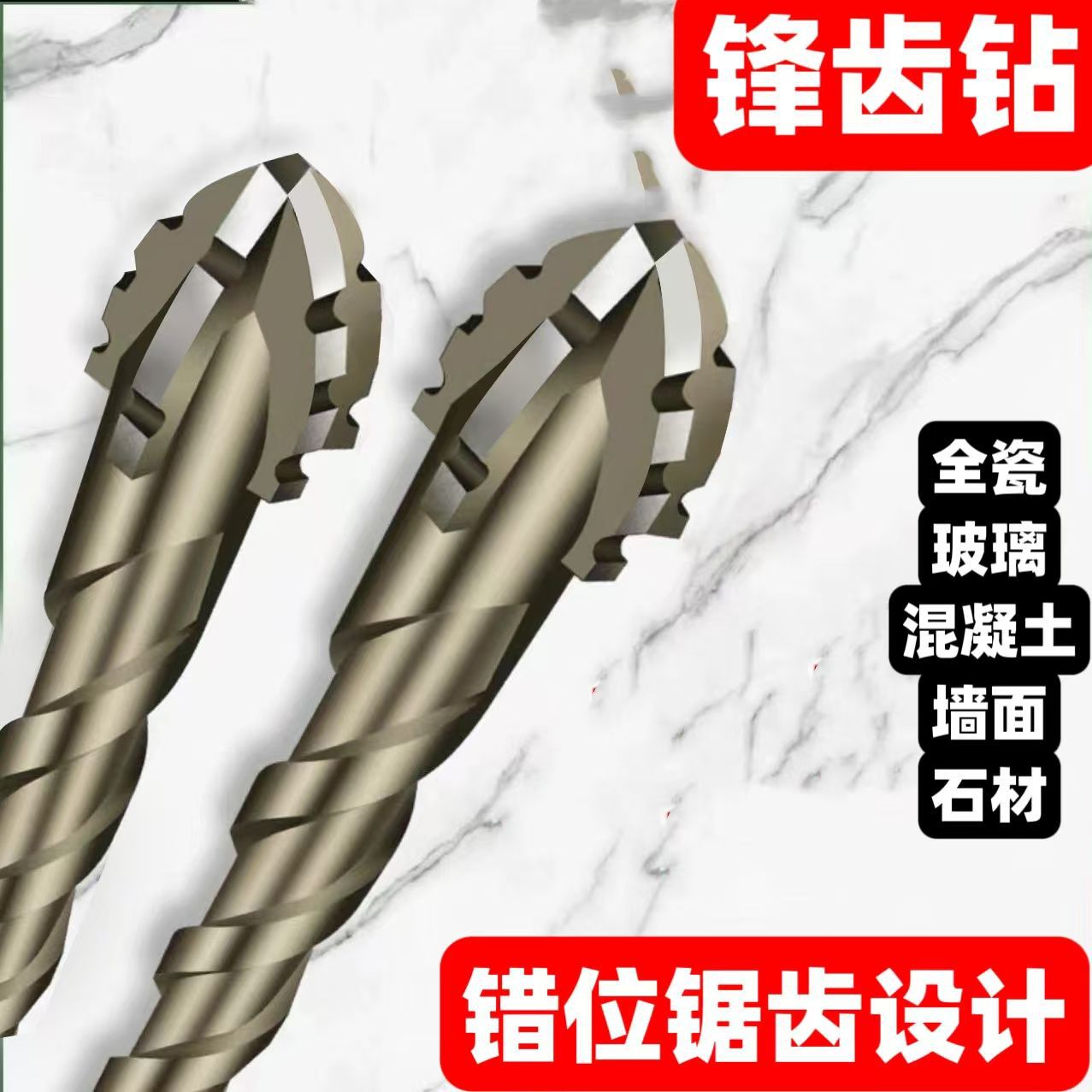 锋齿钻新款错位锯齿钨钢合金三角钻锋利耐磨家装干湿两用打孔钻头