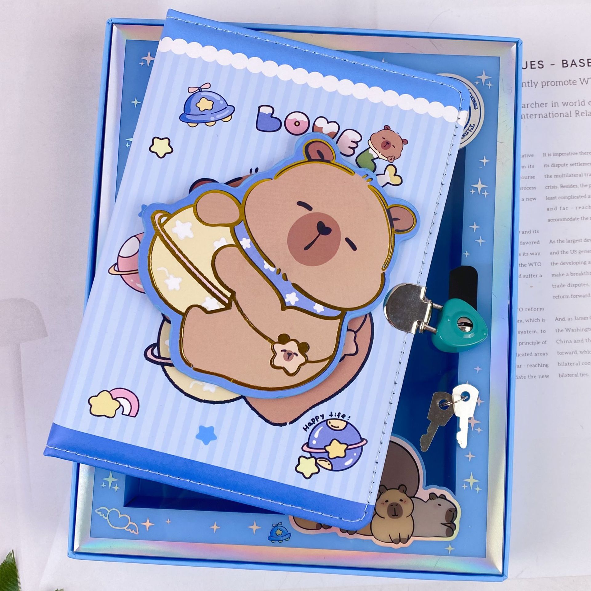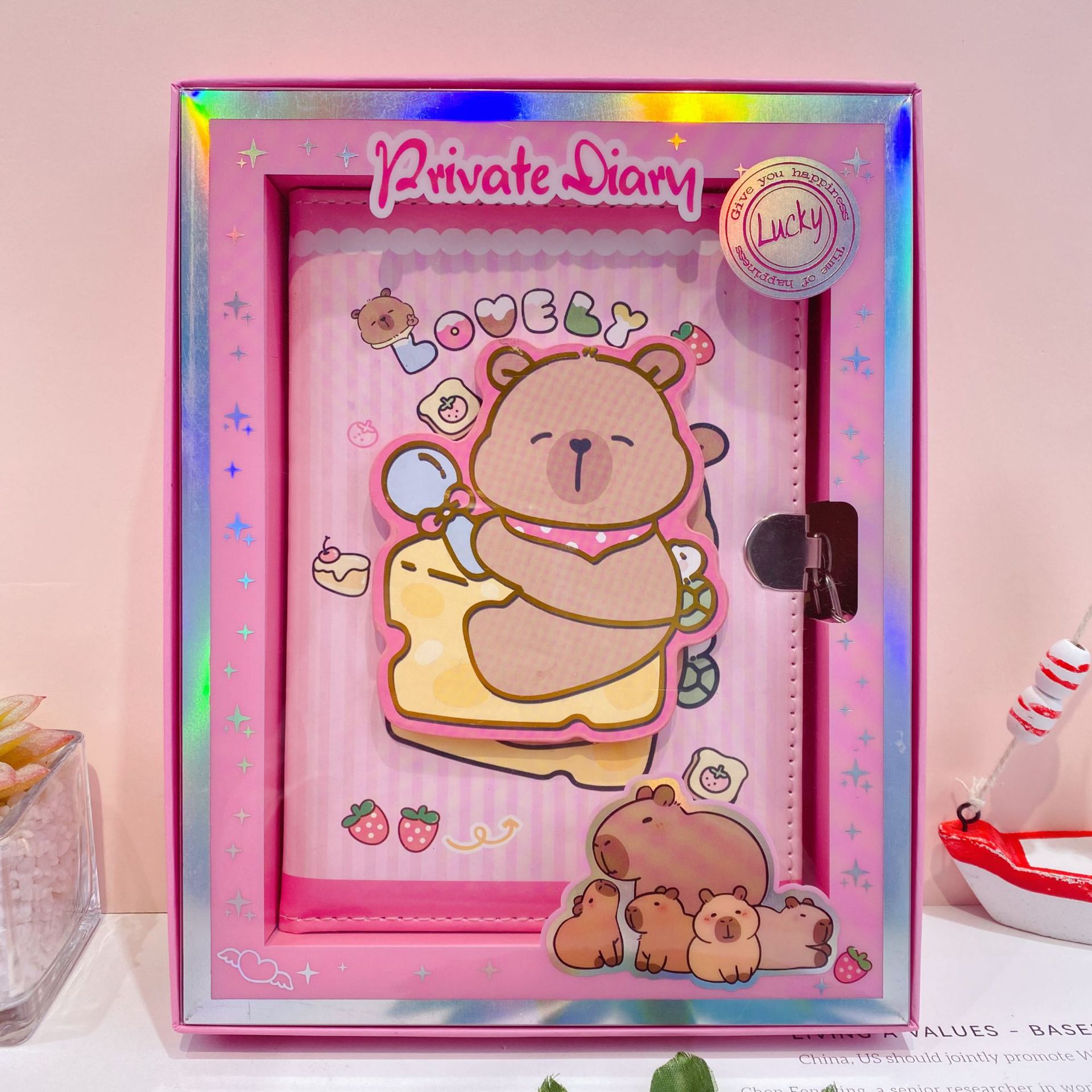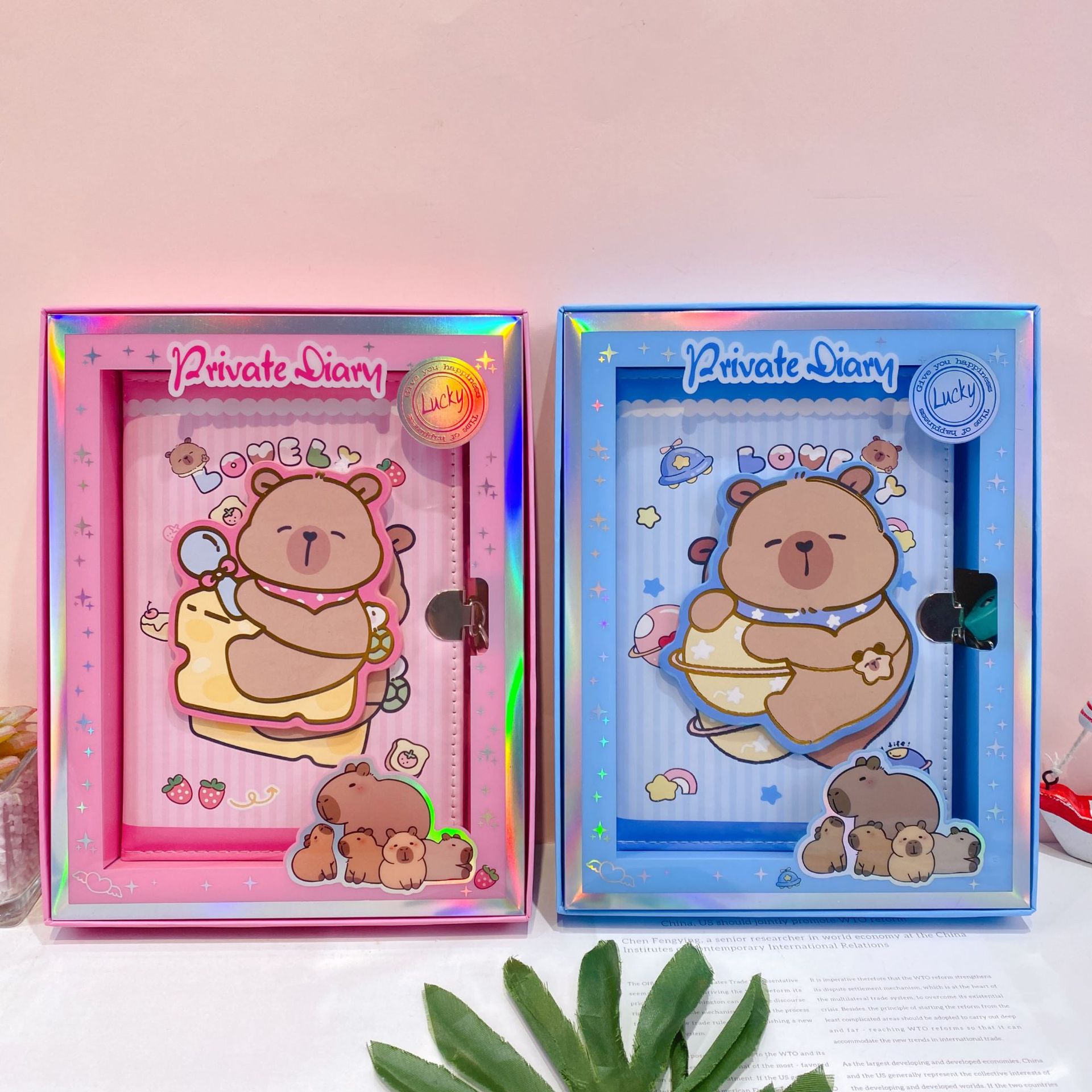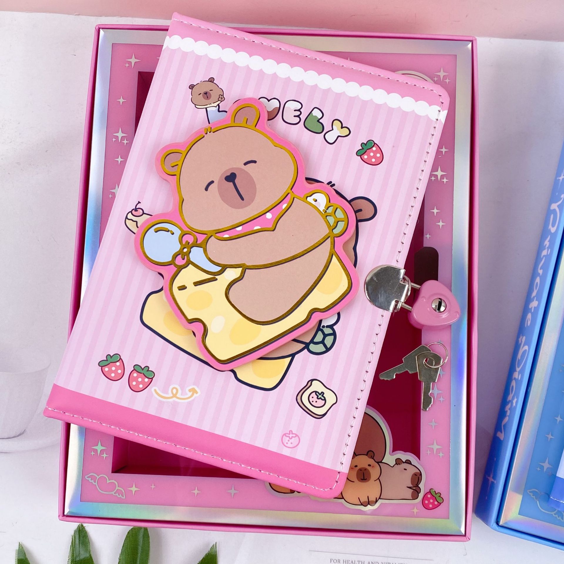 新款卡皮巴拉转转乐pu皮带锁手账本可爱卡通潮玩减压转转笔记本子