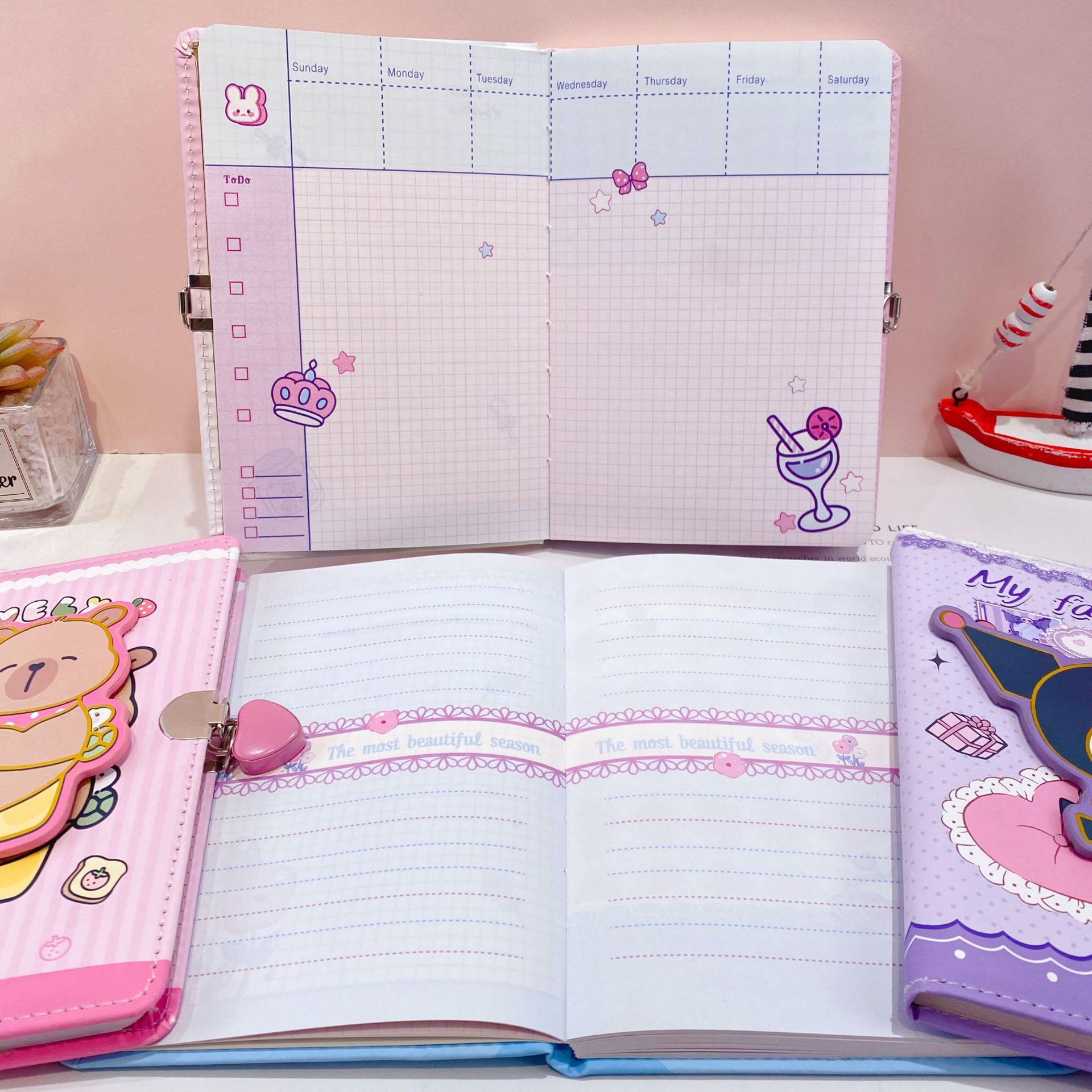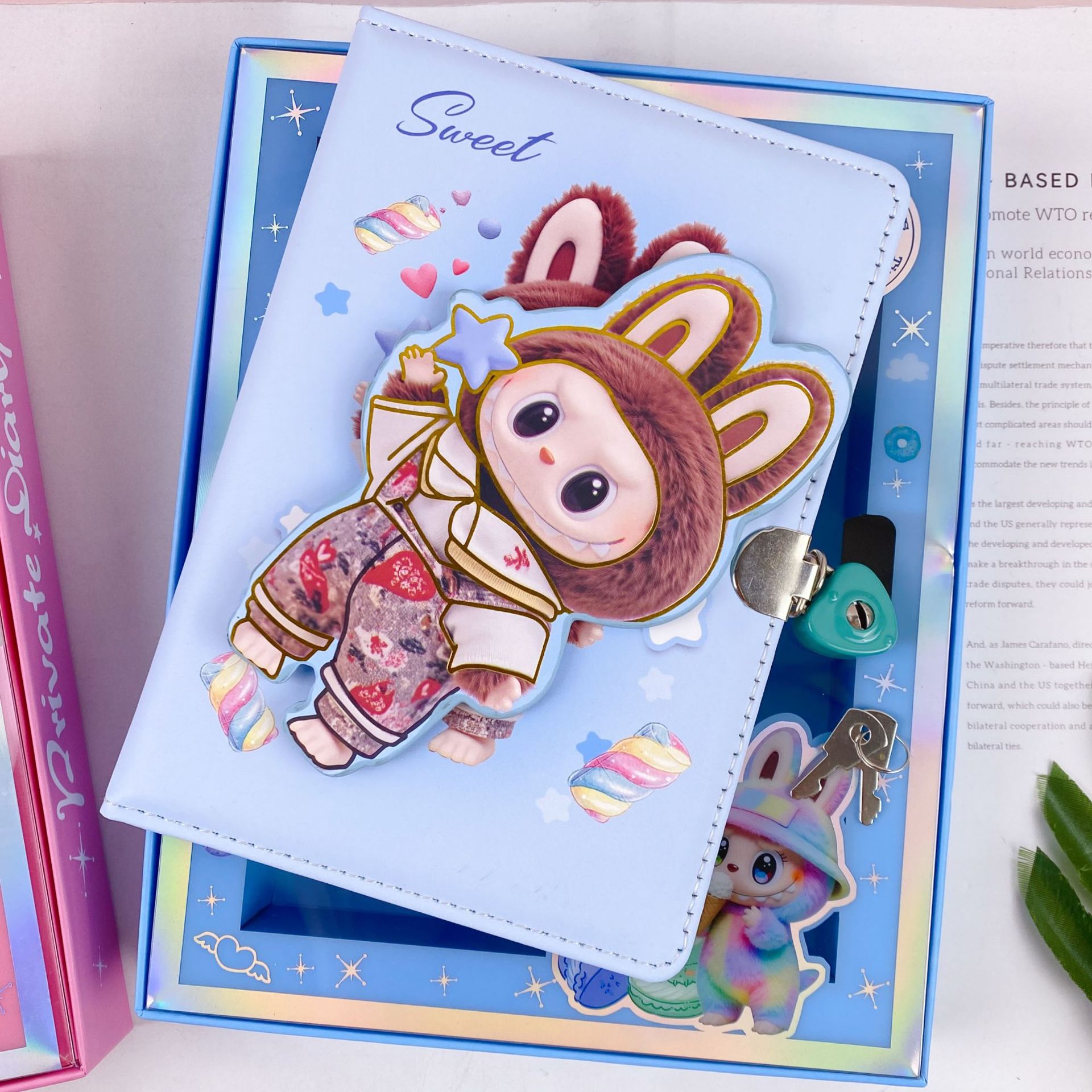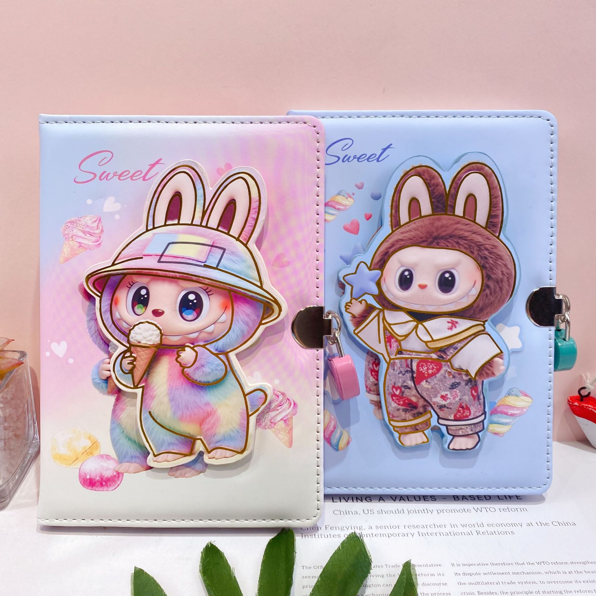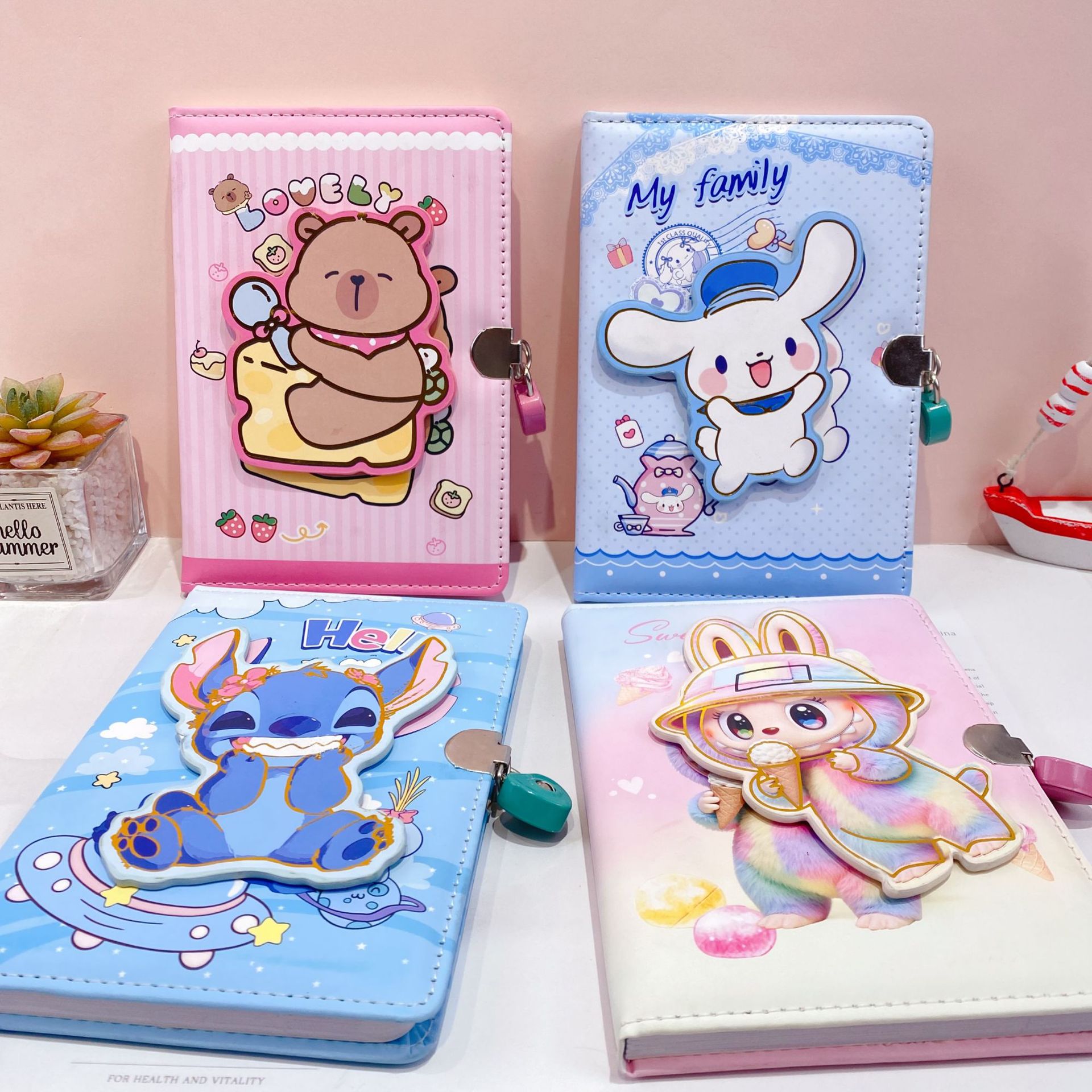 新款卡皮巴拉转转乐pu皮带锁手账本可爱卡通潮玩减压转转笔记本子