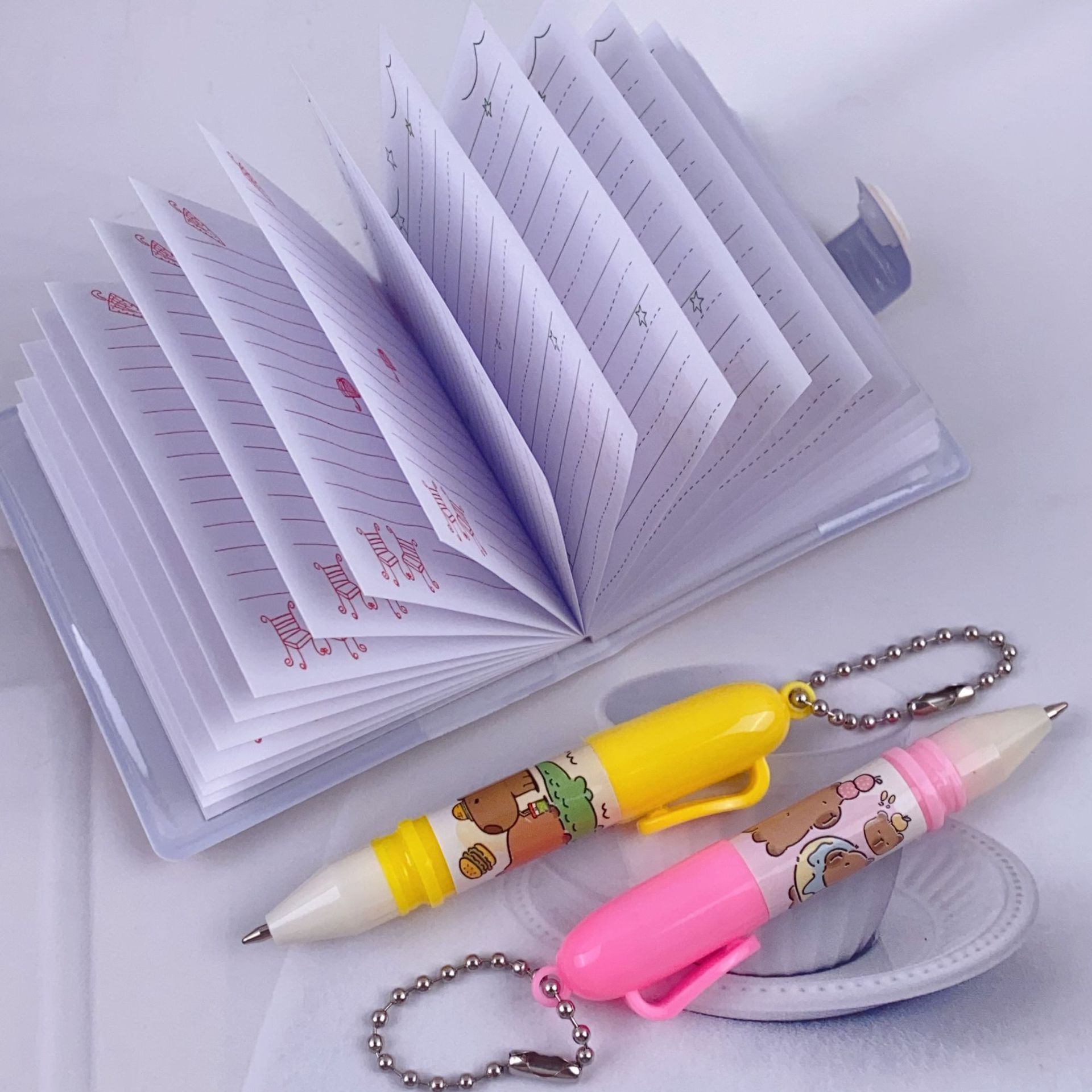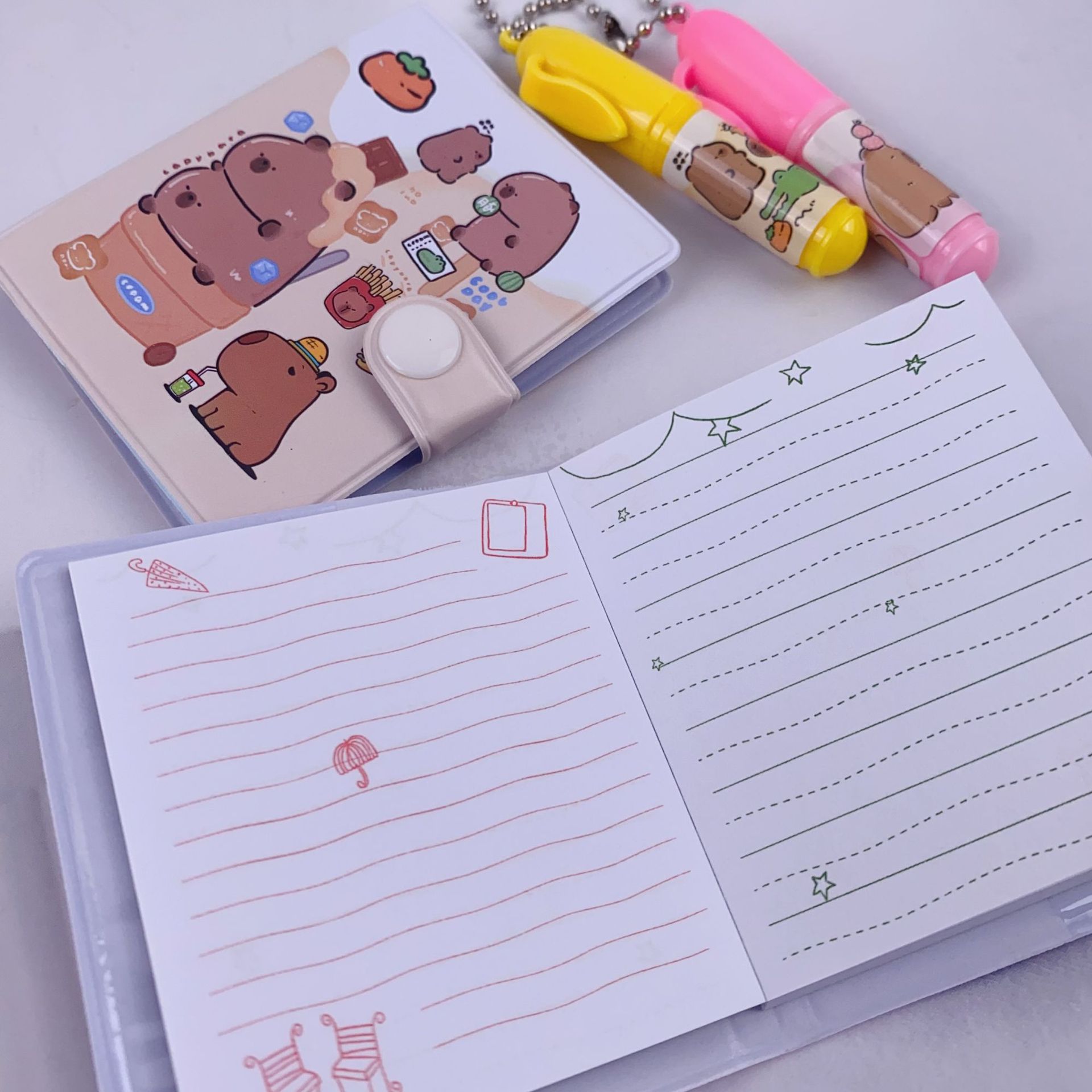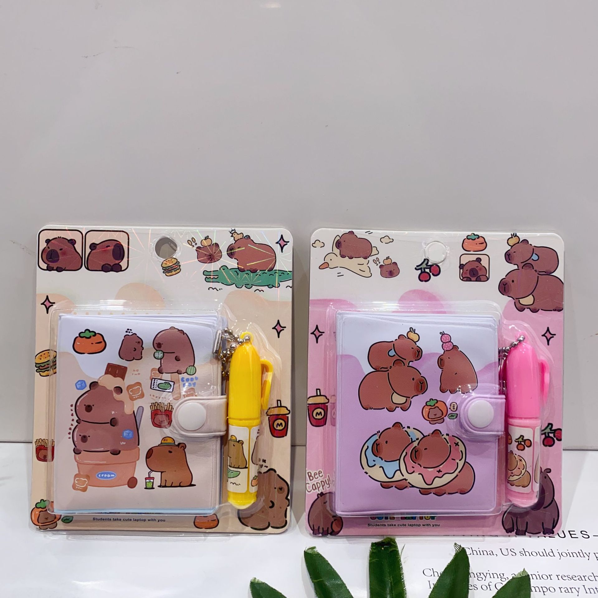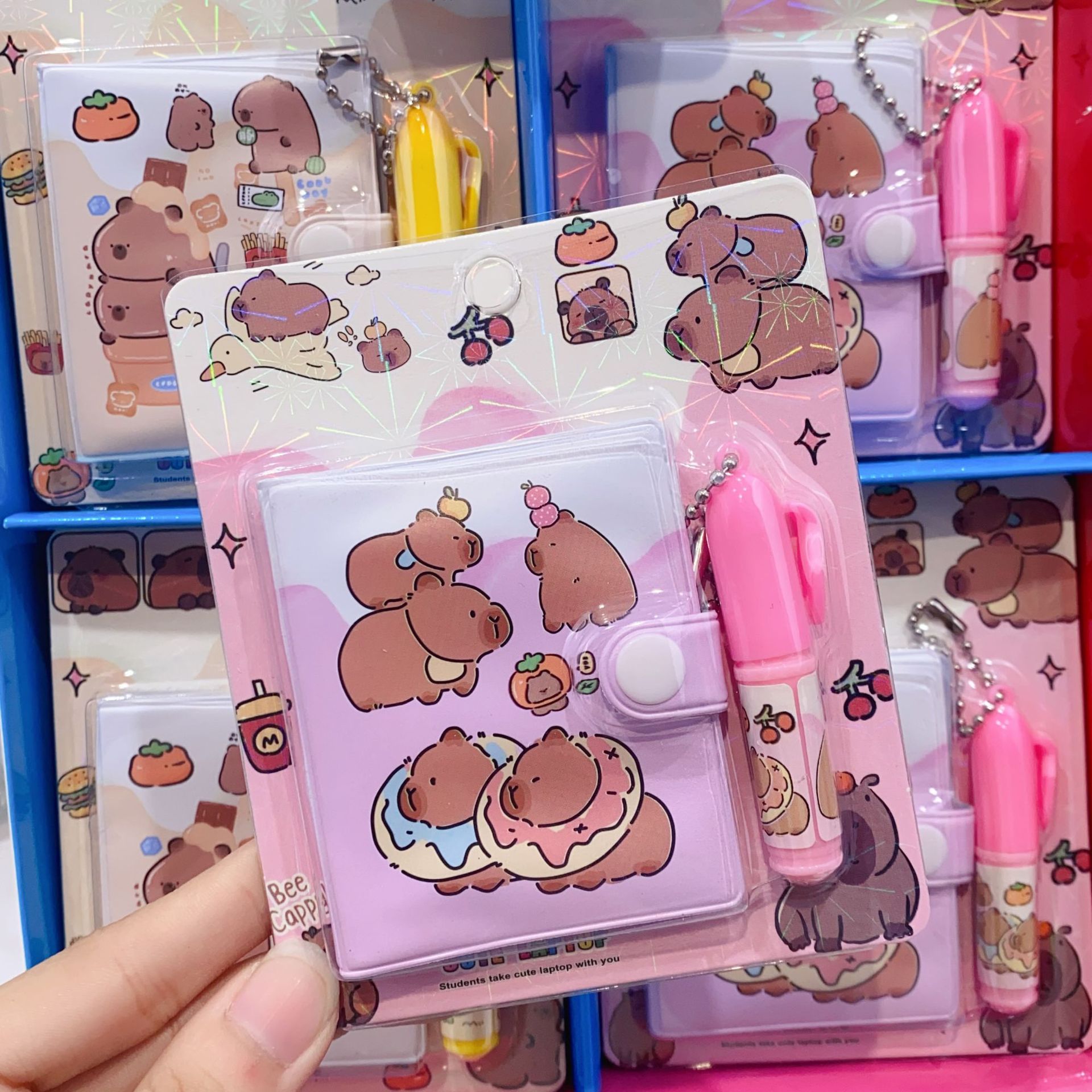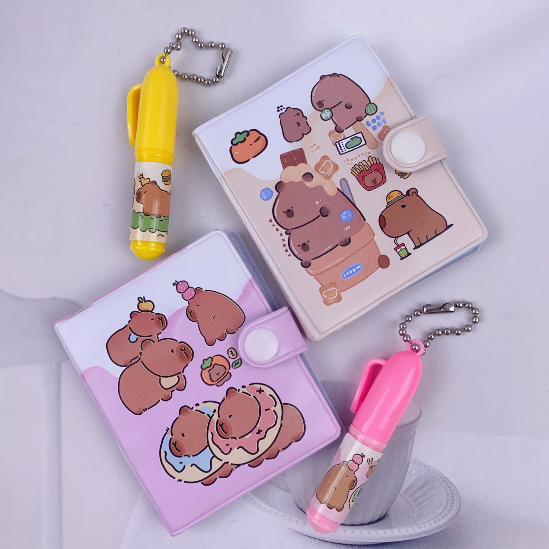 新款卡通暴富卡皮巴拉本子加圆珠笔套装文具可爱便携手账本笔记本