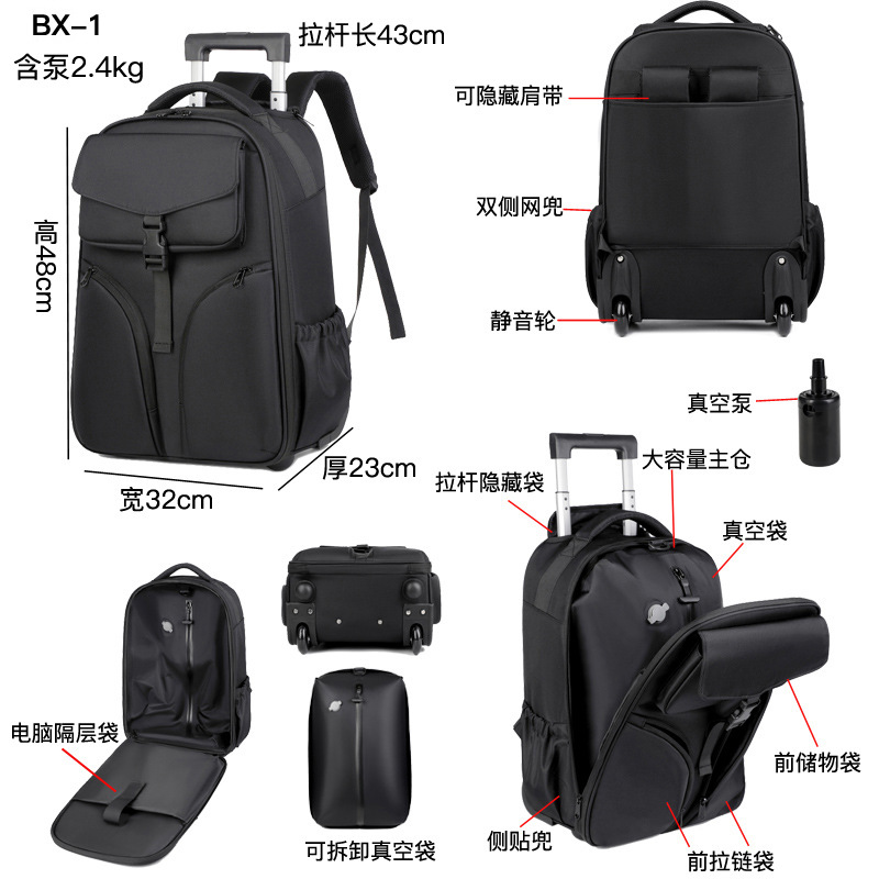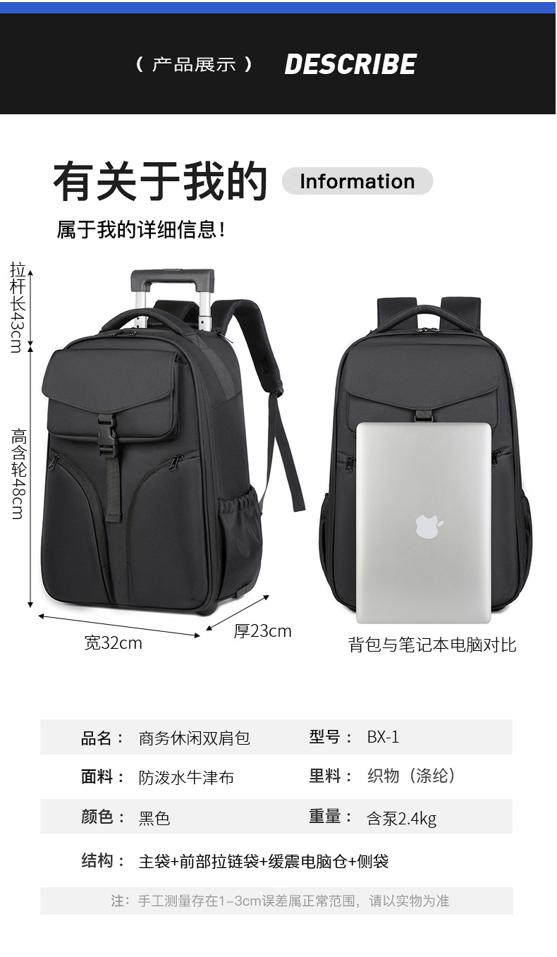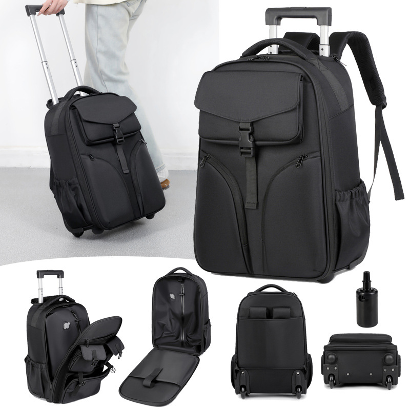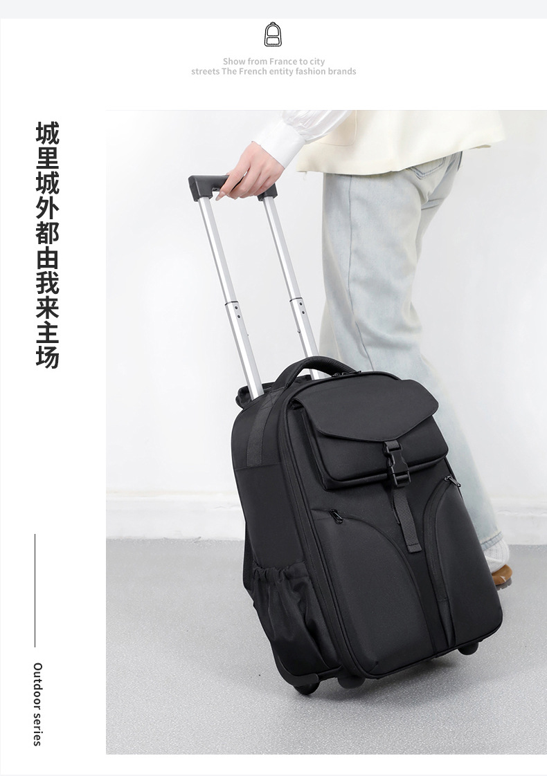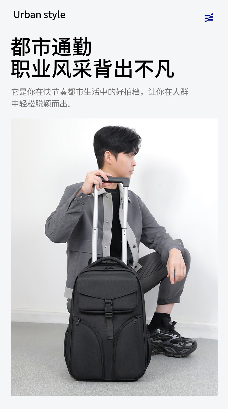 新款通勤拉杆双肩包带轮子出差收纳行李电脑包商务大容量旅行背包