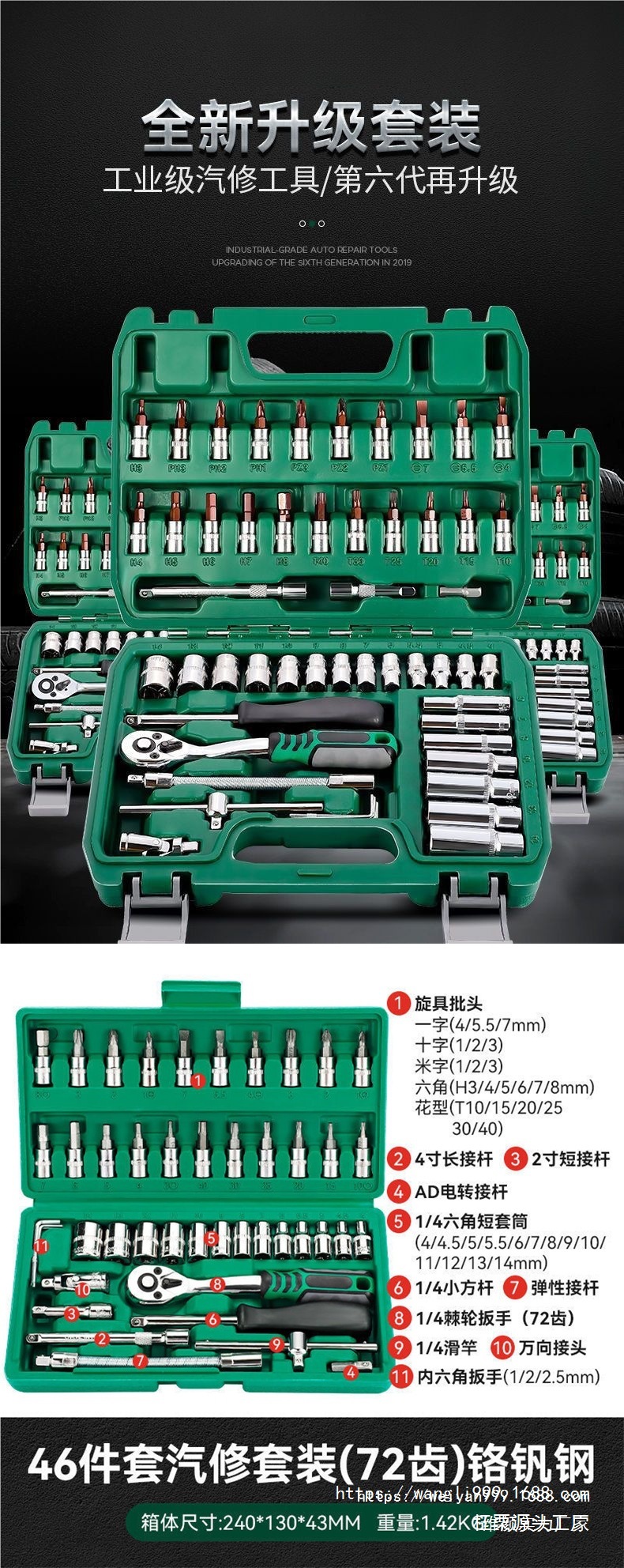 汽修小飞53件修车工具套装 五金汽修棘轮扳手修理套筒工具箱