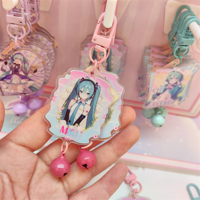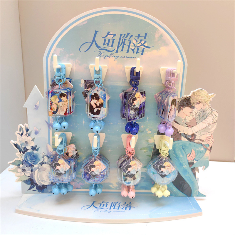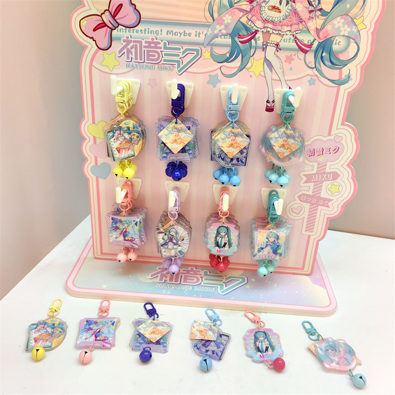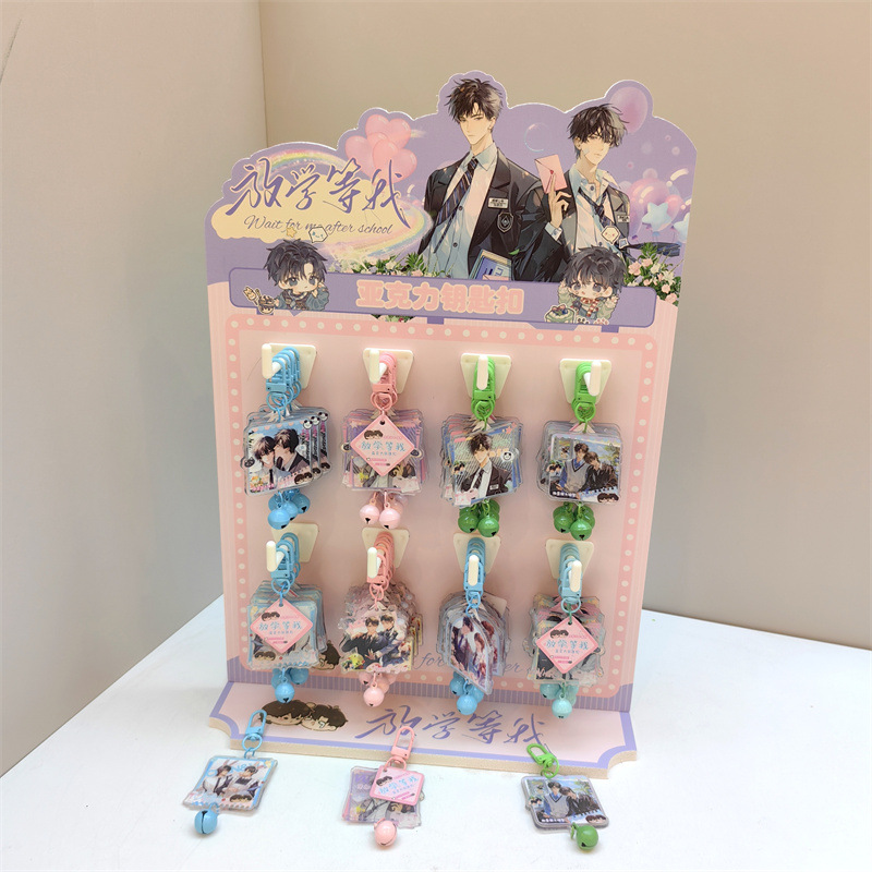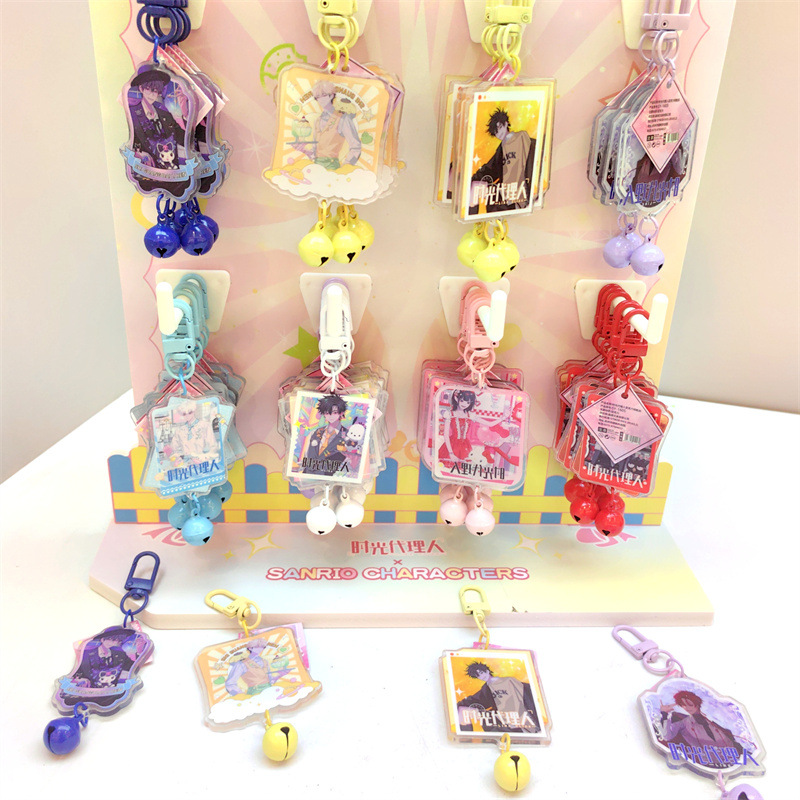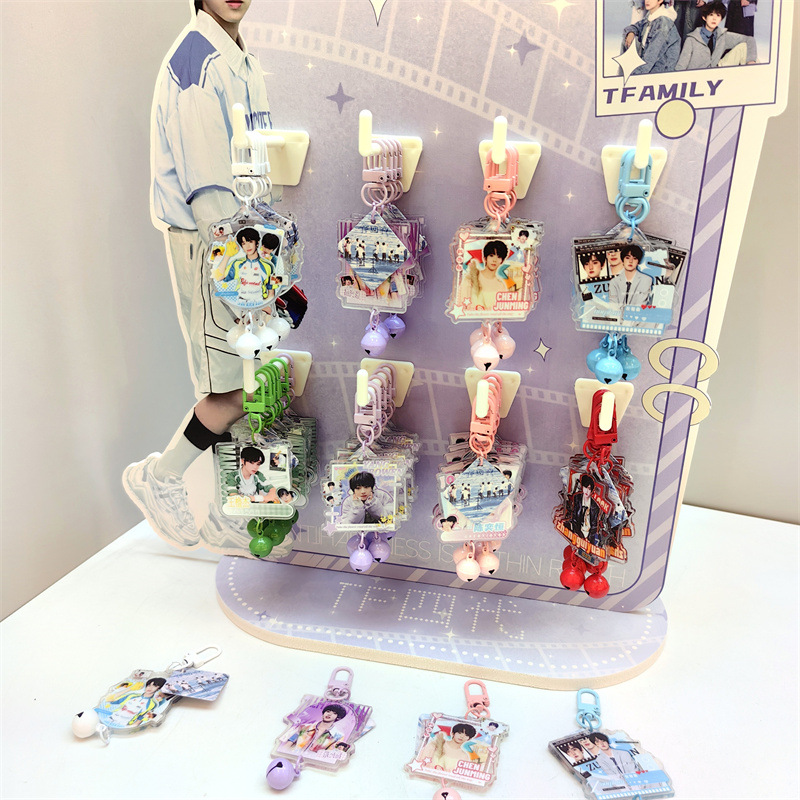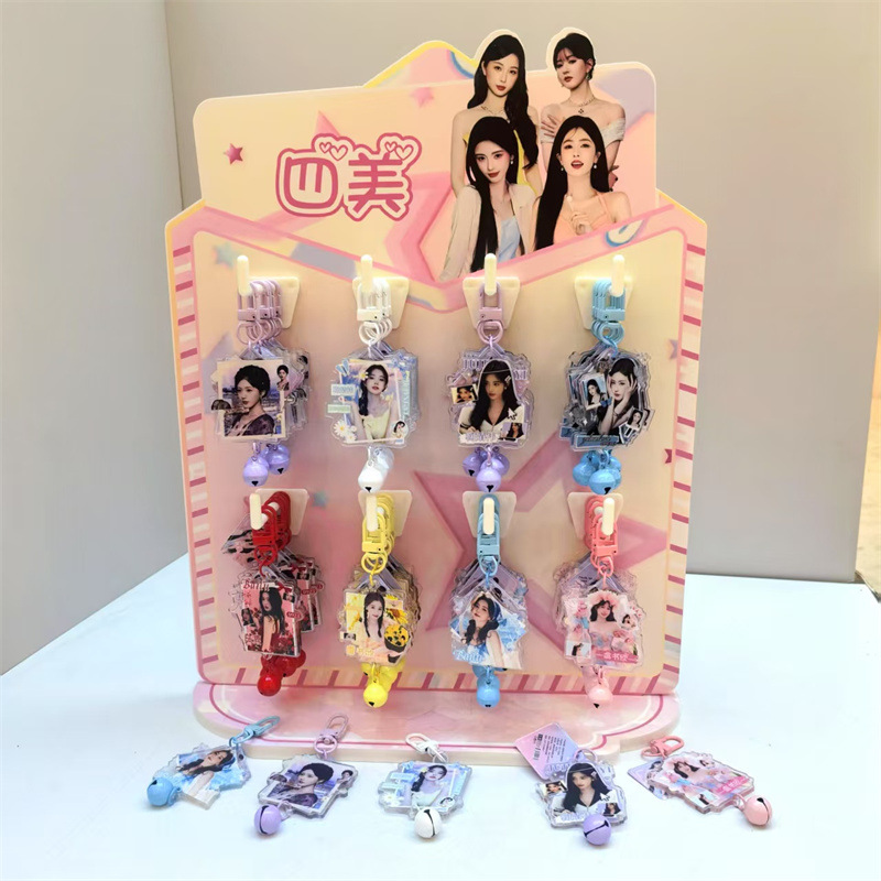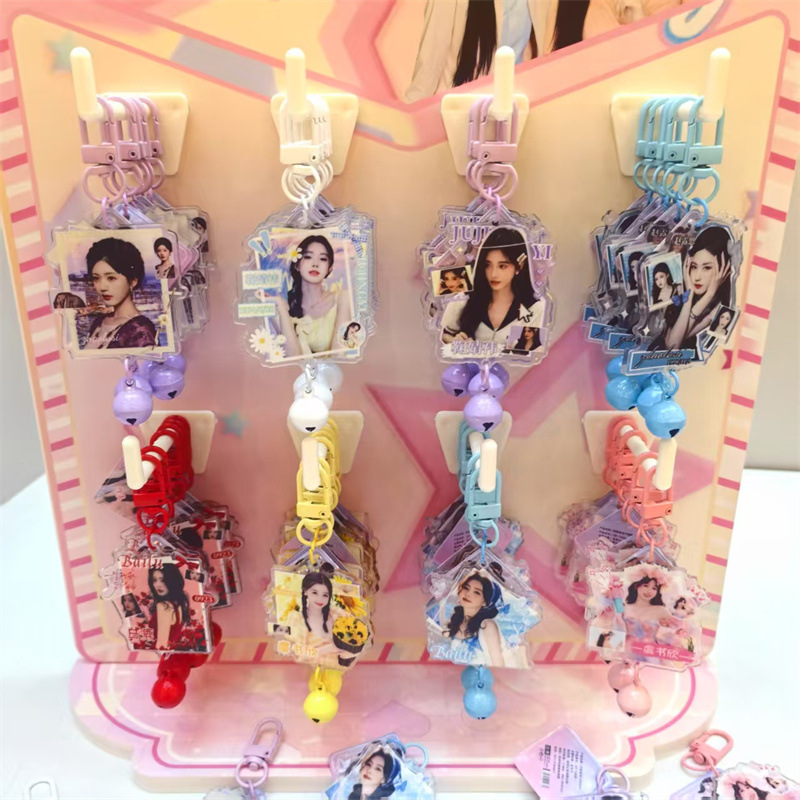 创意明星动漫铃铛钥匙扣挂件48个送架子亚克力铃铛小挂件现货批发