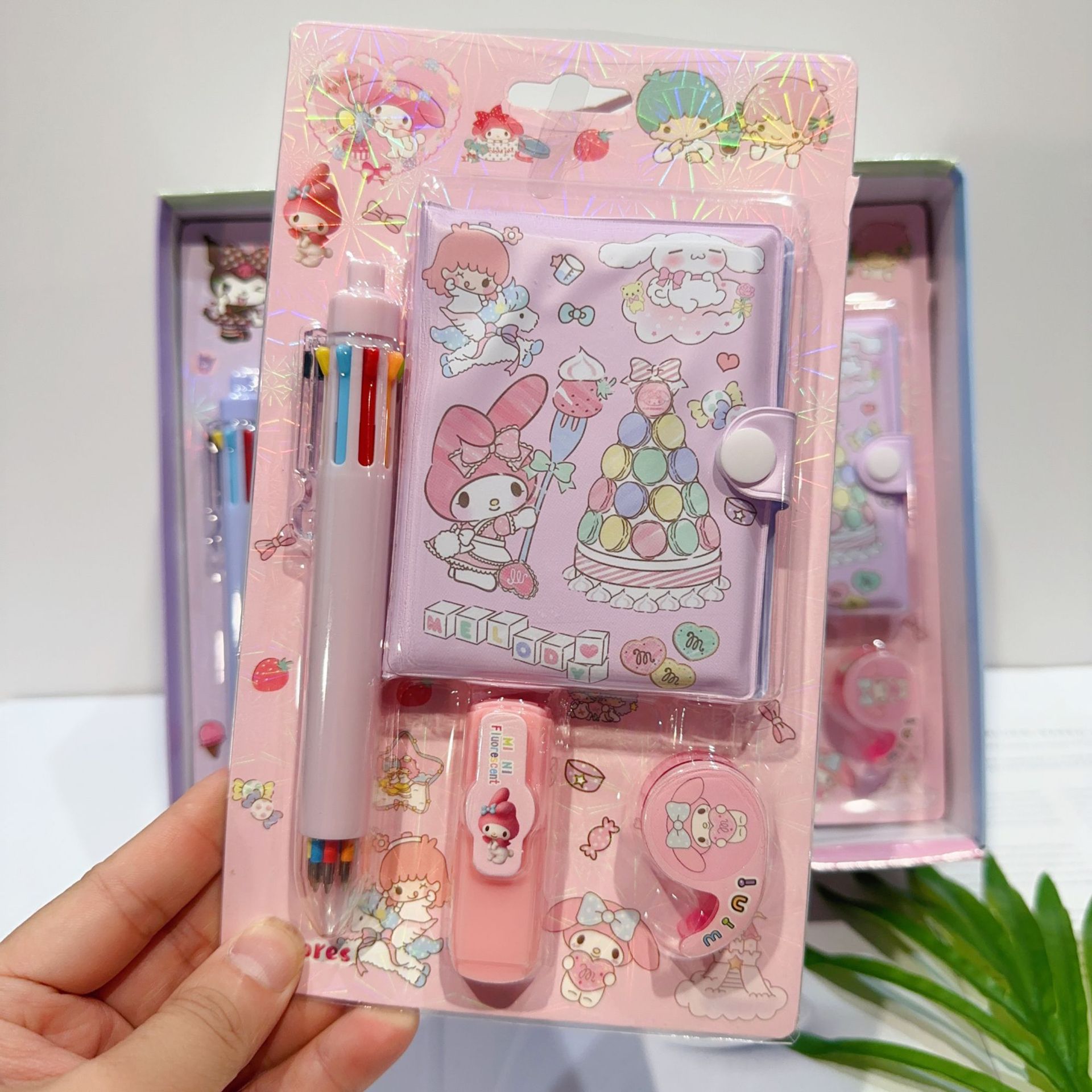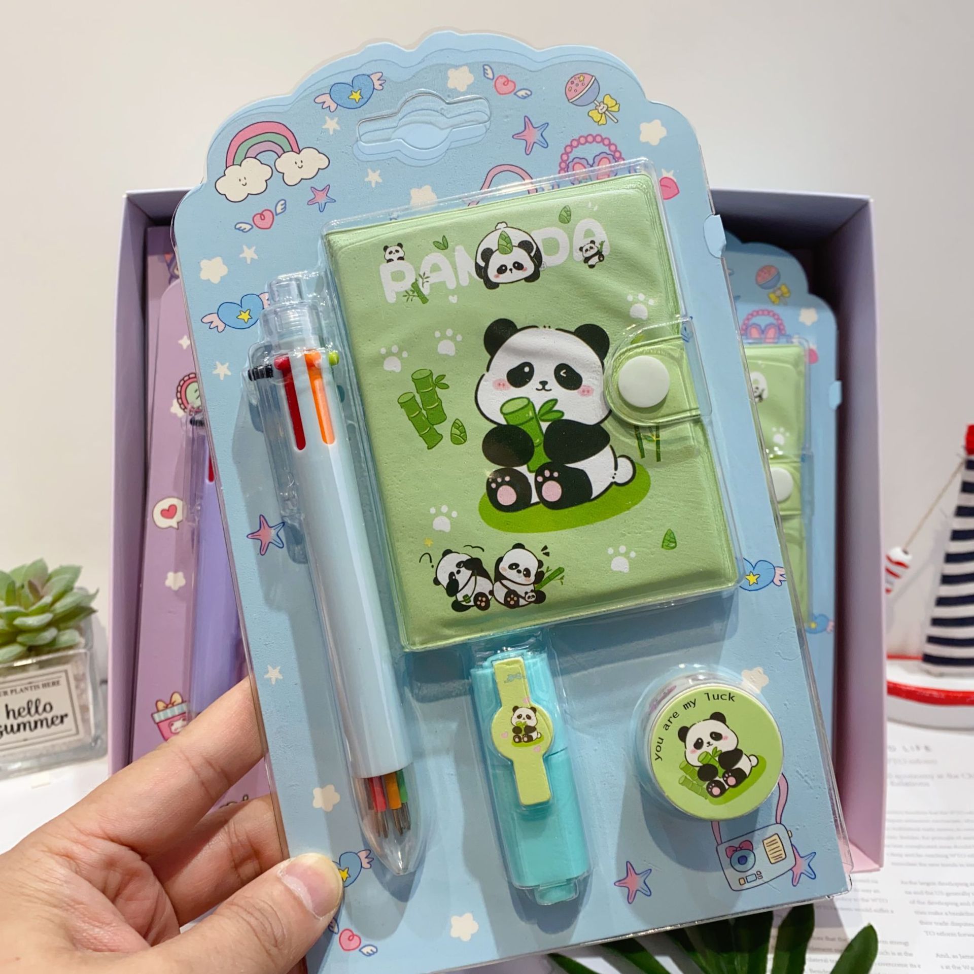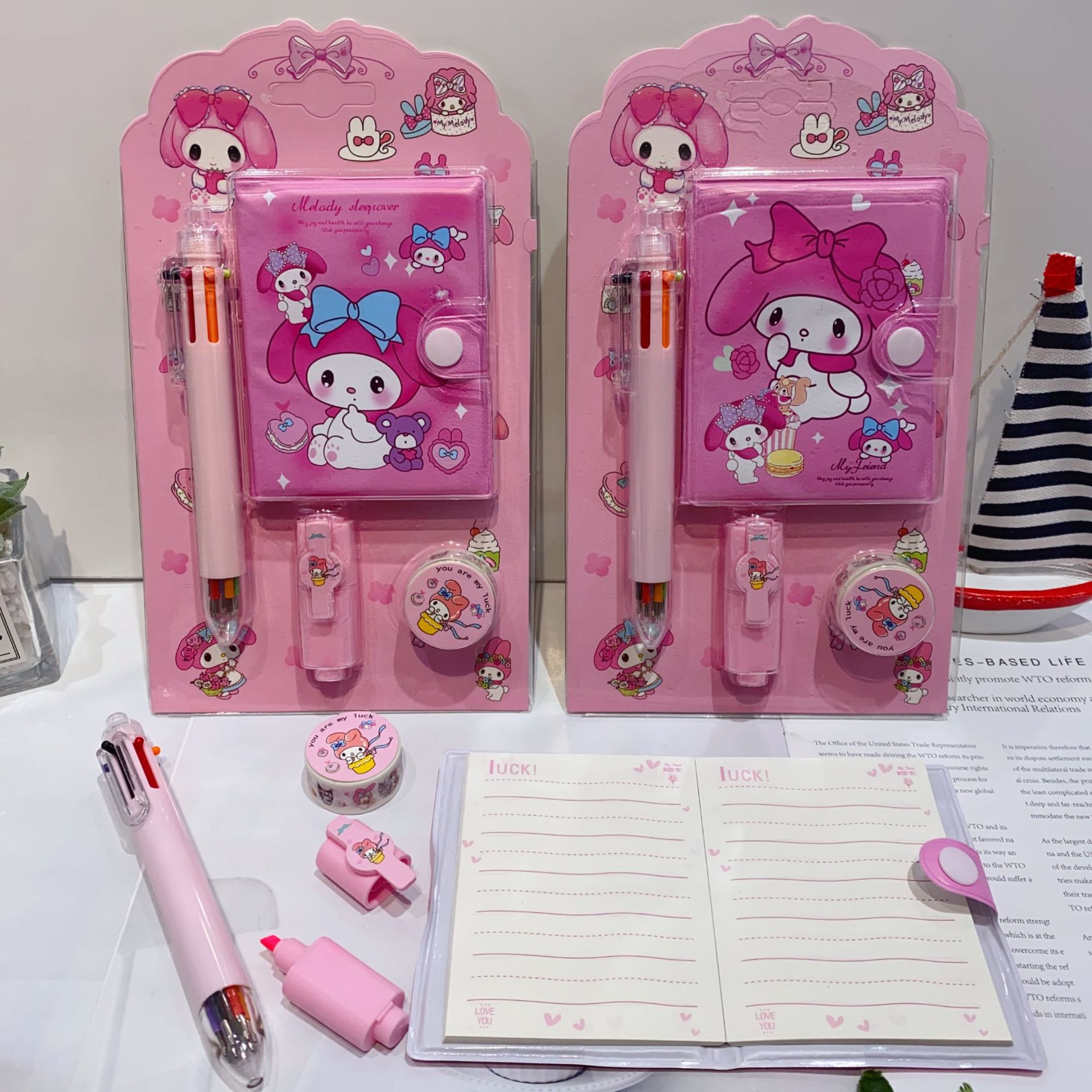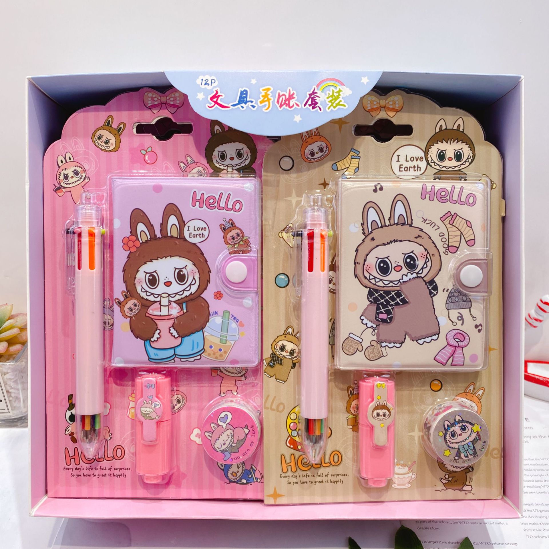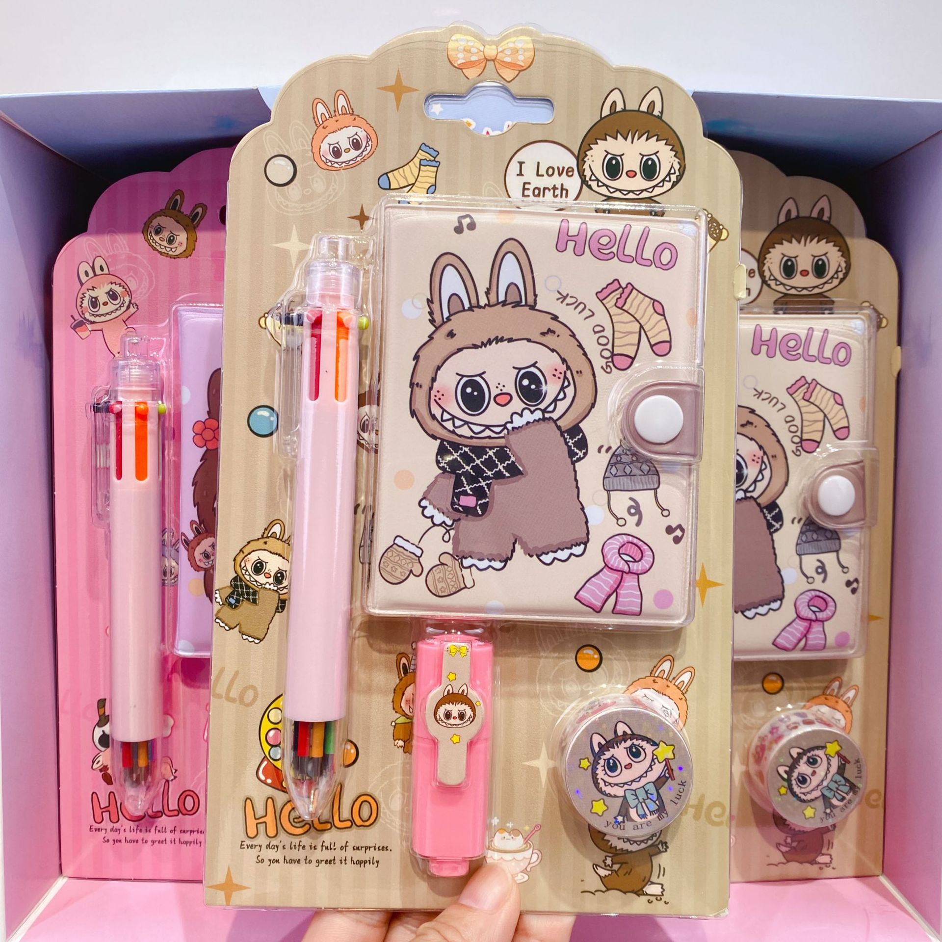 三丽欧卡通文具套装可爱学生组合文具笔记本多色笔荧光笔礼品套装