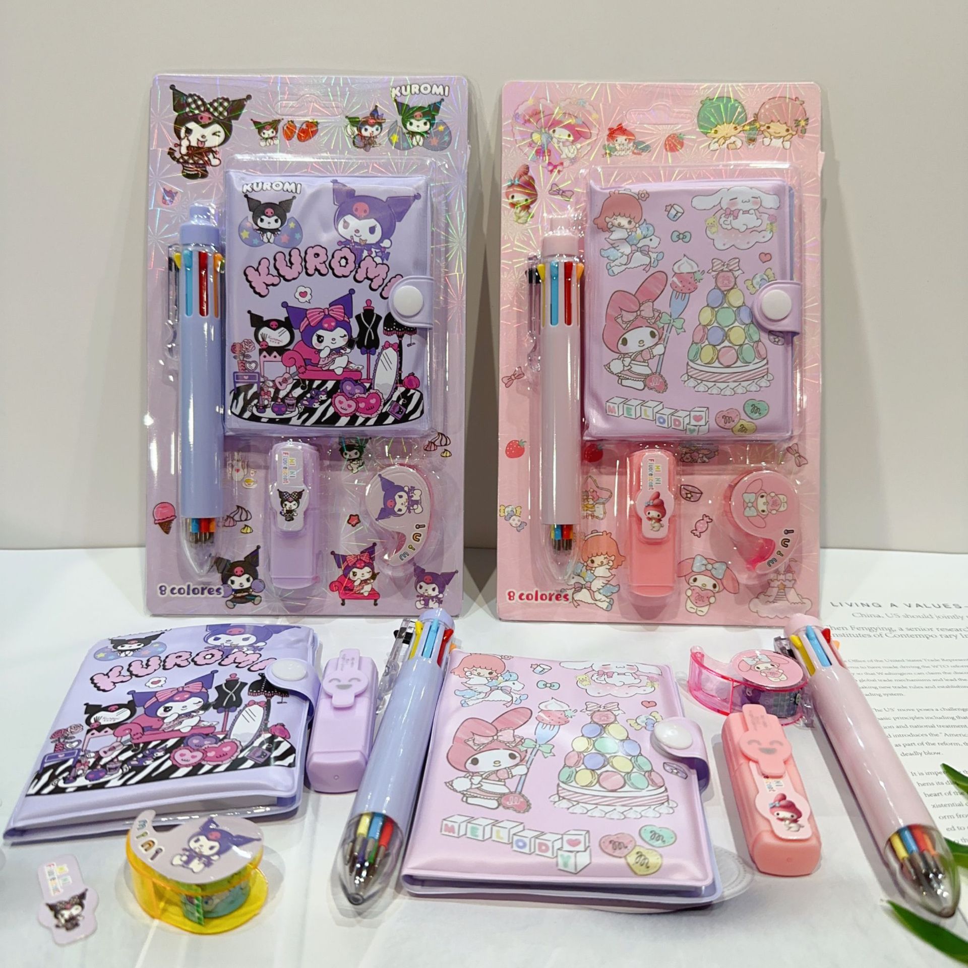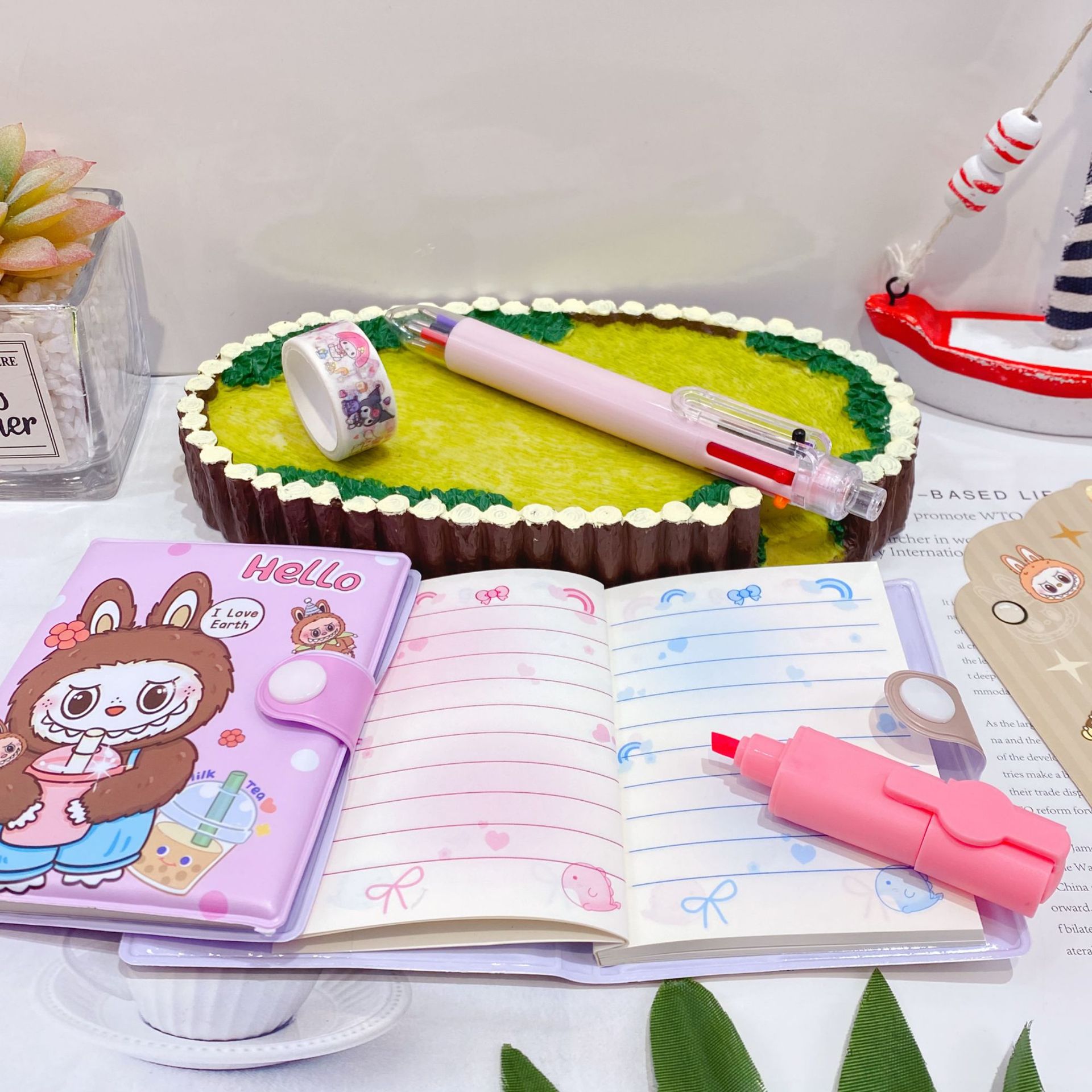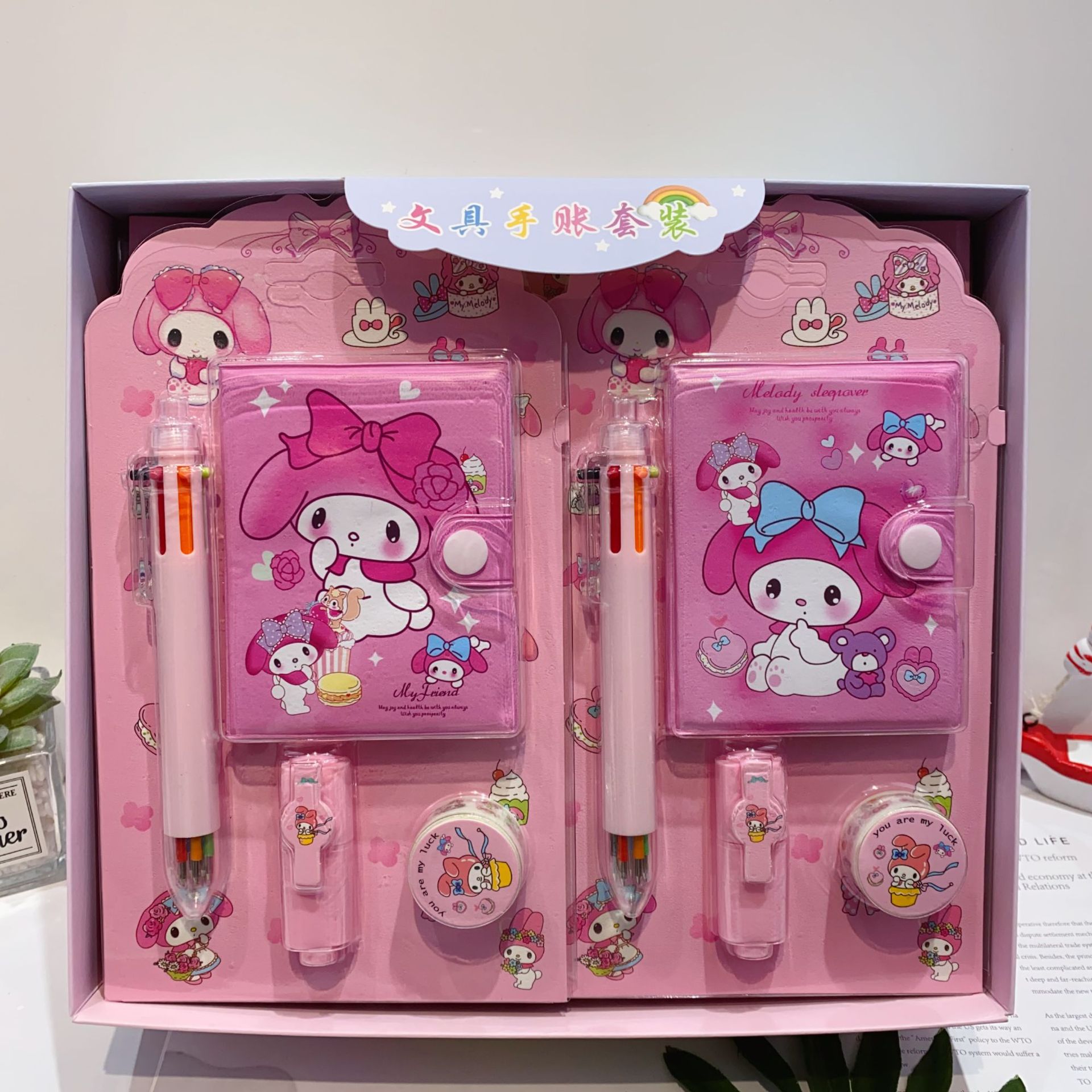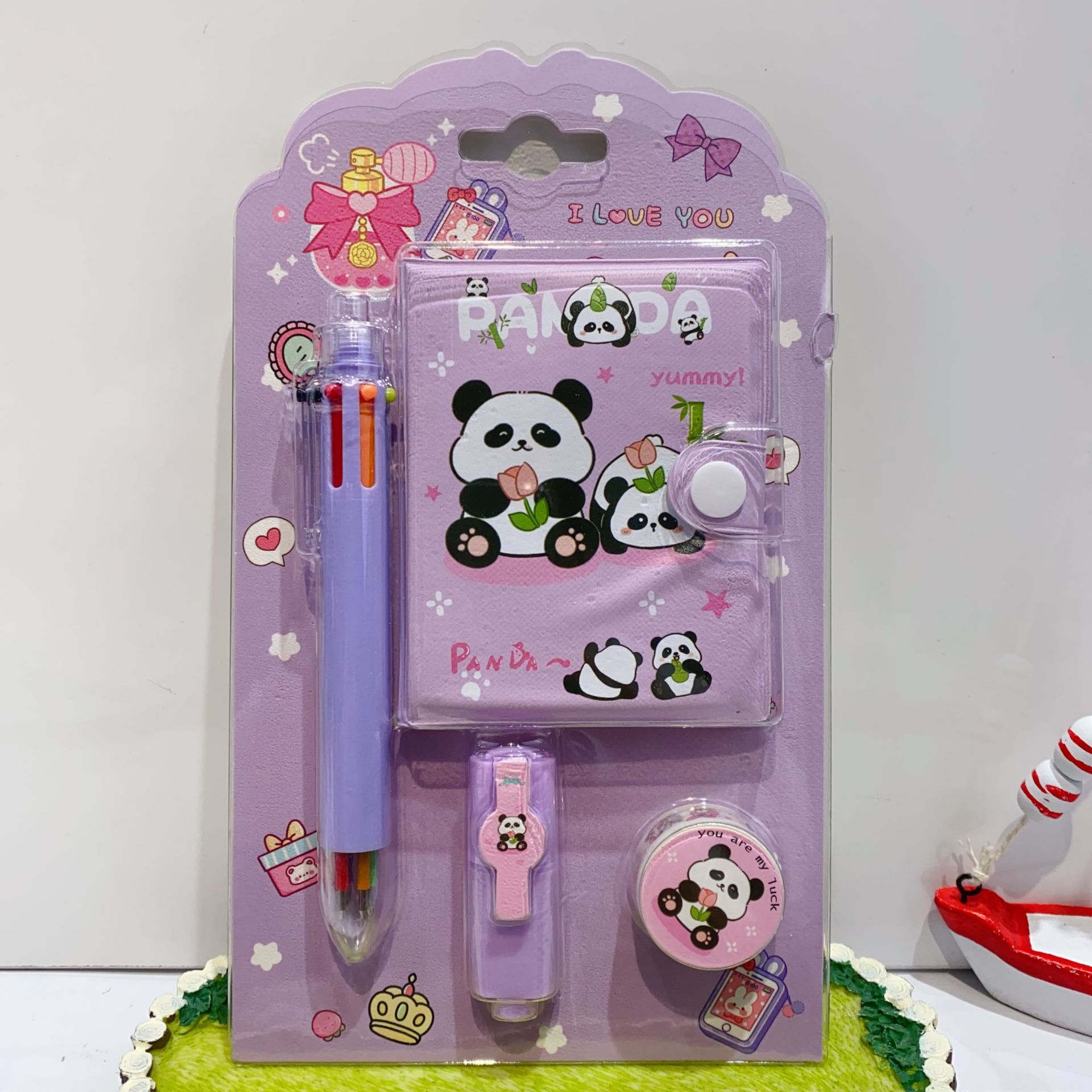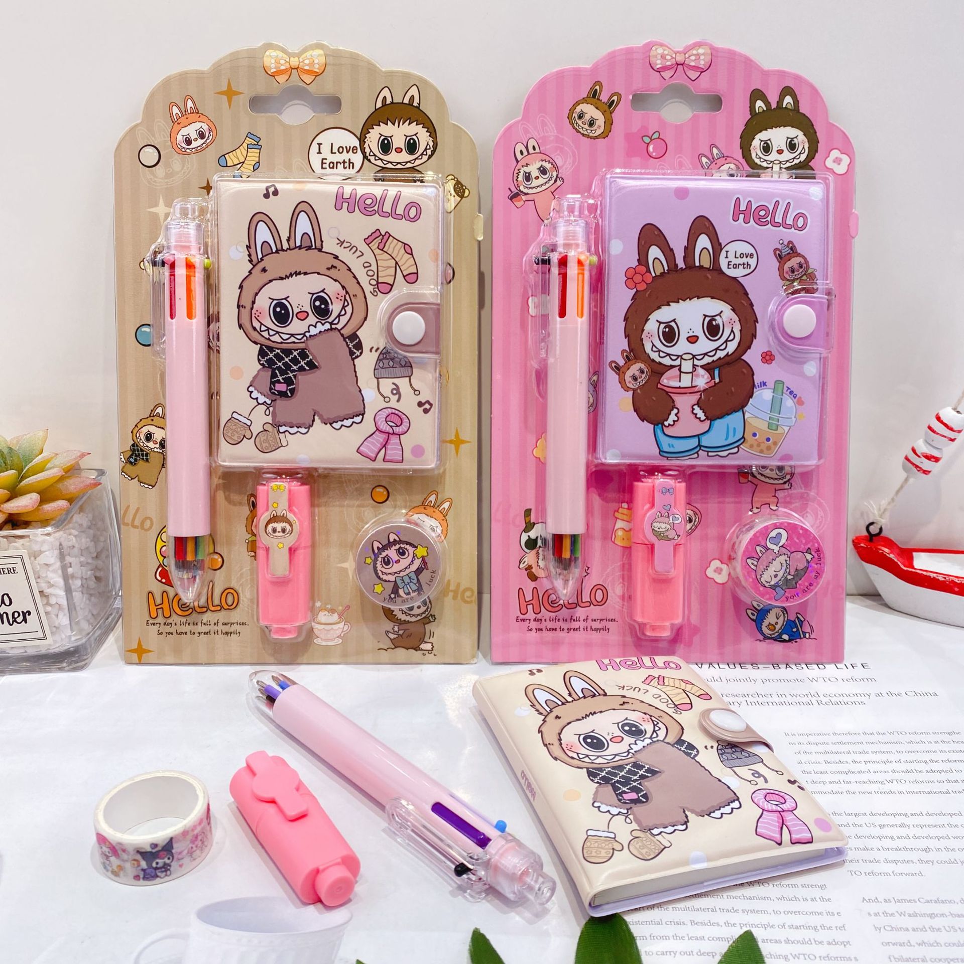 三丽欧卡通文具套装可爱学生组合文具笔记本多色笔荧光笔礼品套装