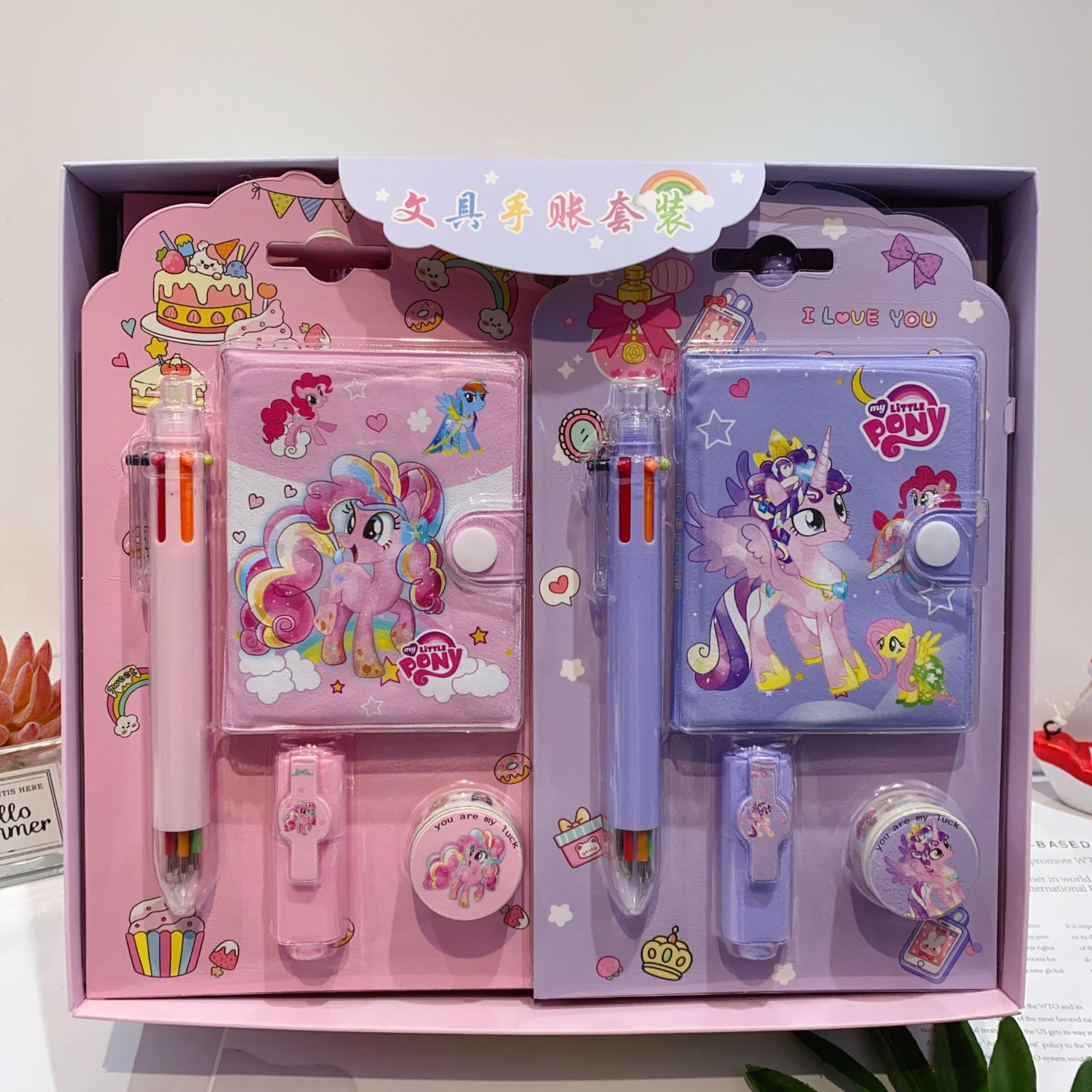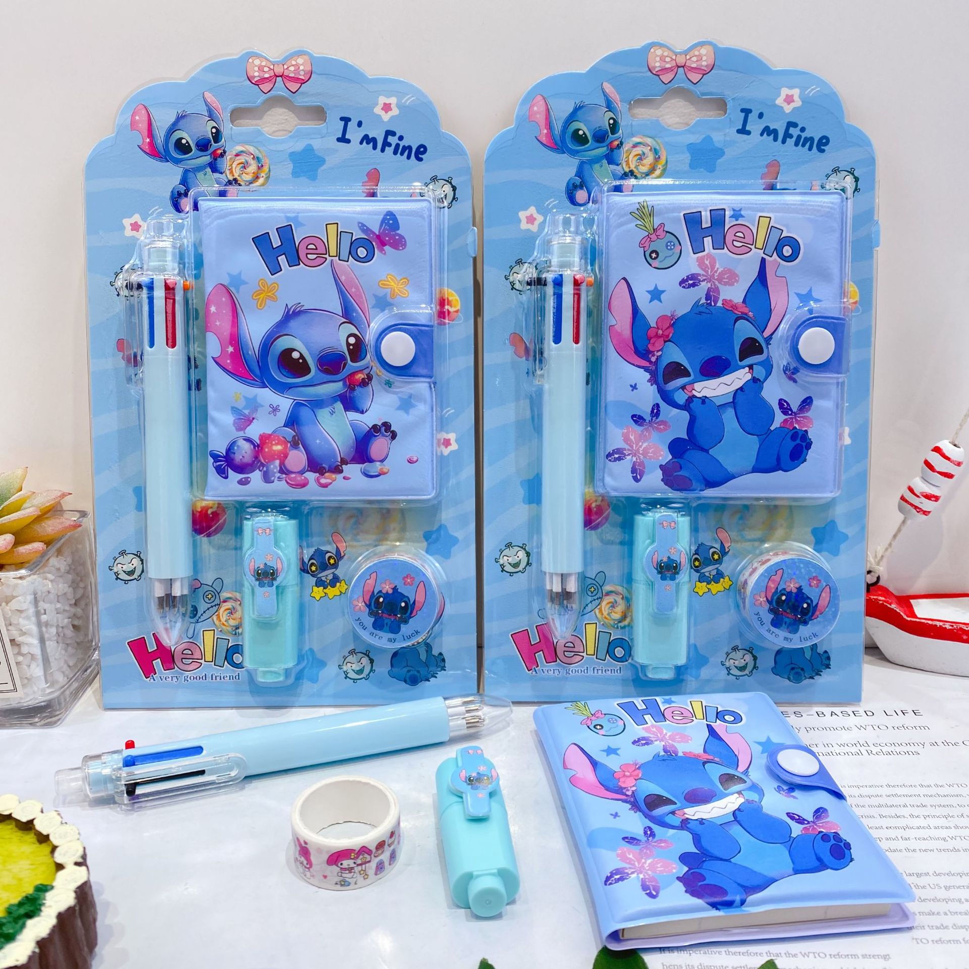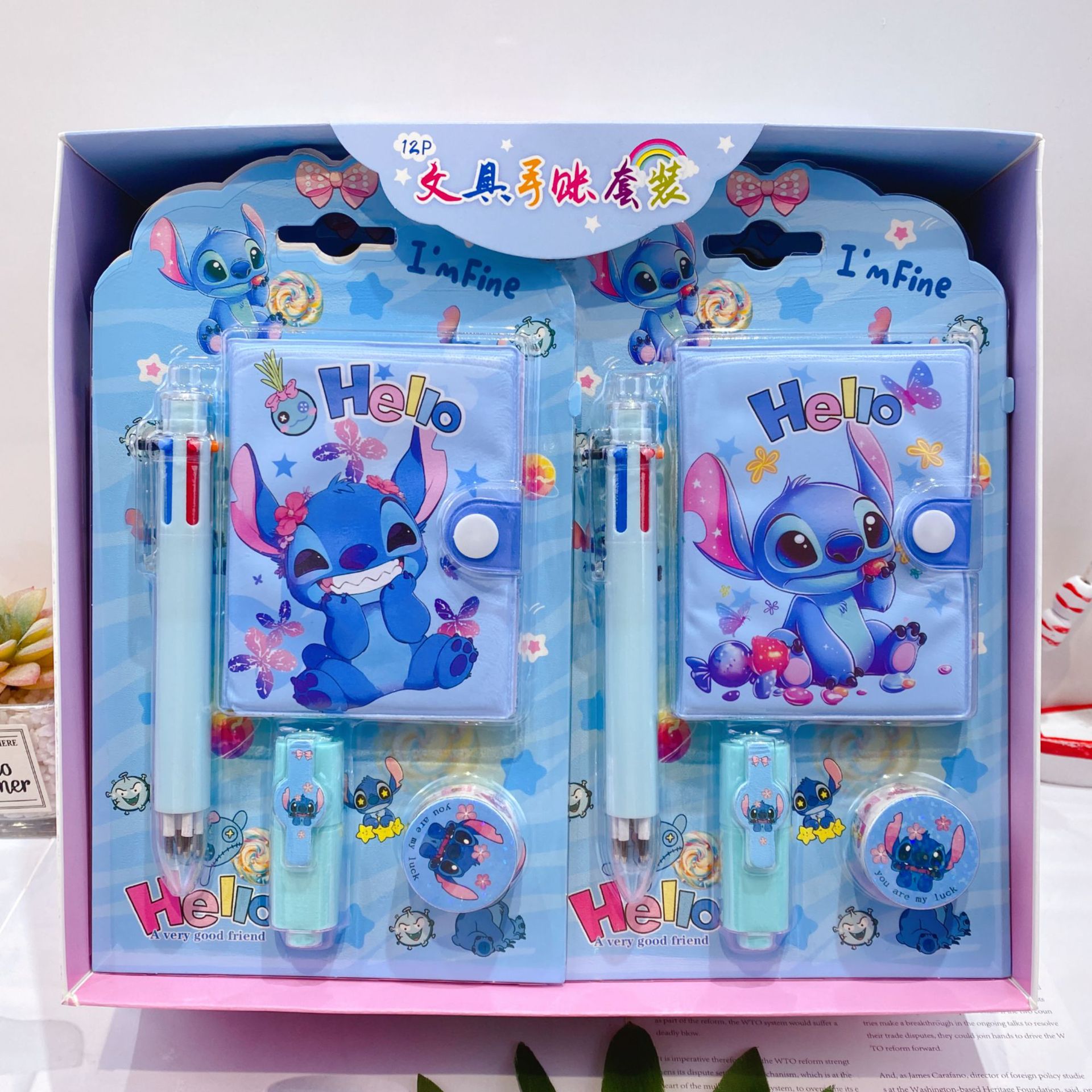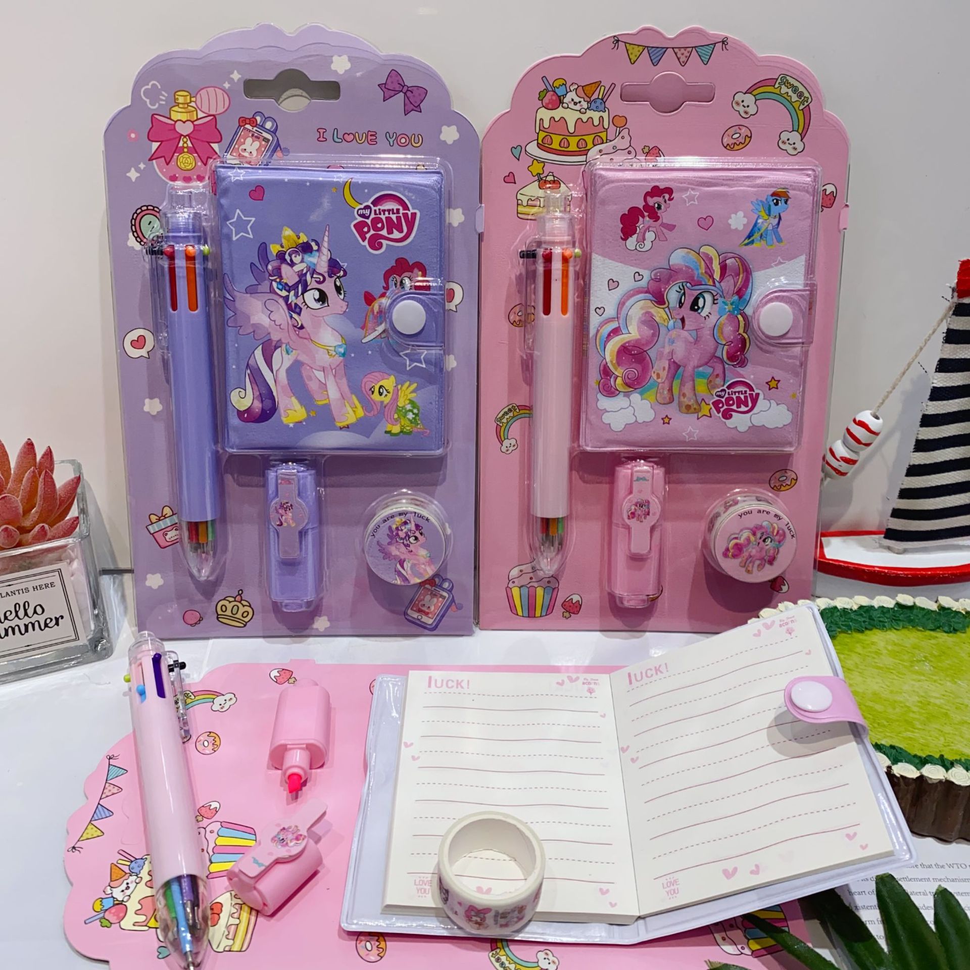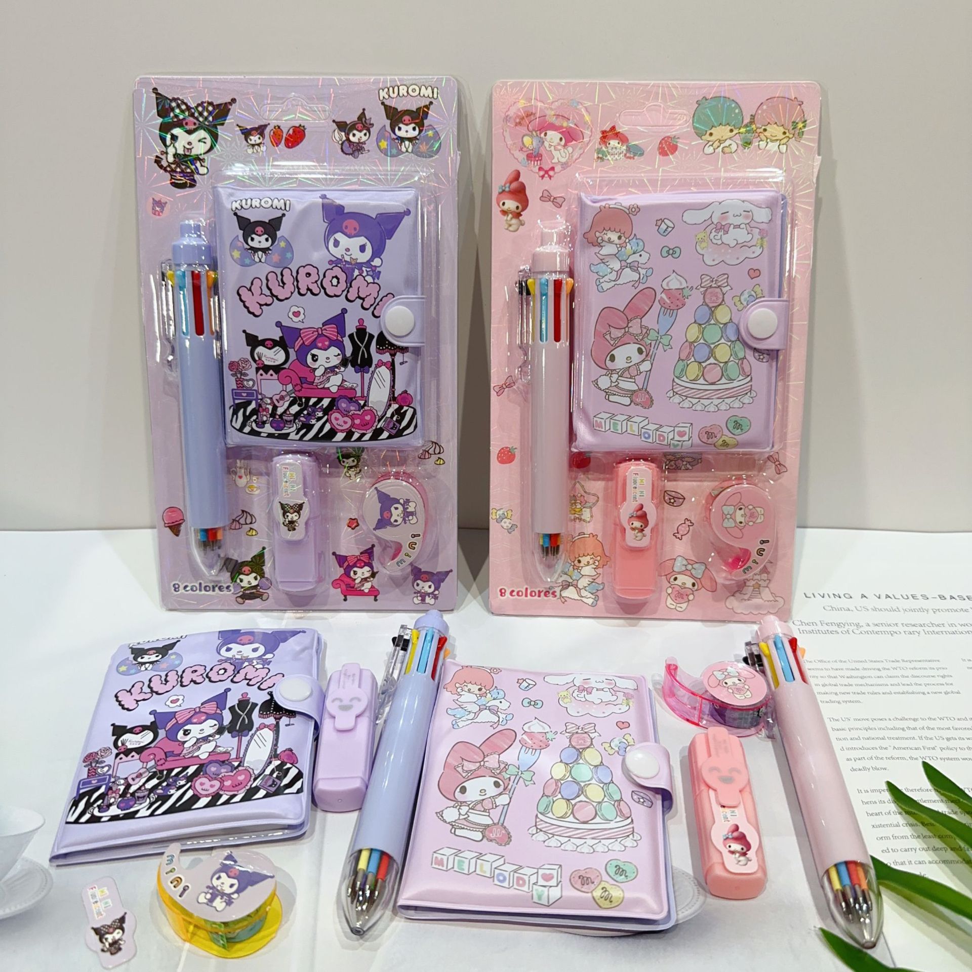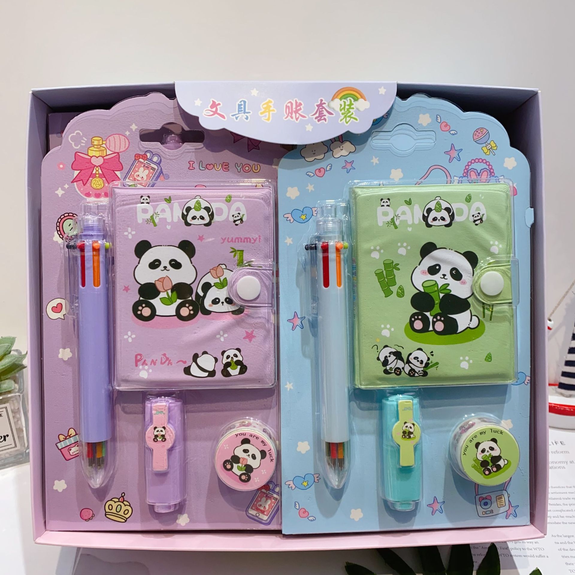 三丽欧卡通文具套装可爱学生组合文具笔记本多色笔荧光笔礼品套装