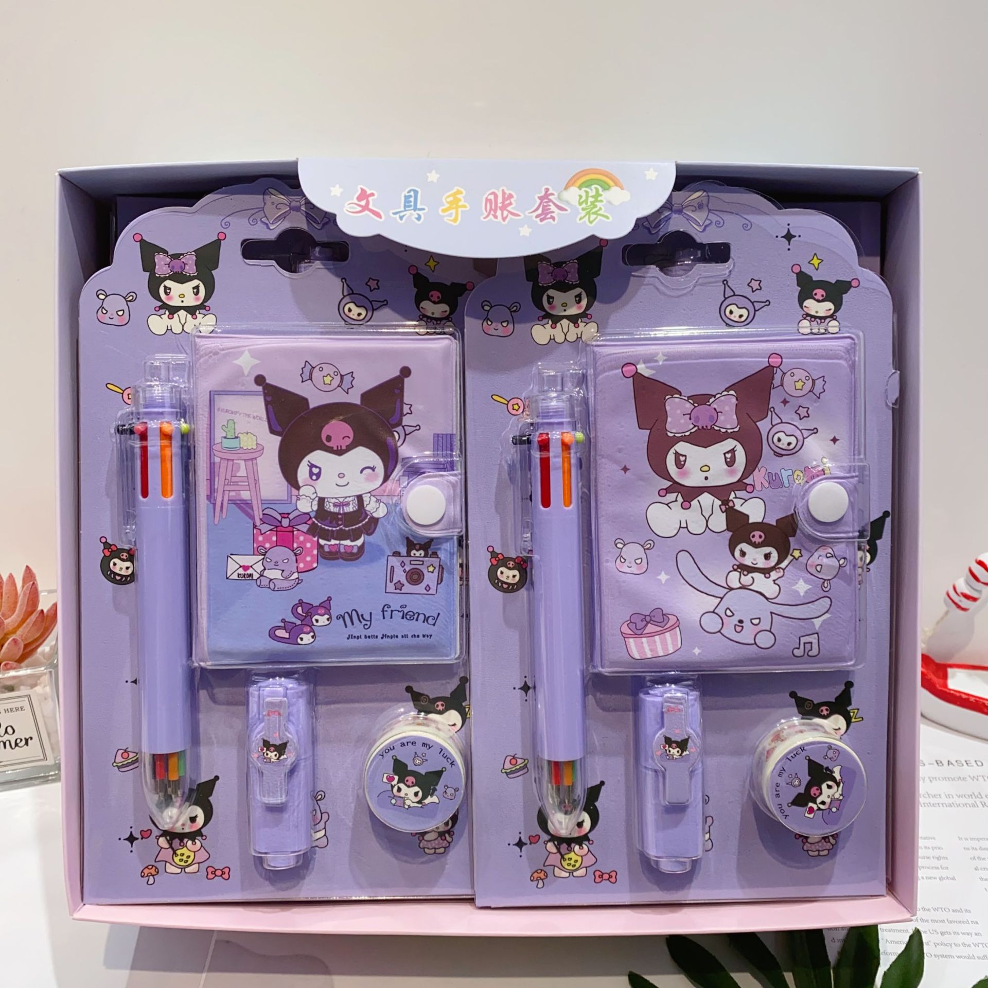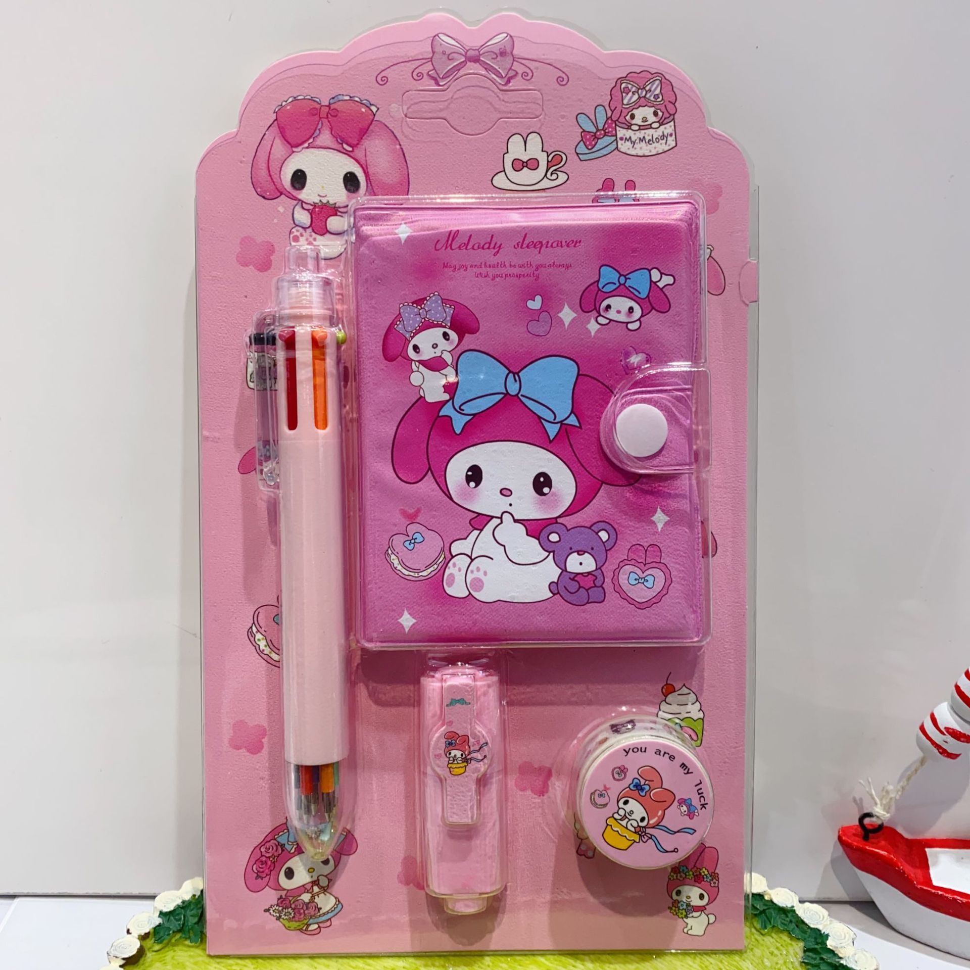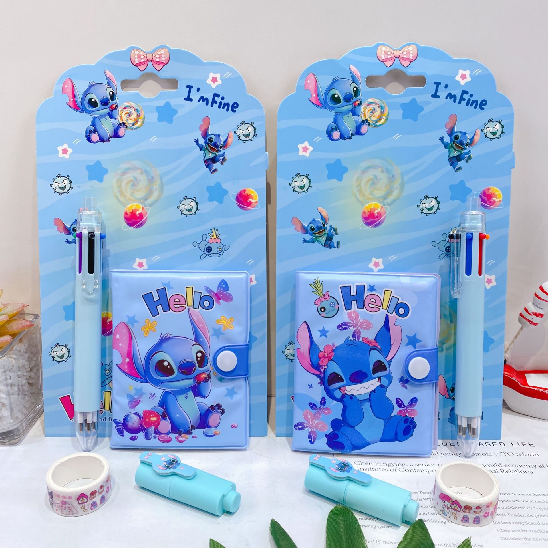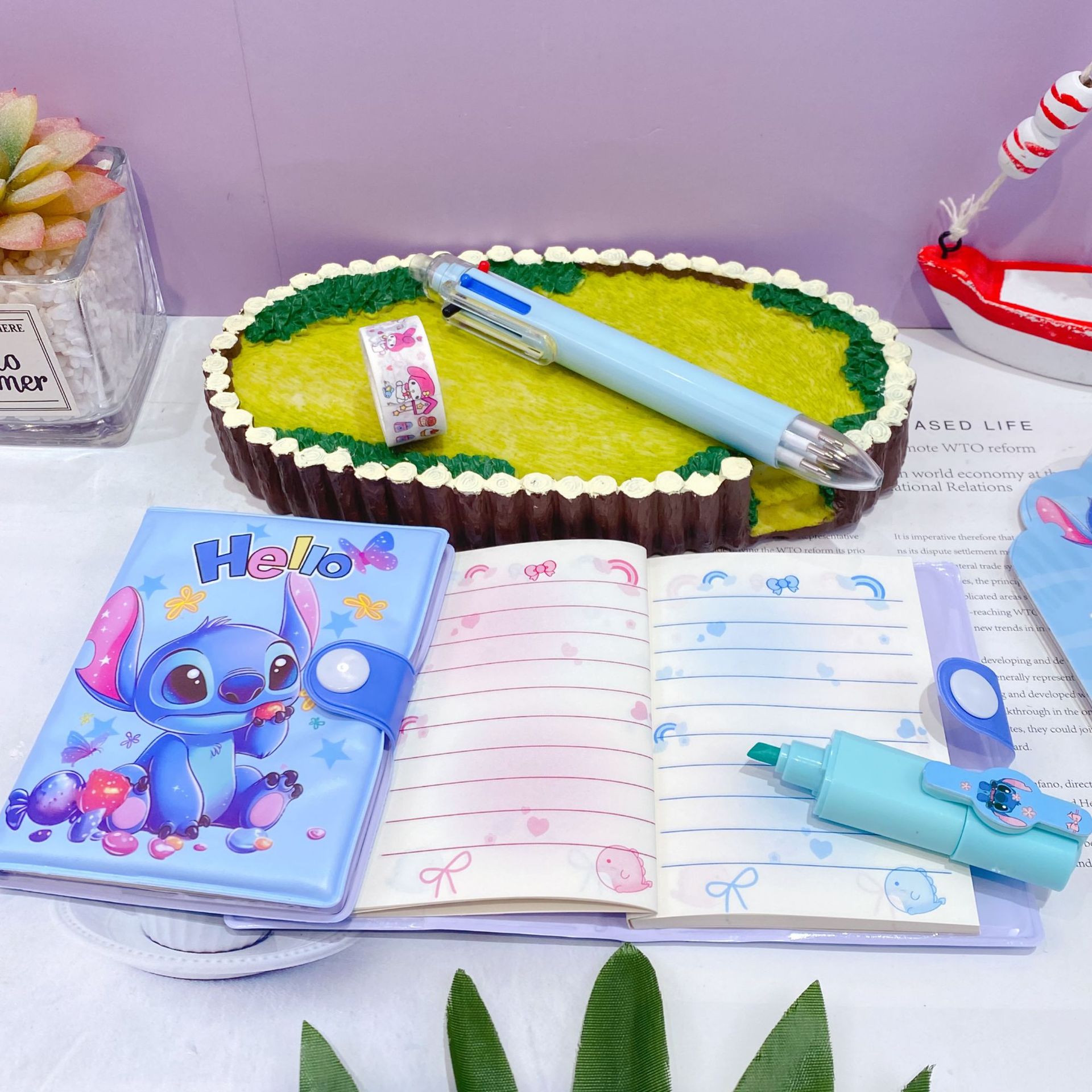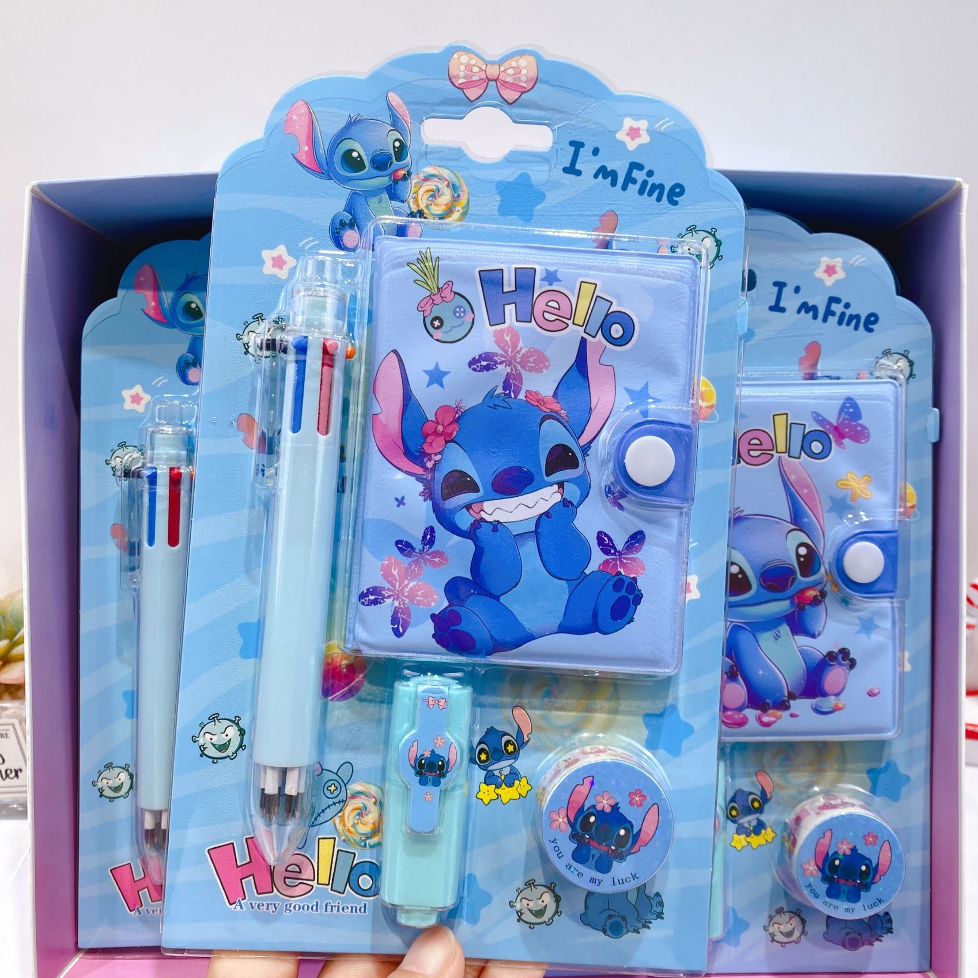 三丽欧卡通文具套装可爱学生组合文具笔记本多色笔荧光笔礼品套装