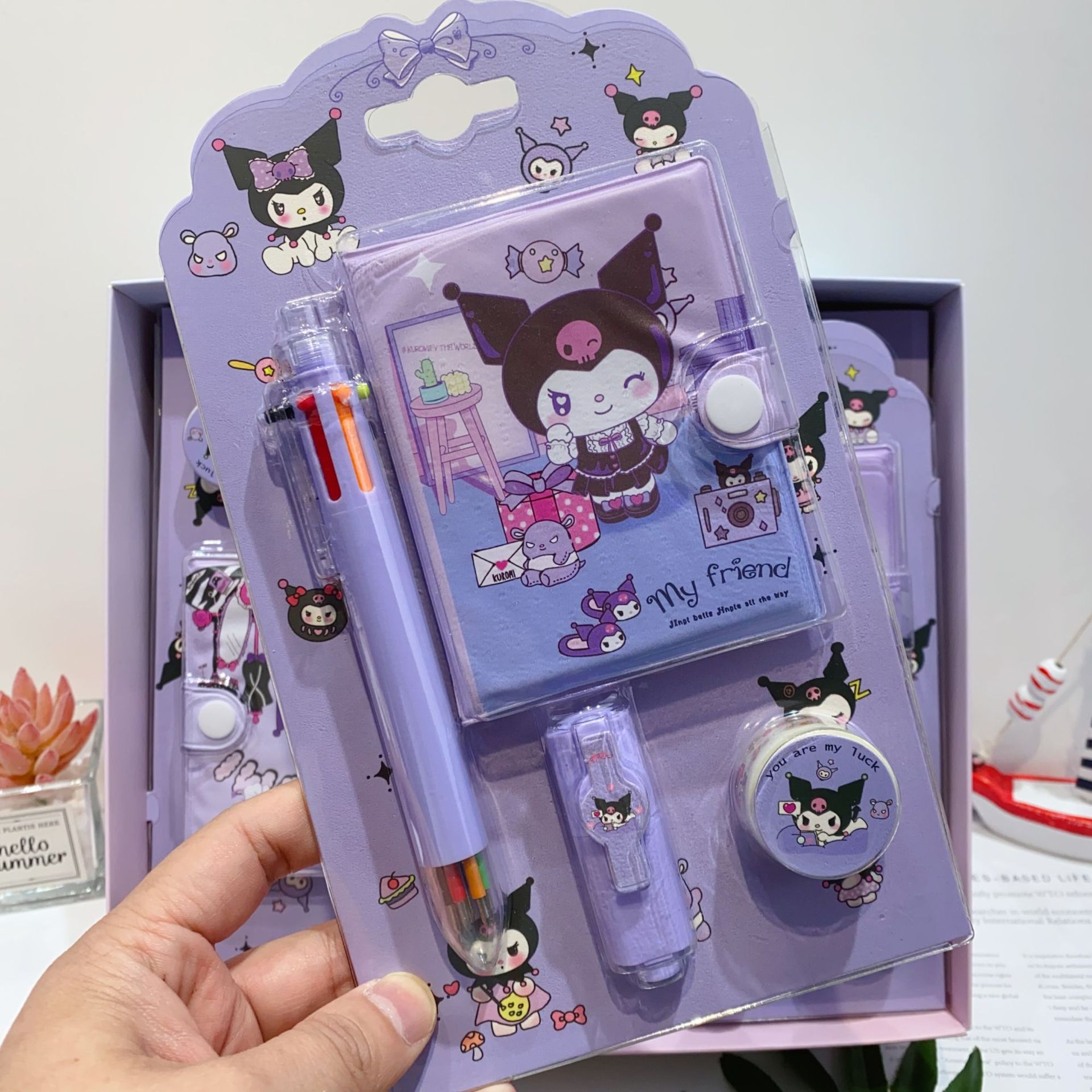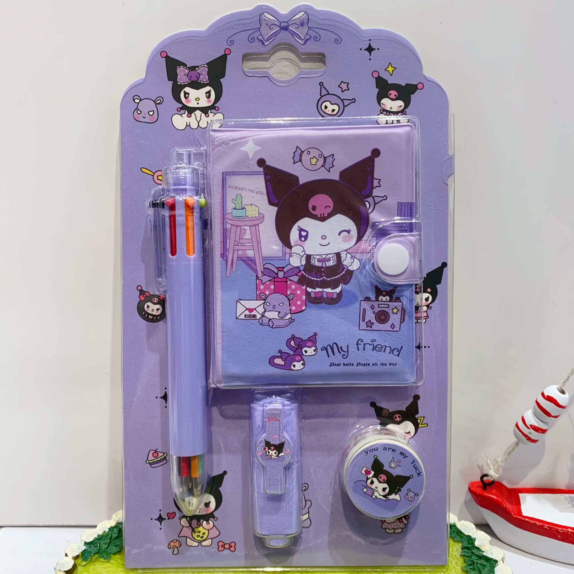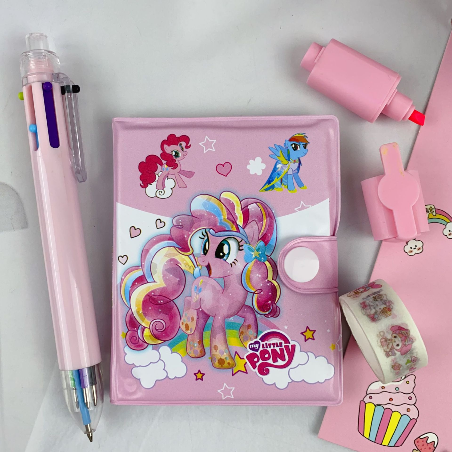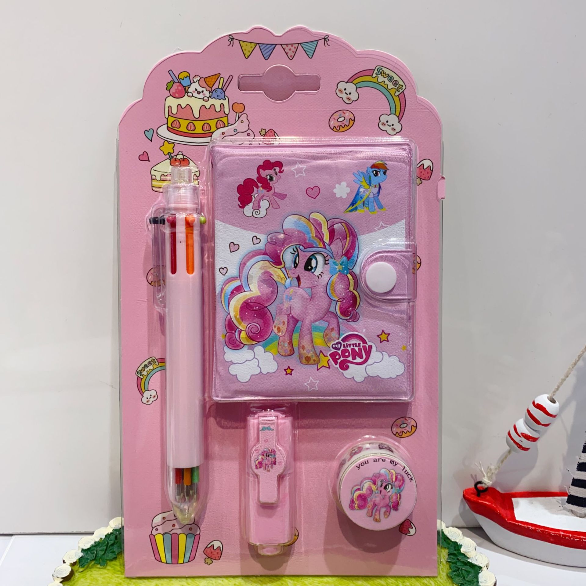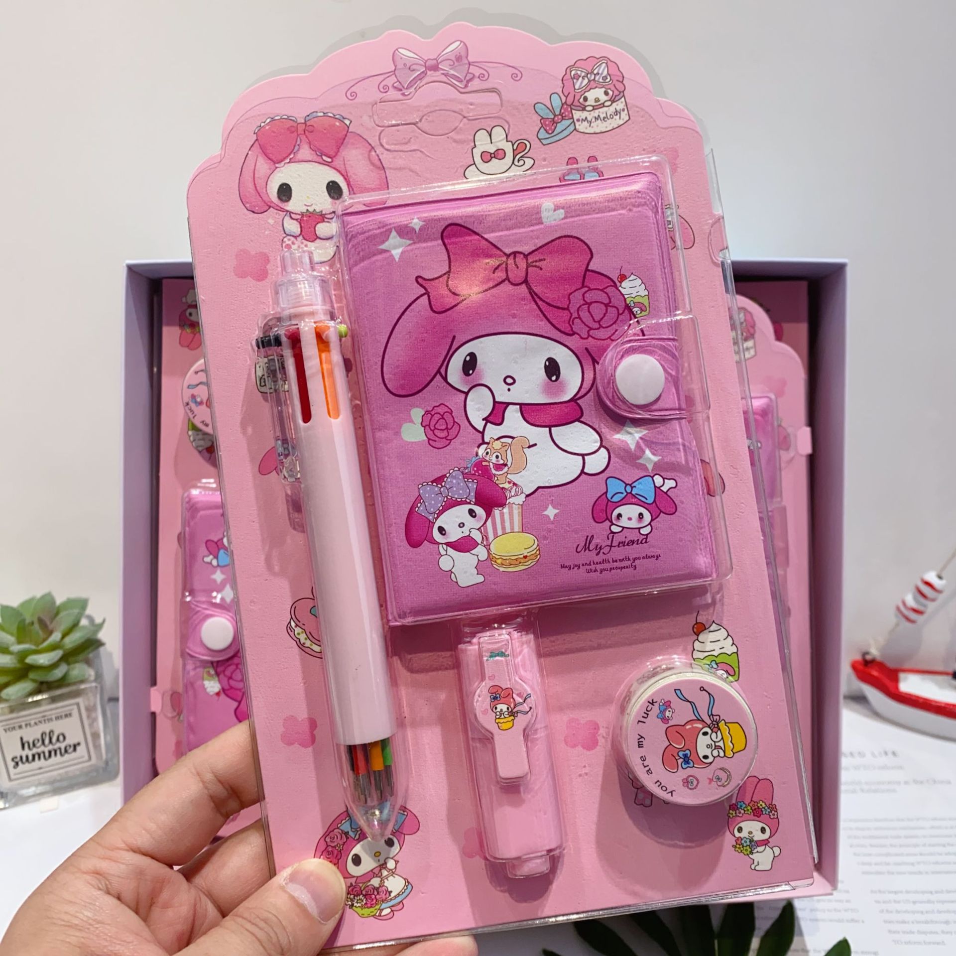 三丽欧卡通文具套装可爱学生组合文具笔记本多色笔荧光笔礼品套装