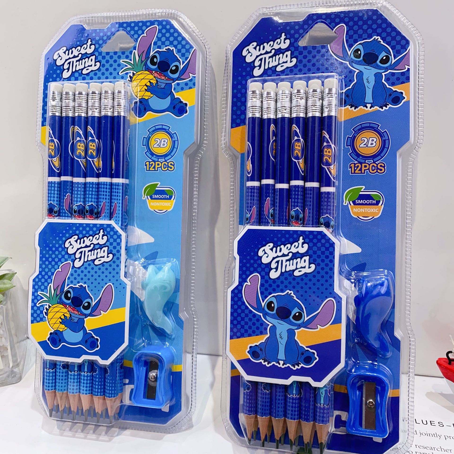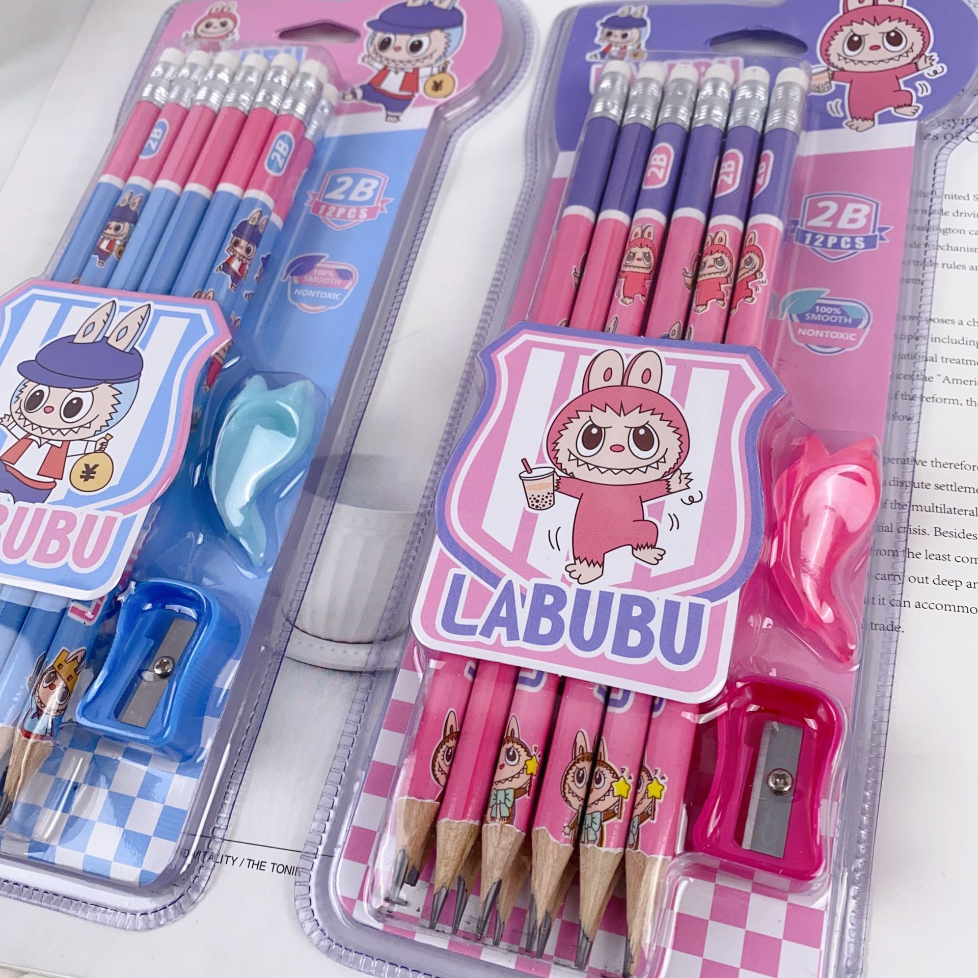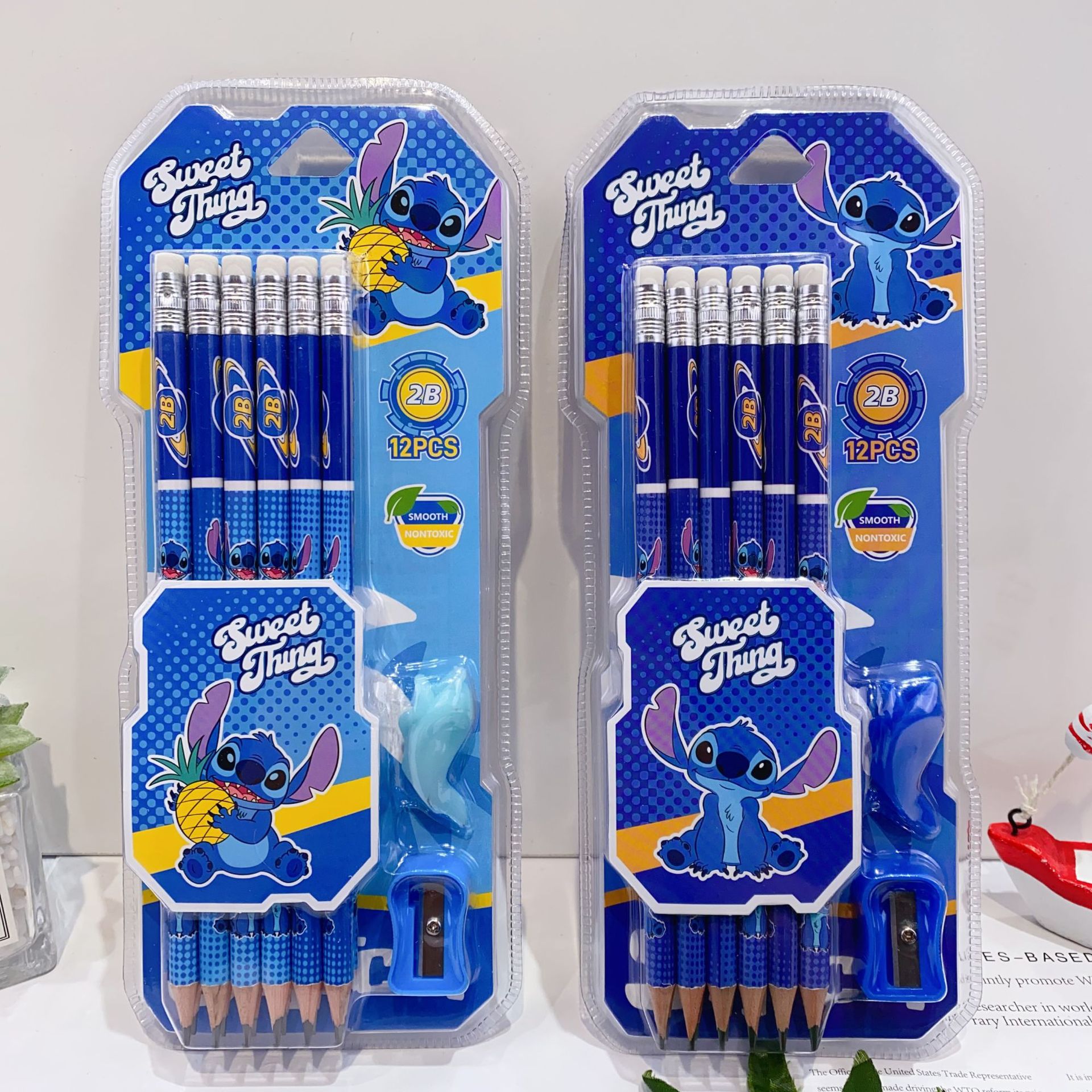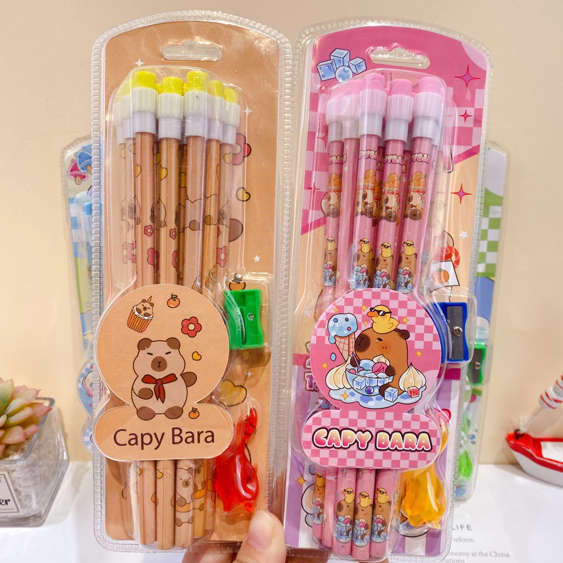 新款卡皮巴拉12支装木铅笔套装可爱卡通铅笔带橡皮擦卷笔刀握笔器