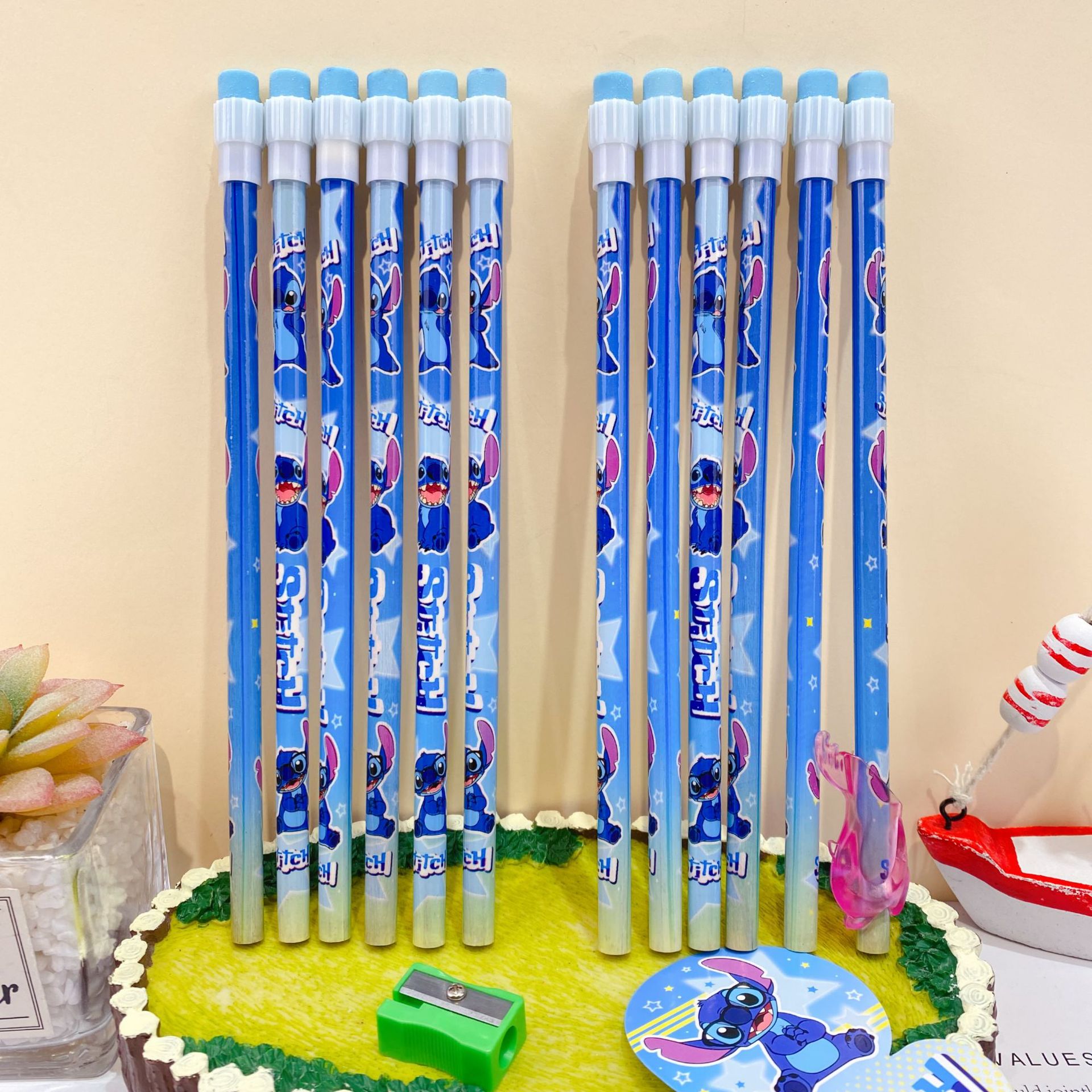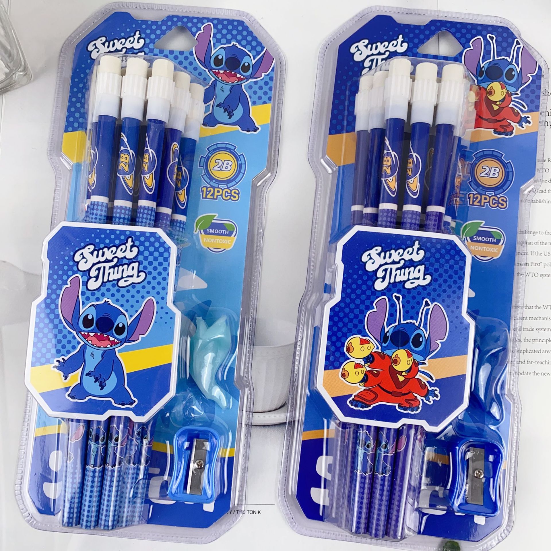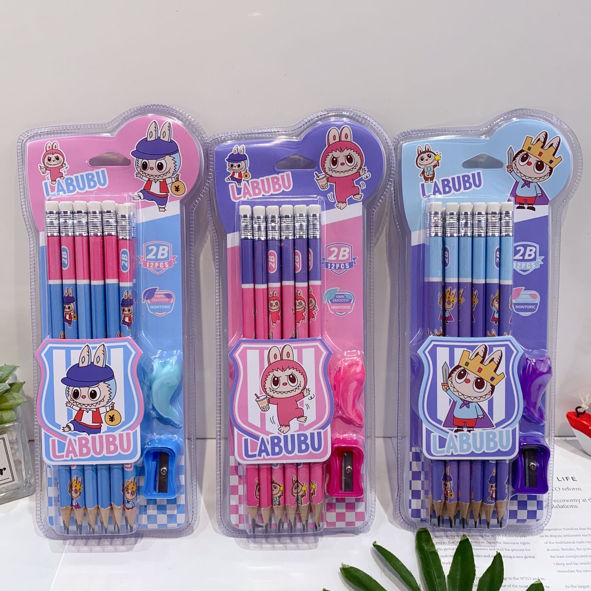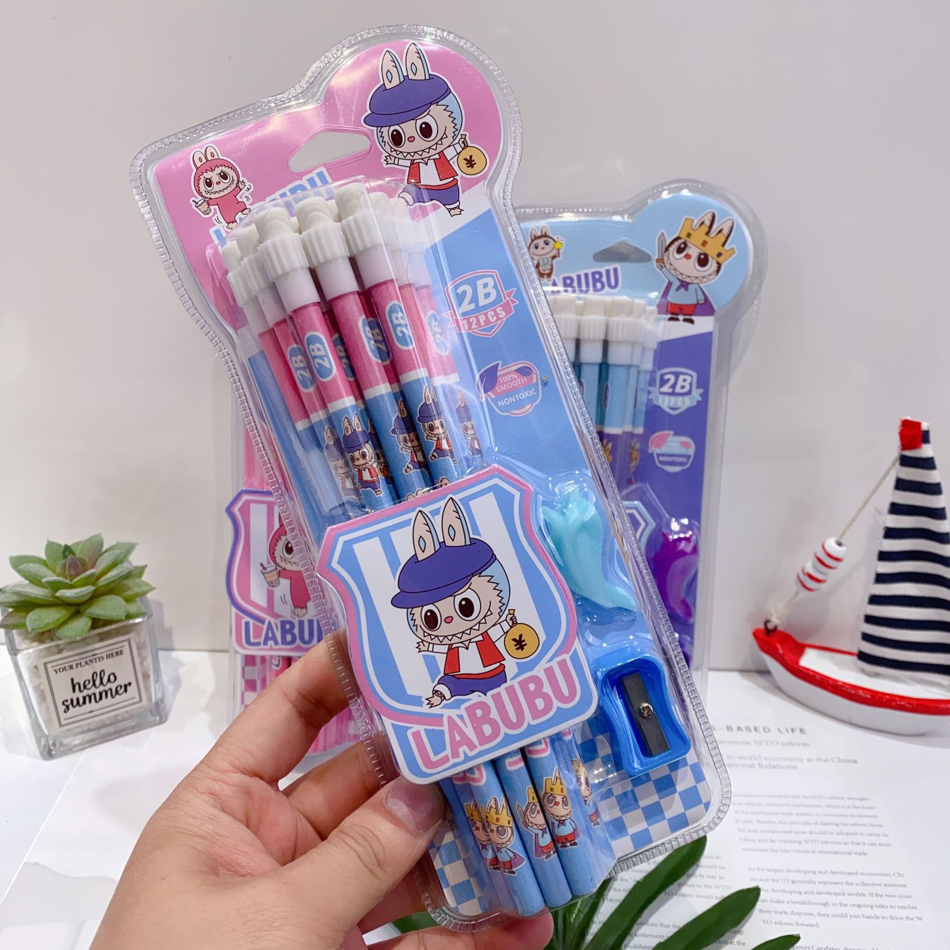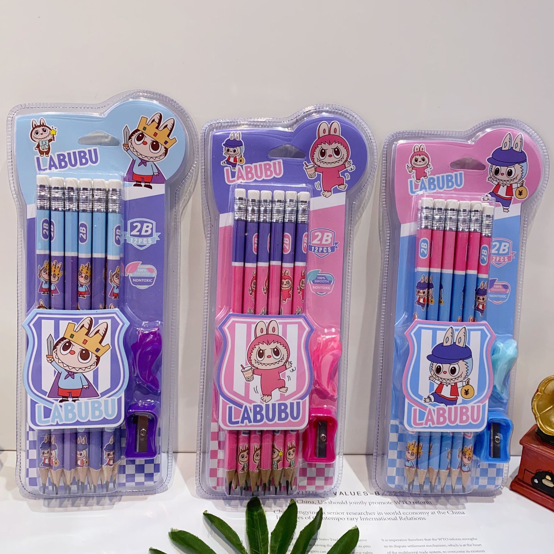 新款卡皮巴拉12支装木铅笔套装可爱卡通铅笔带橡皮擦卷笔刀握笔器