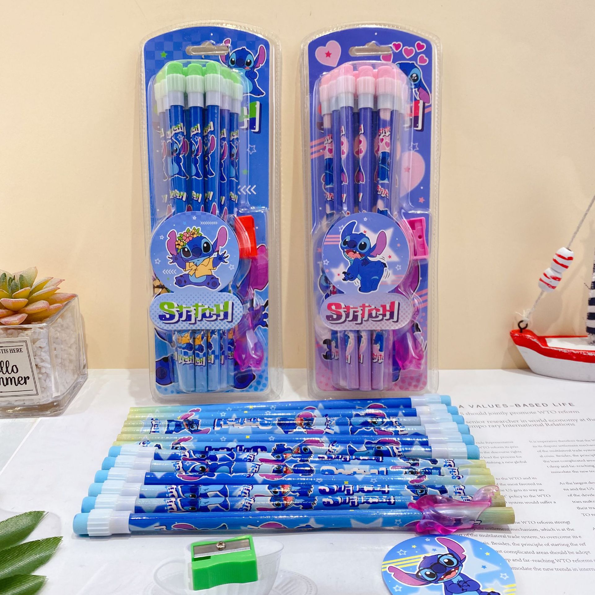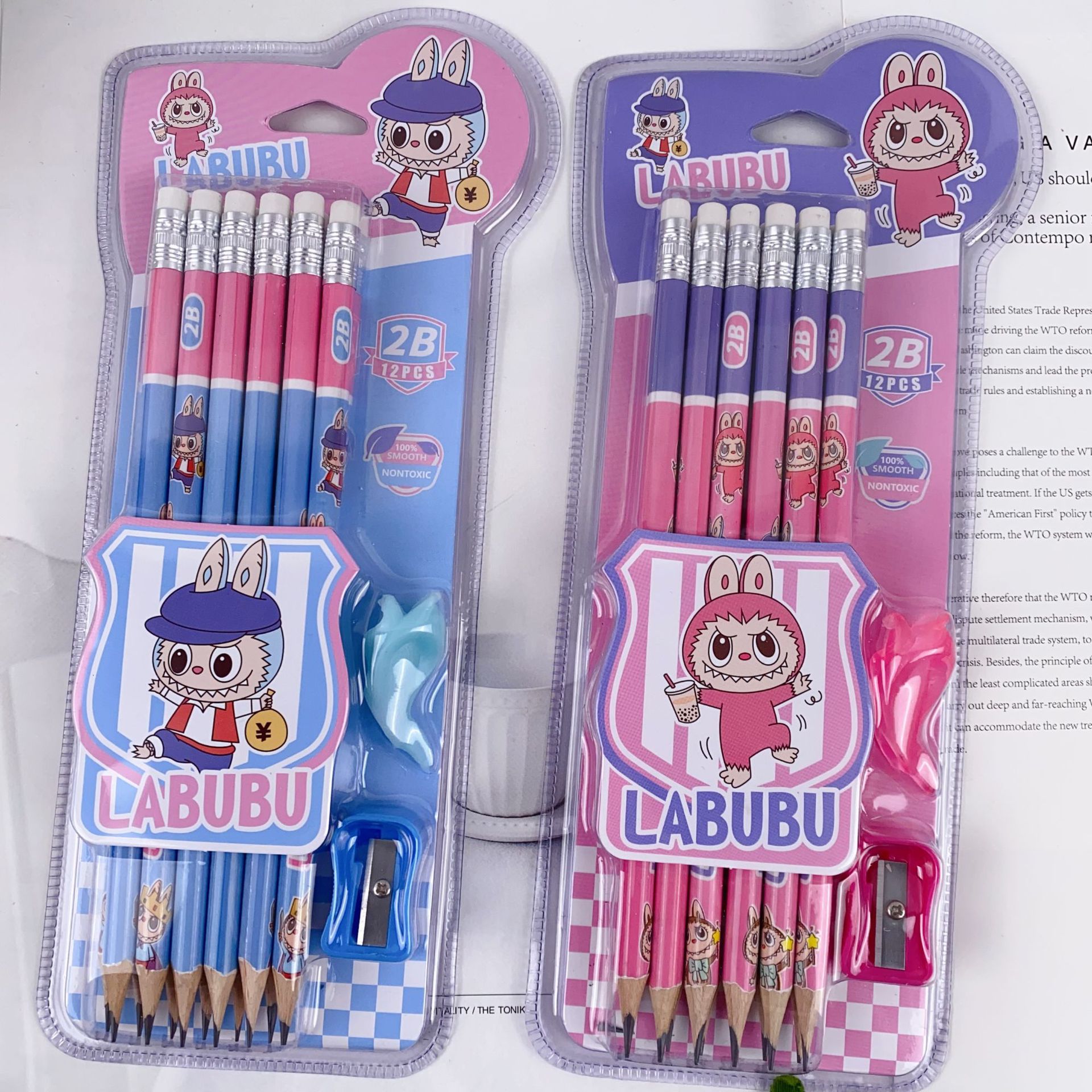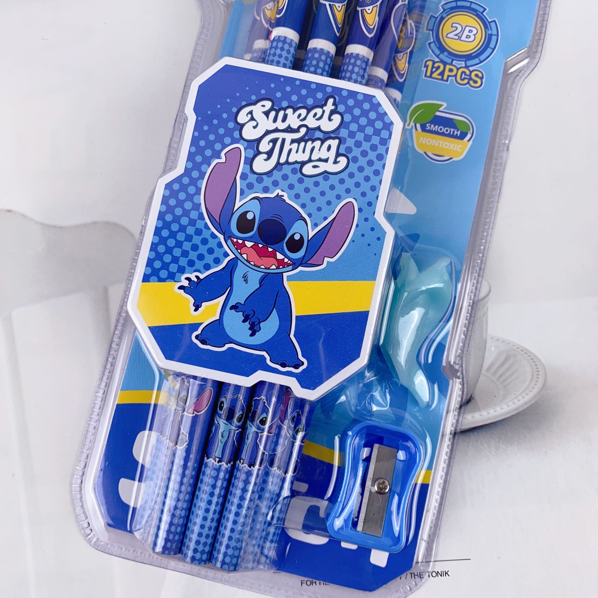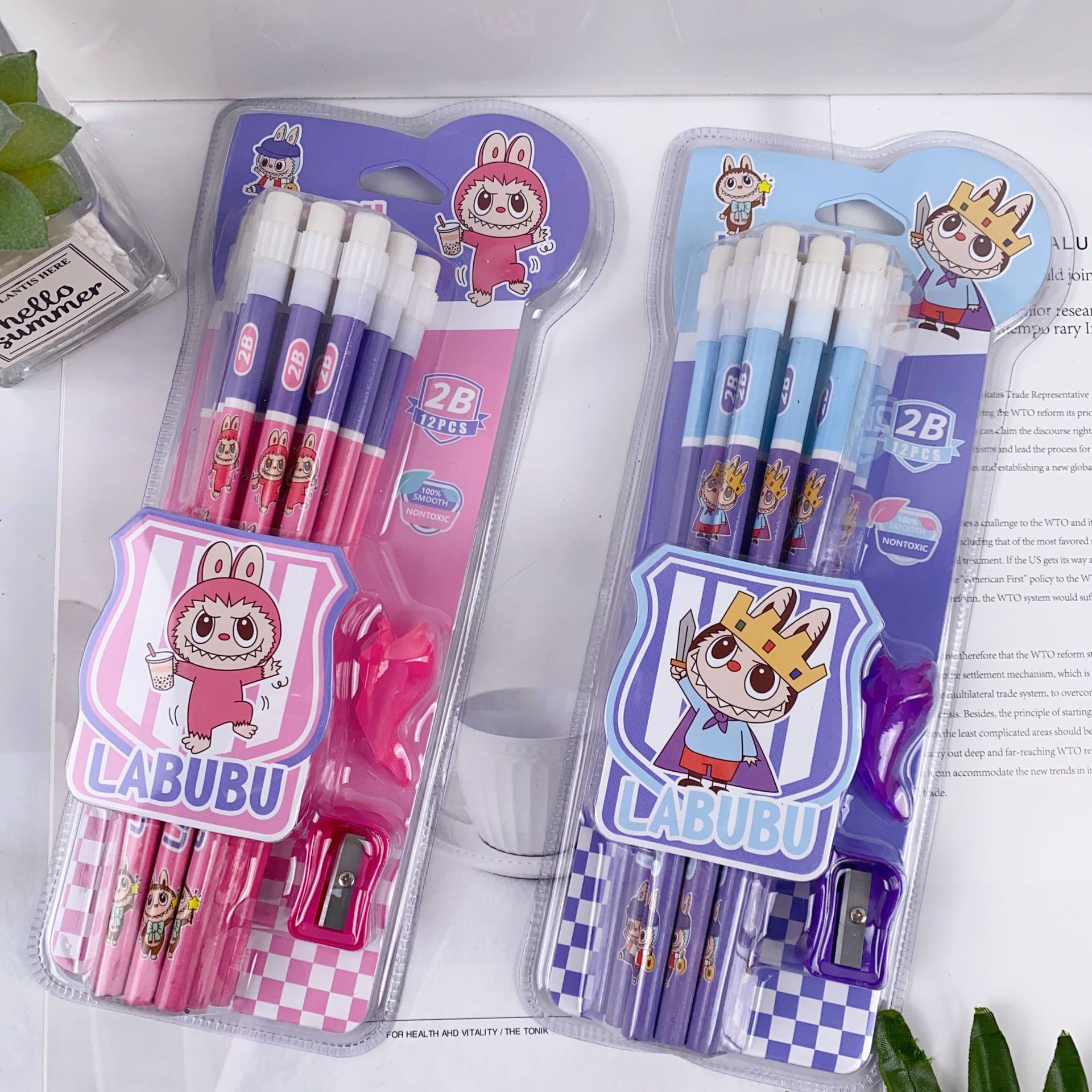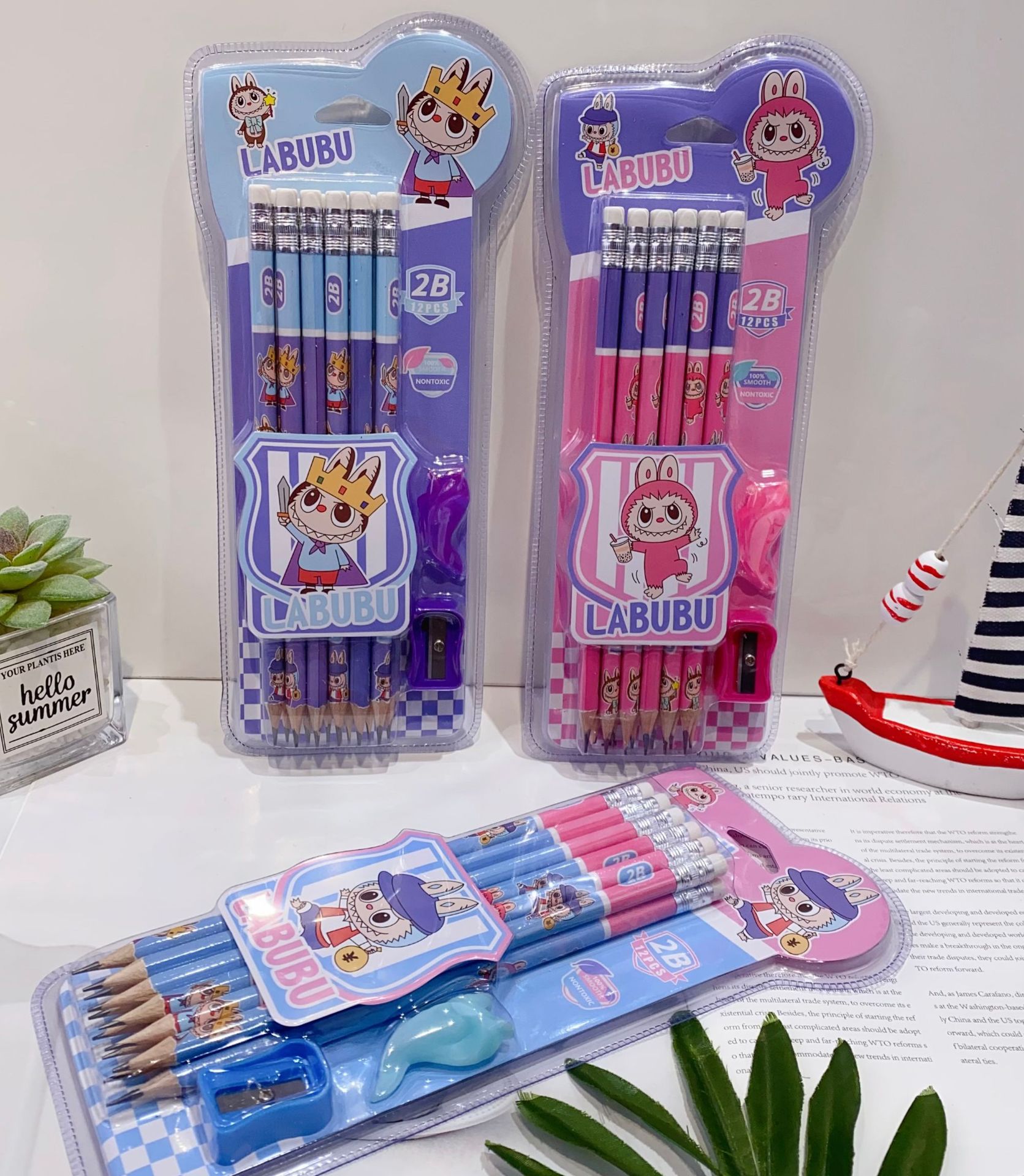 新款卡皮巴拉12支装木铅笔套装可爱卡通铅笔带橡皮擦卷笔刀握笔器