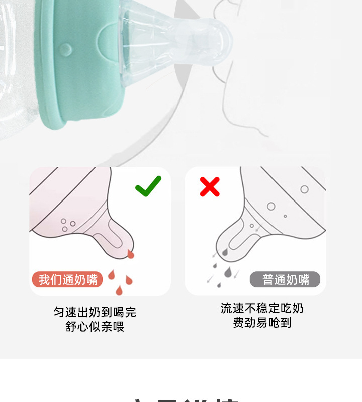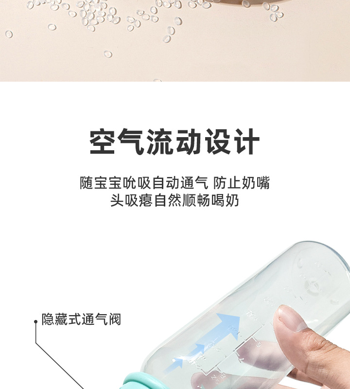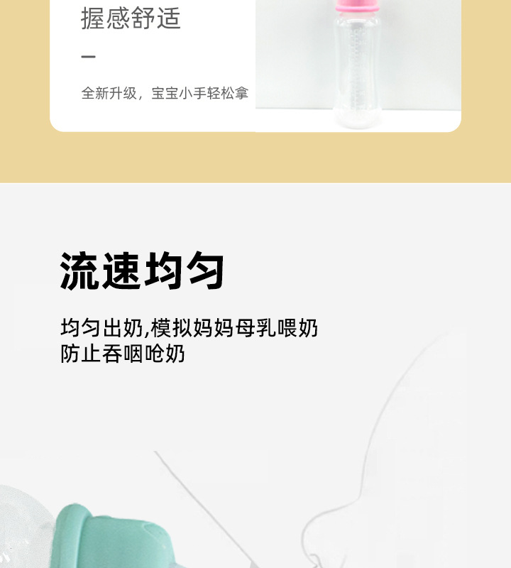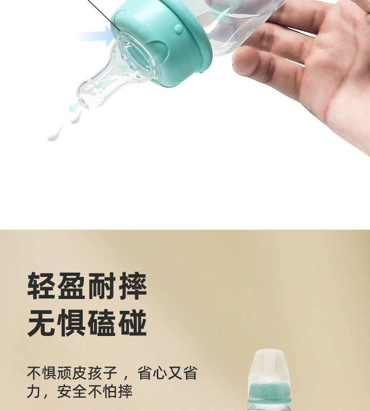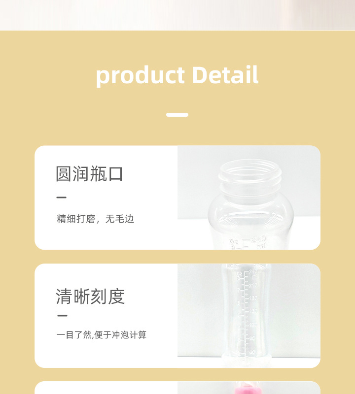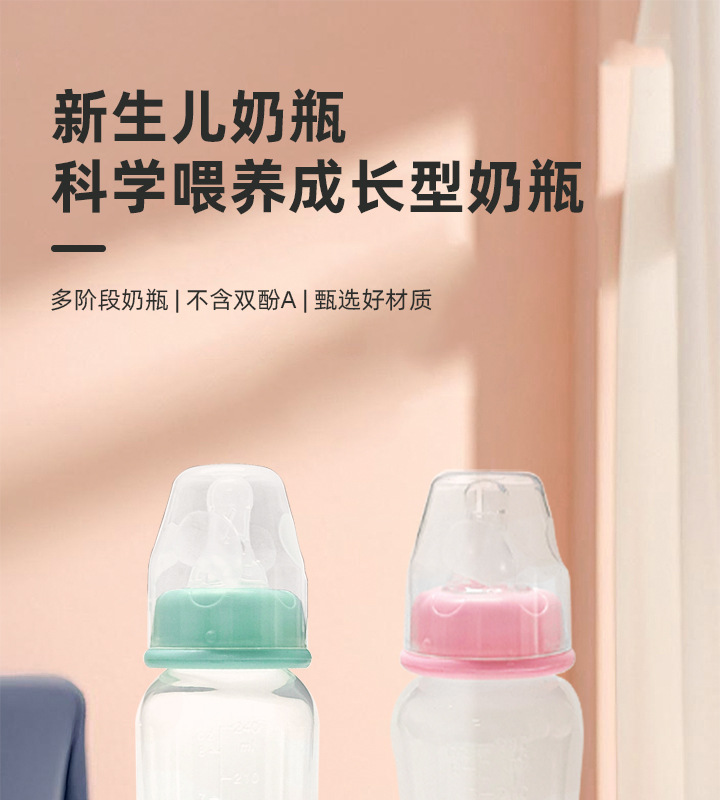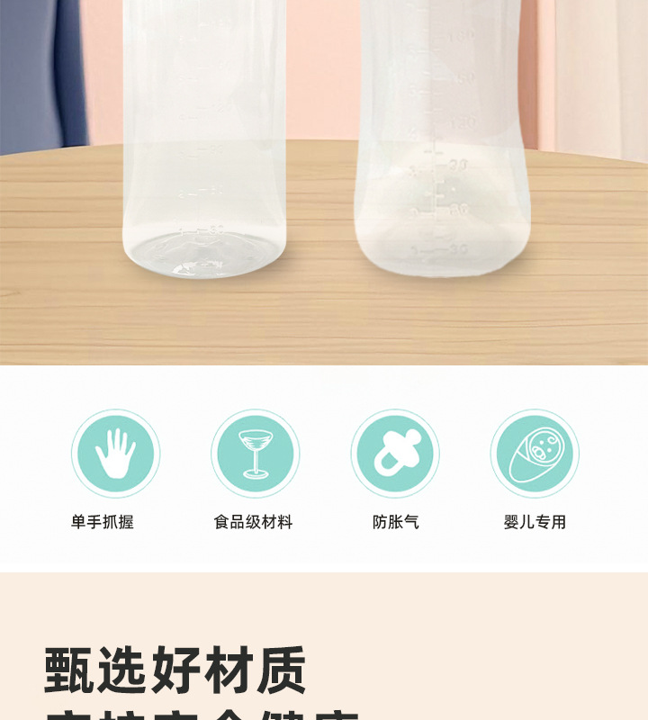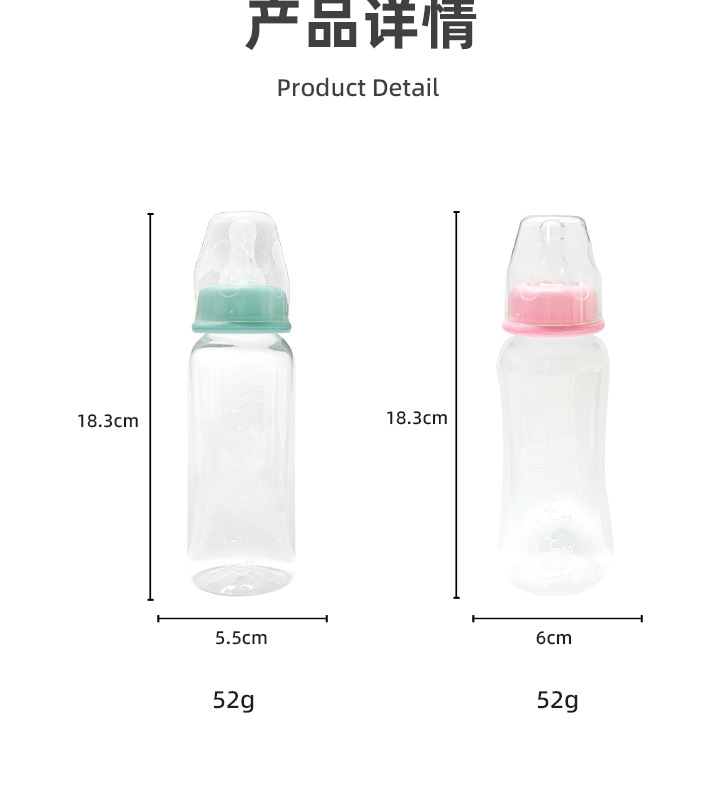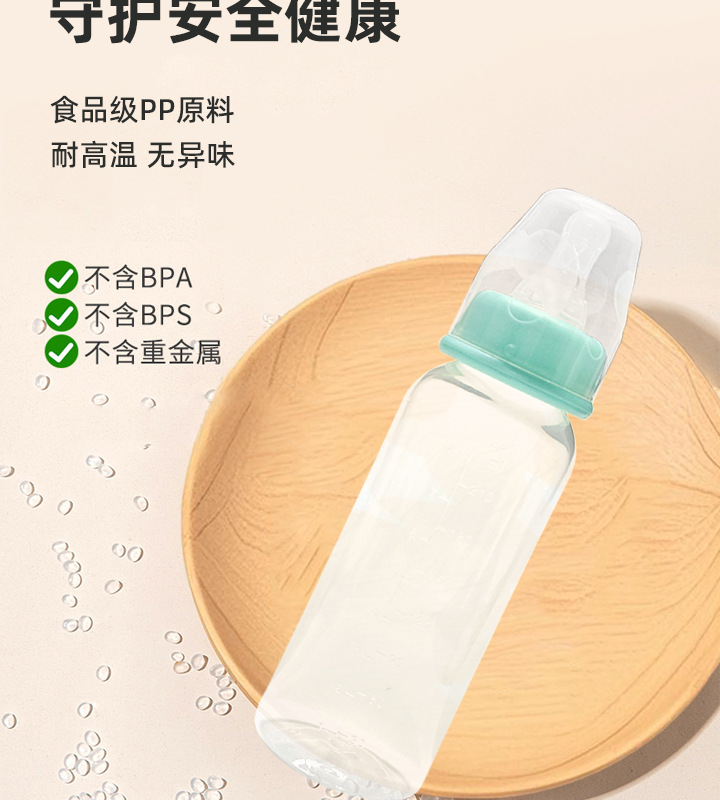 批发标口PP宝宝奶瓶 240ML无手柄无异味耐摔婴儿奶瓶适配吸奶器