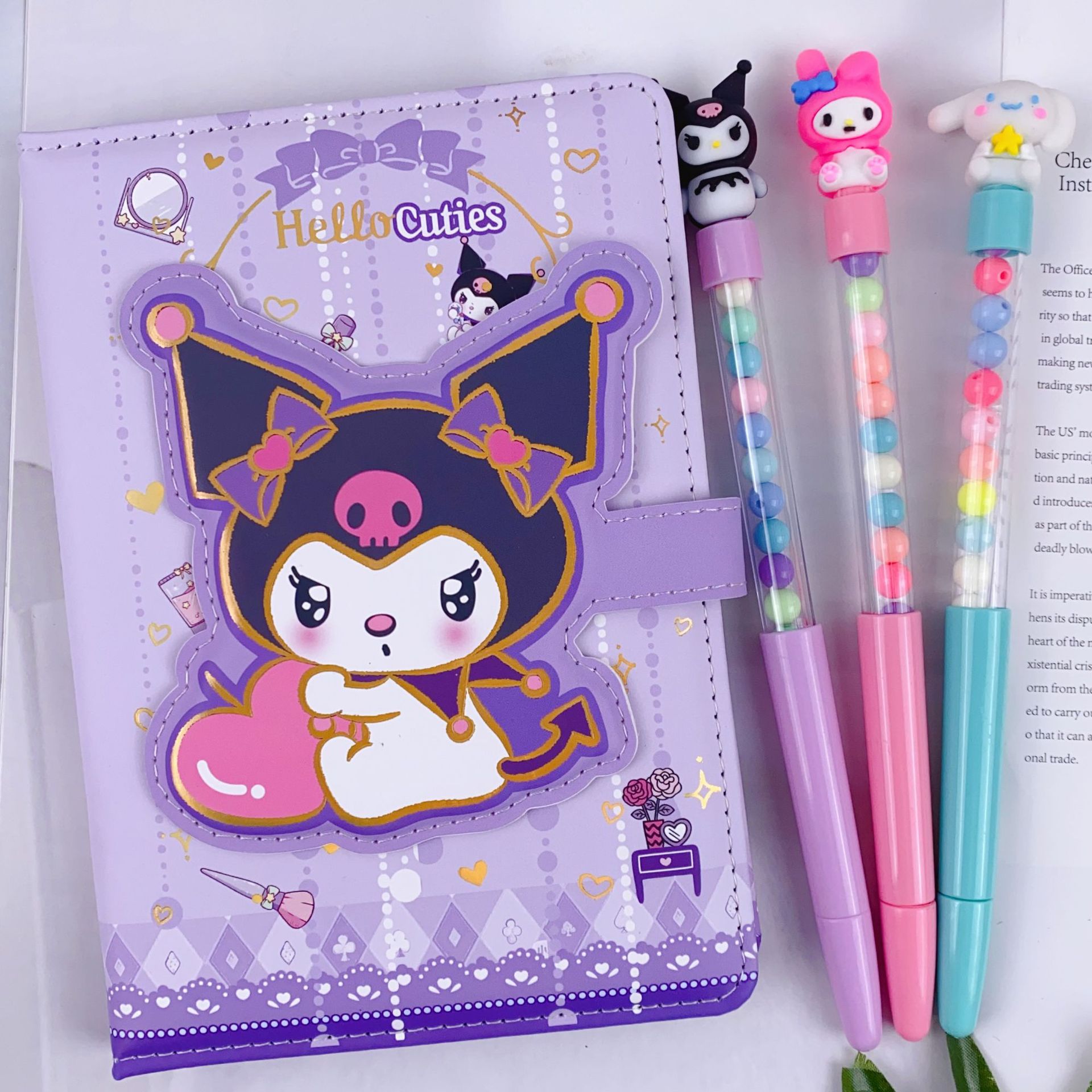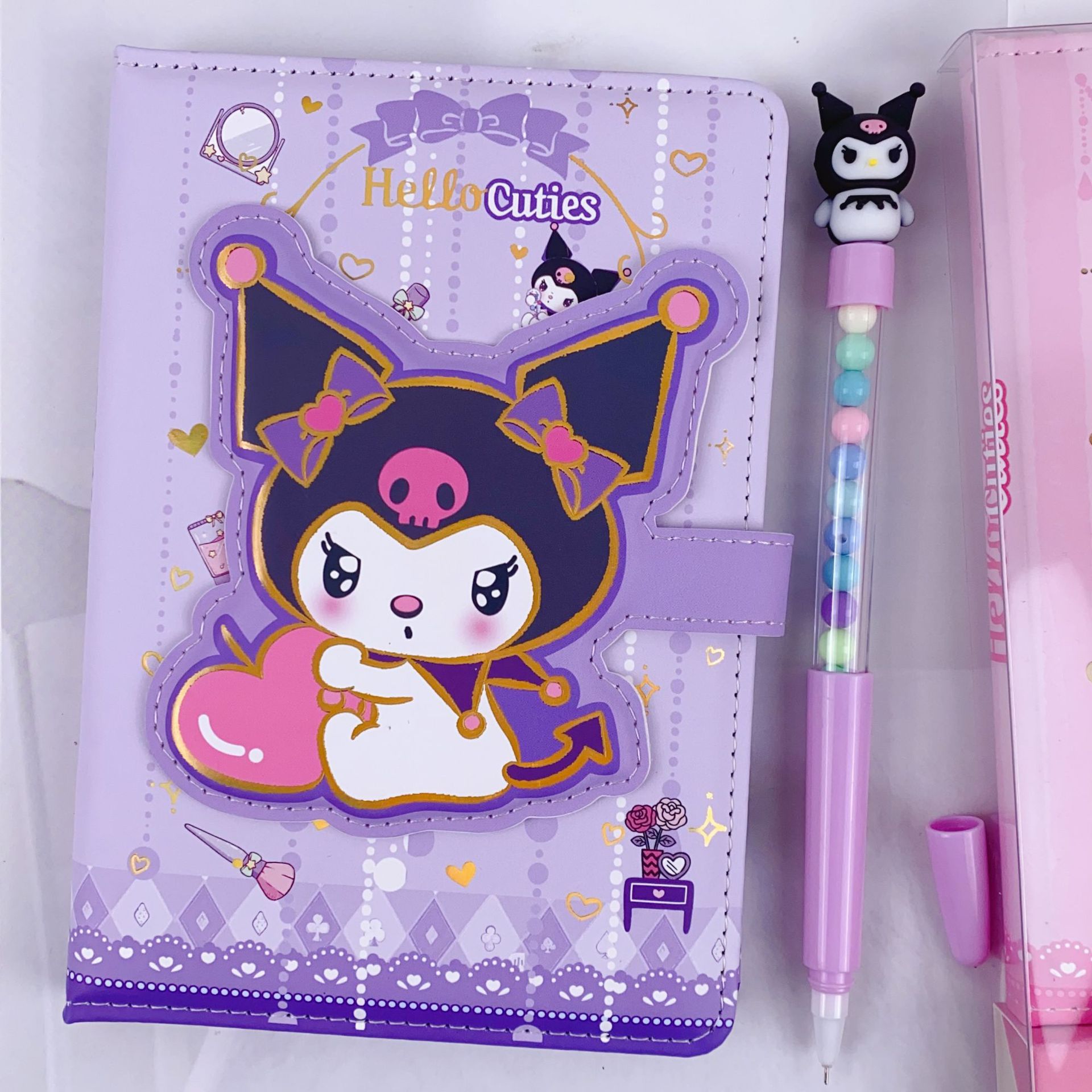 可爱三丽家族PU磁扣手账本套装学生笔记本带笔卡通库洛米记事本