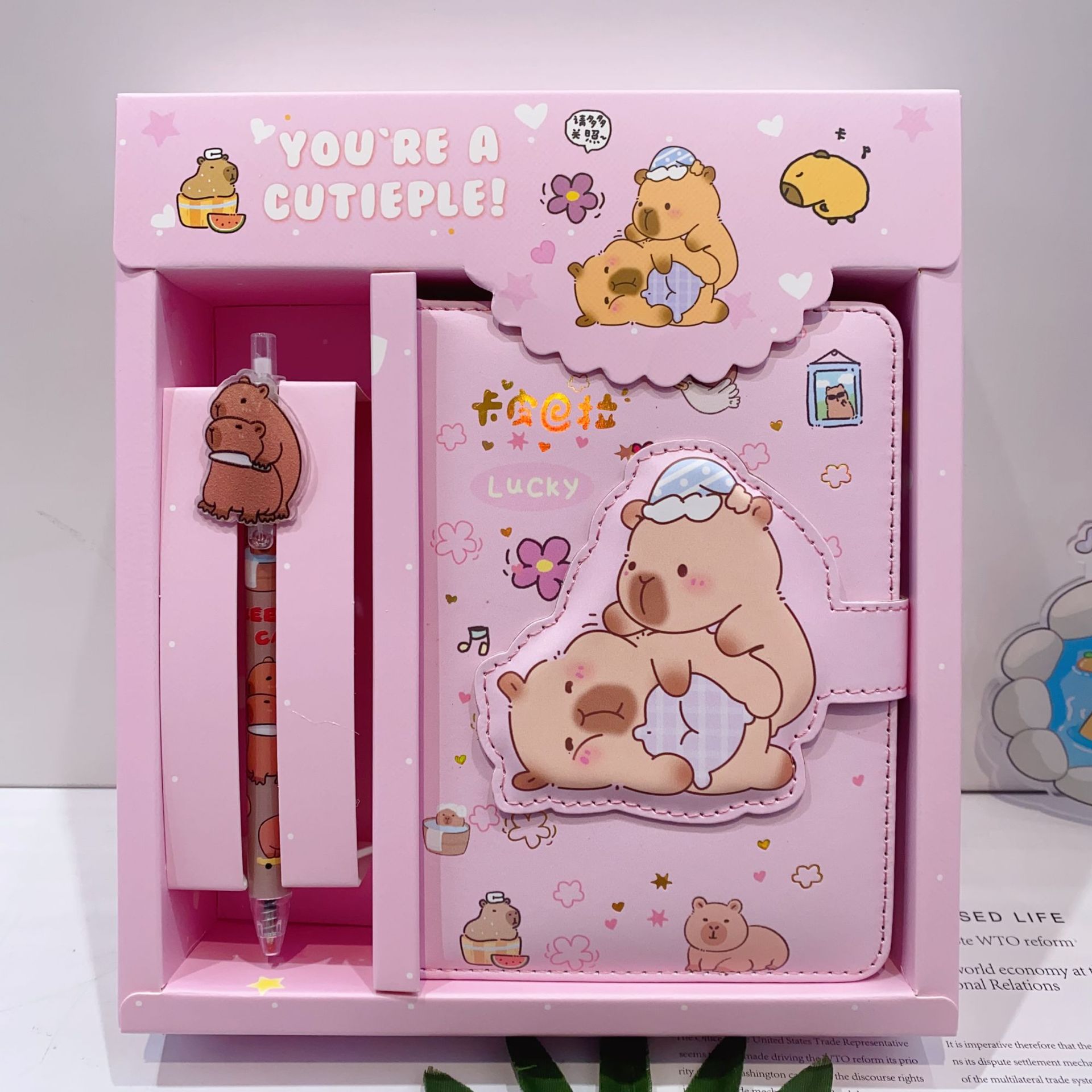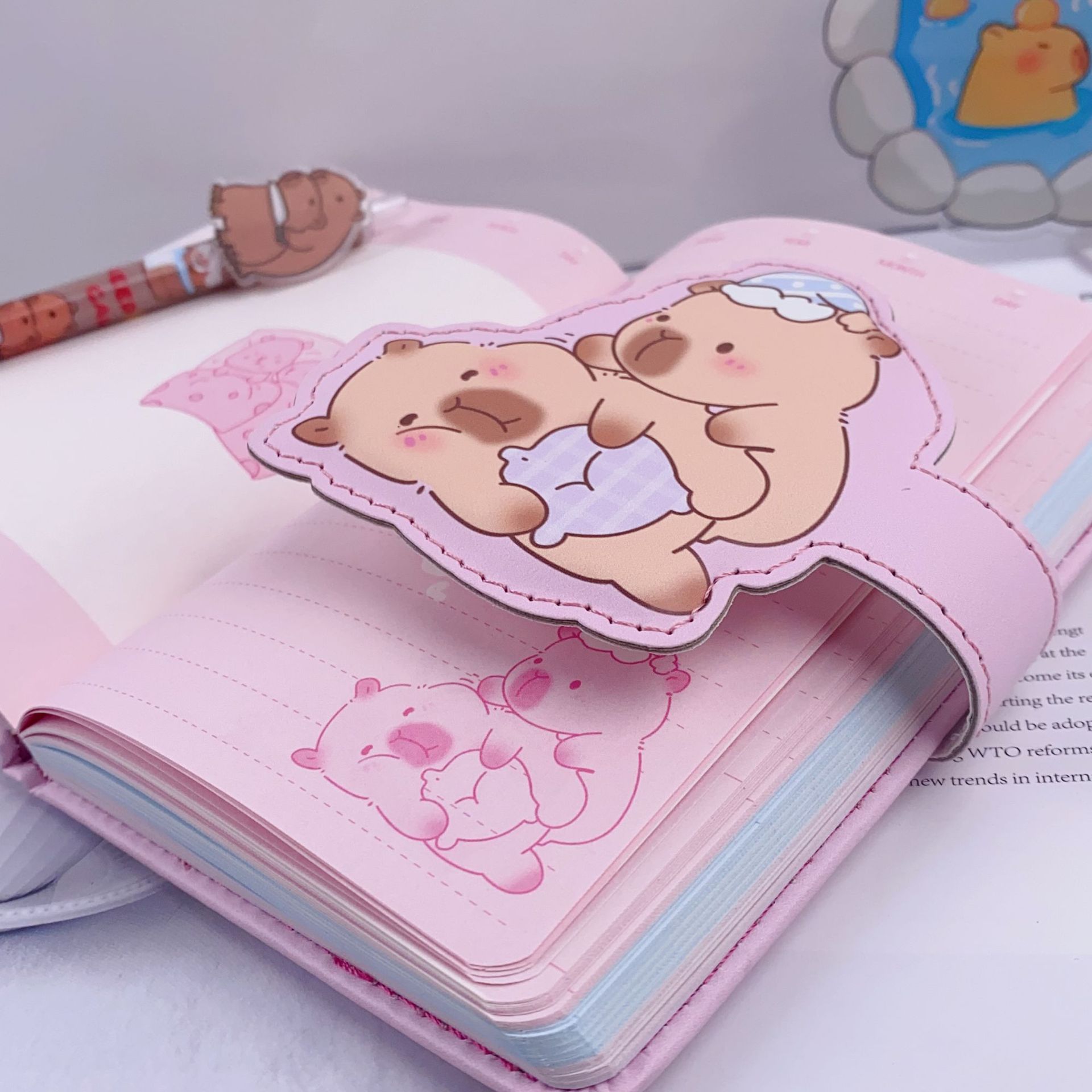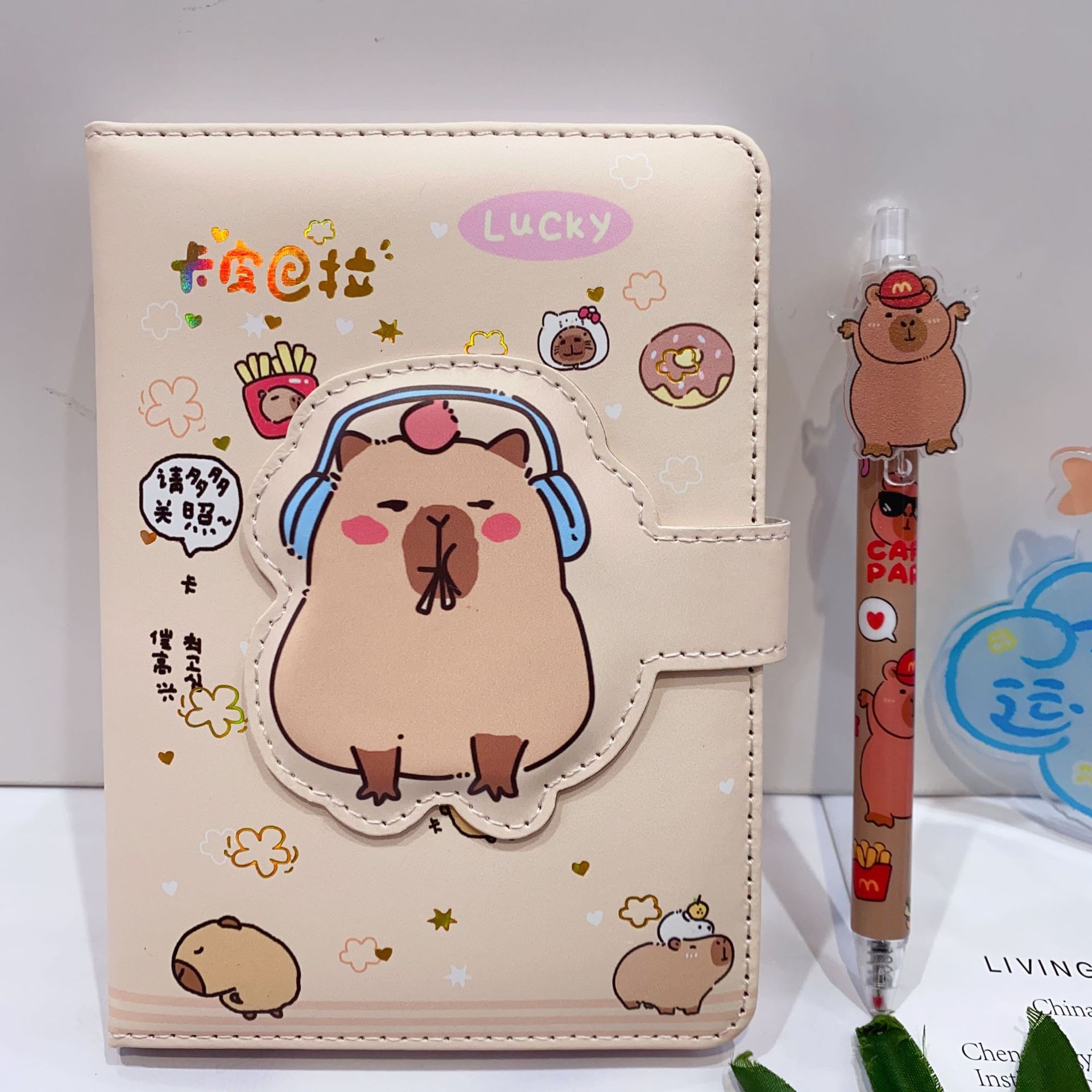 新款暴富卡皮巴拉手账本套装可爱少女心卡通文具pu磁扣记事本礼盒