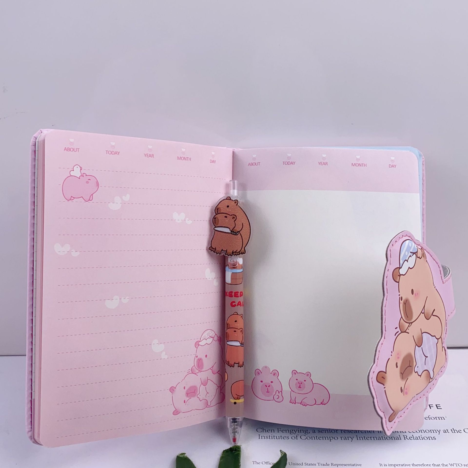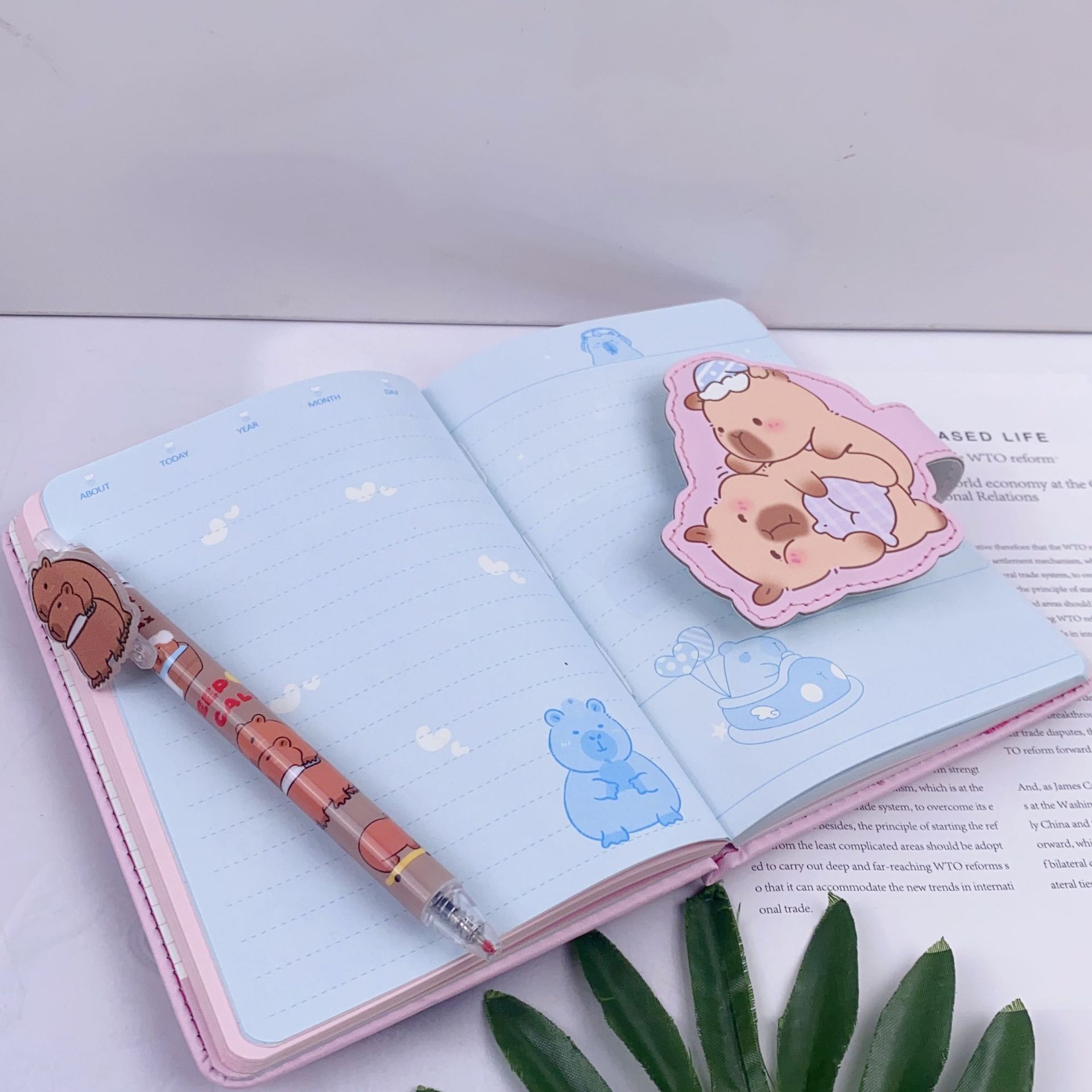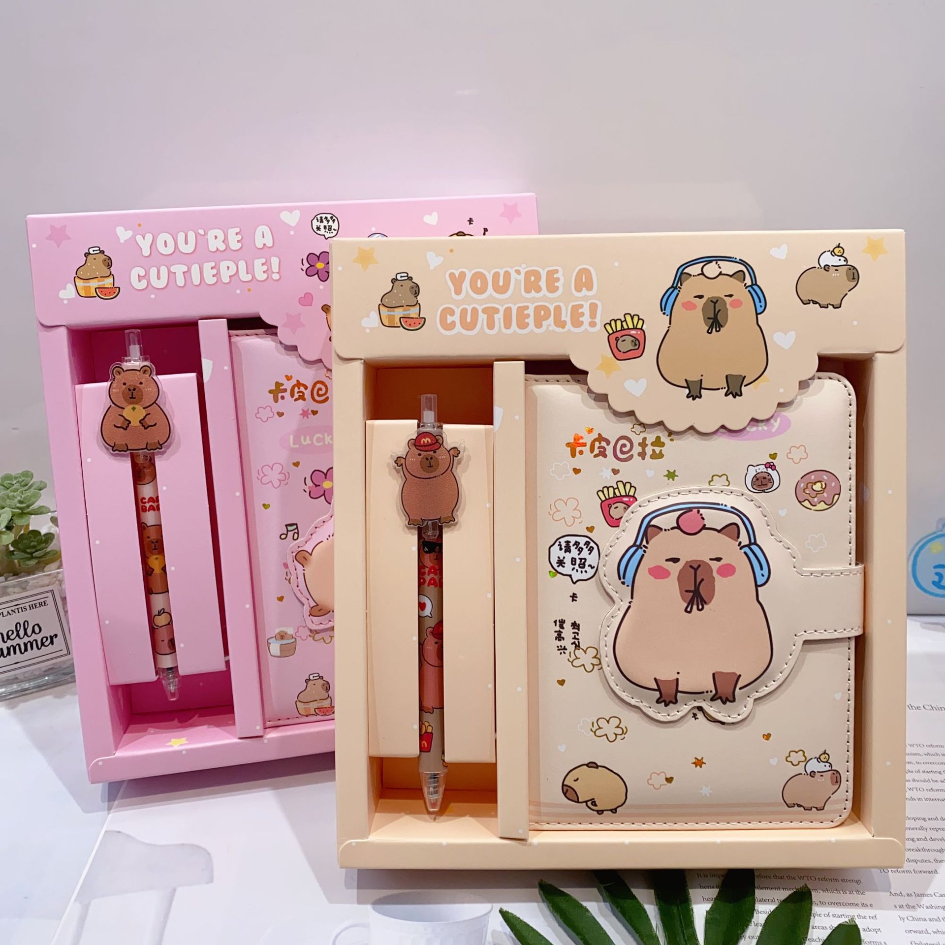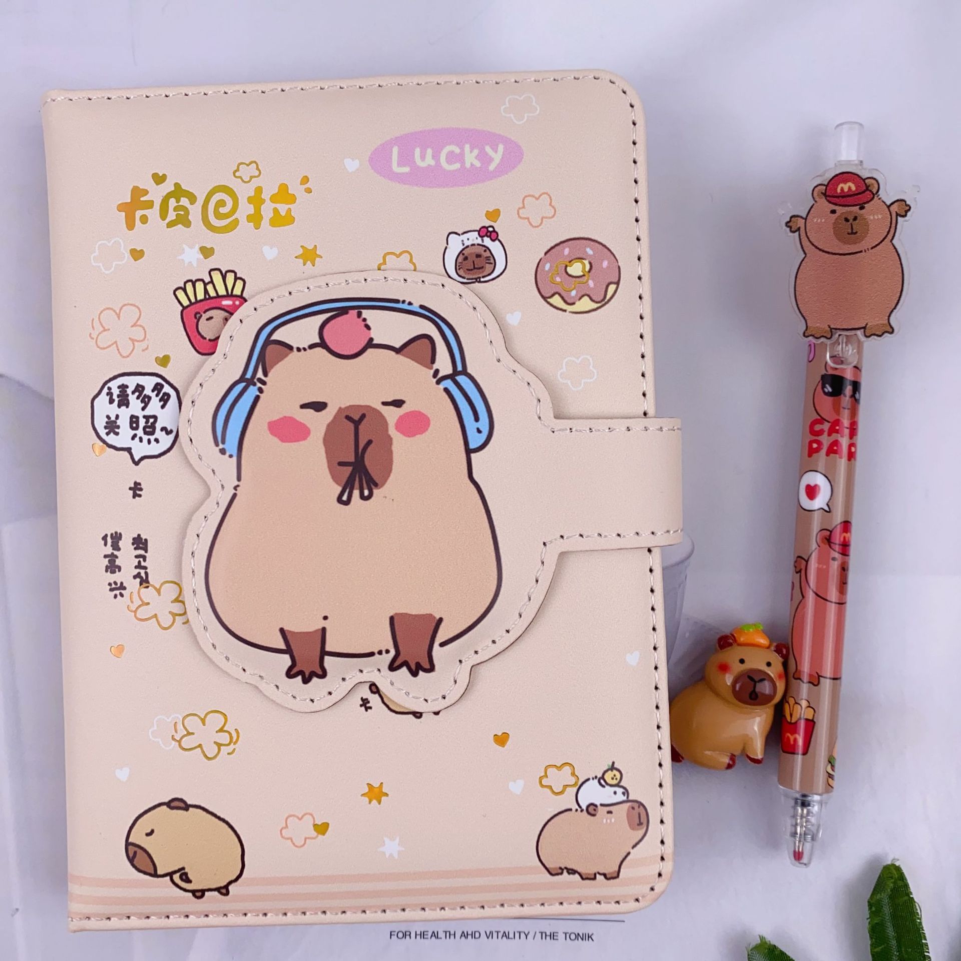 新款暴富卡皮巴拉手账本套装可爱少女心卡通文具pu磁扣记事本礼盒