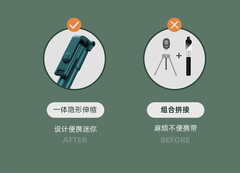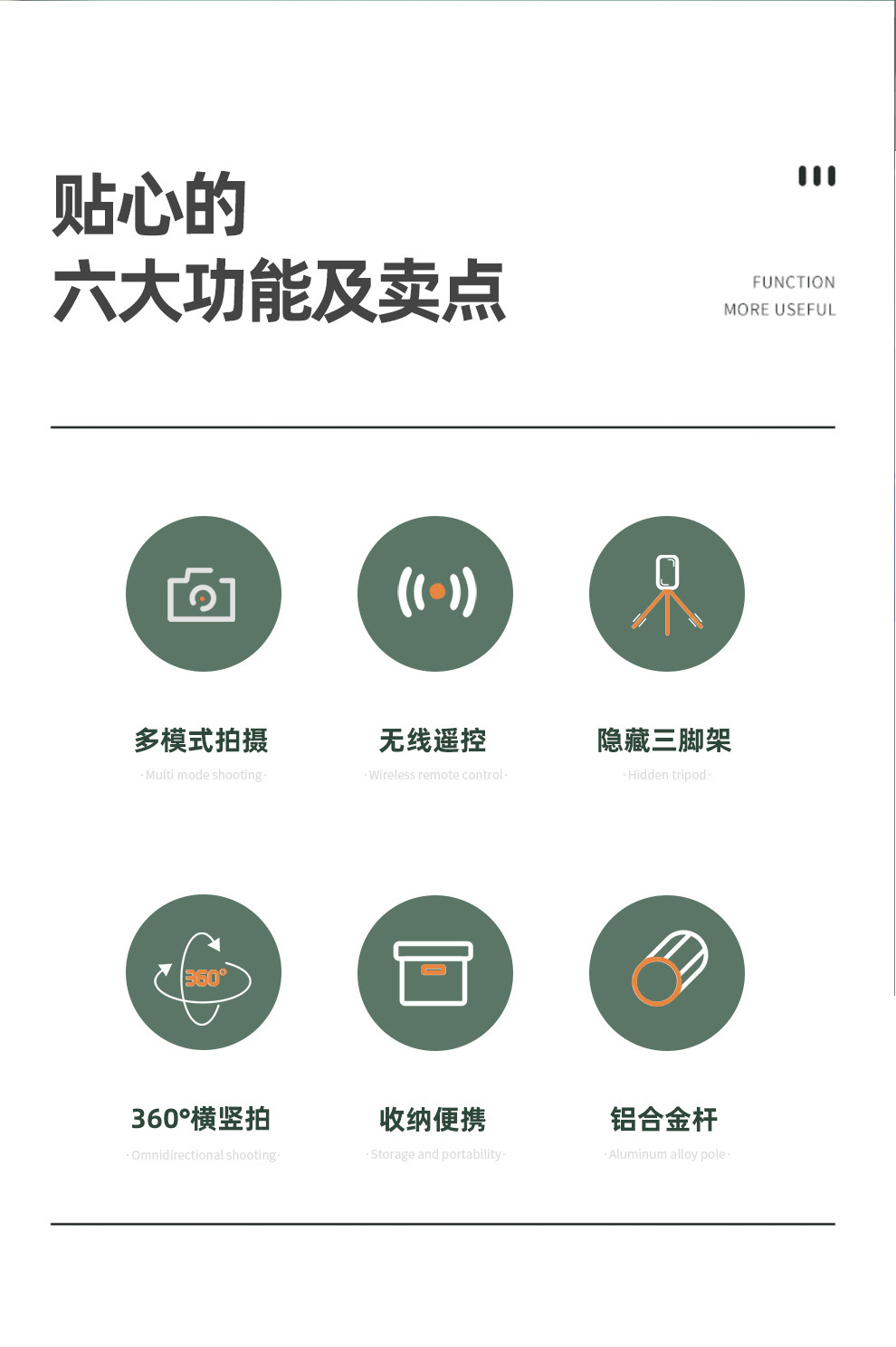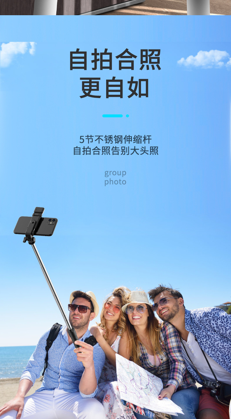 爆款R1系列手机蓝牙自拍杆补光直播拍摄便携一体式伸缩三脚架