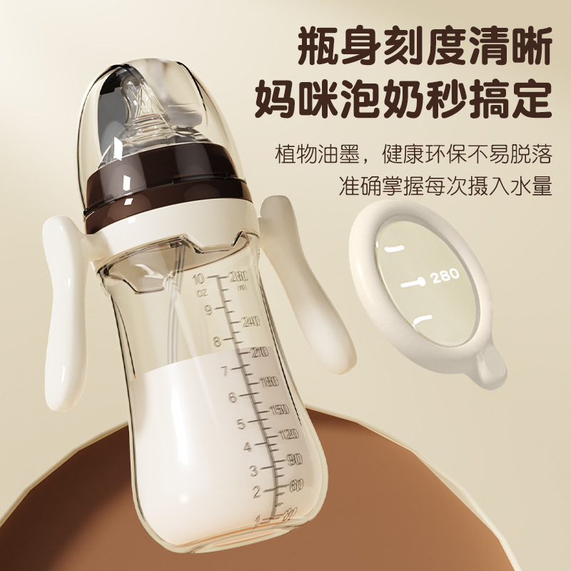 婴儿奶瓶防呛防胀气宽口径奶瓶带手柄宝宝奶瓶带吸管pp奶瓶批发