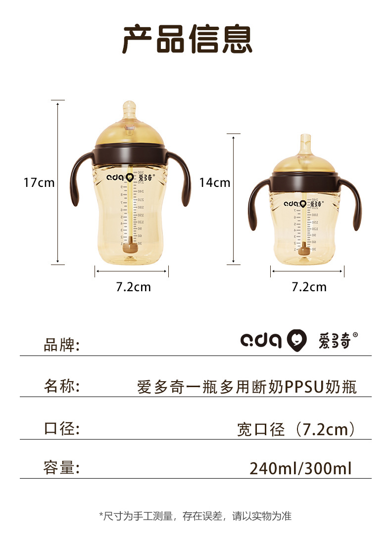 爱多奇PPSU婴儿奶瓶大宝宝仿母乳断奶奶瓶鸭嘴学饮杯直饮吸管奶瓶