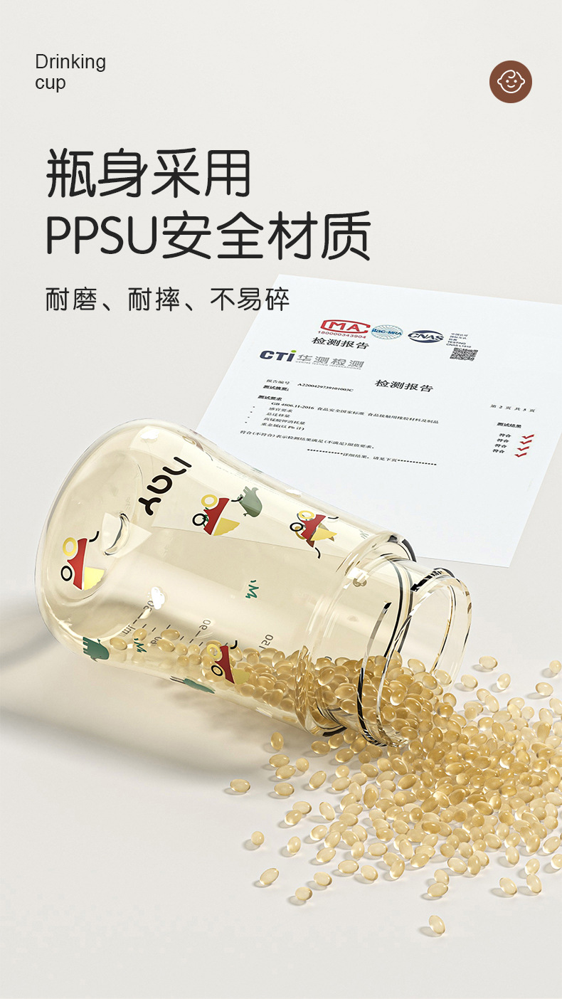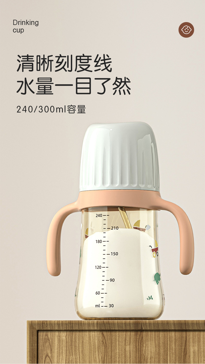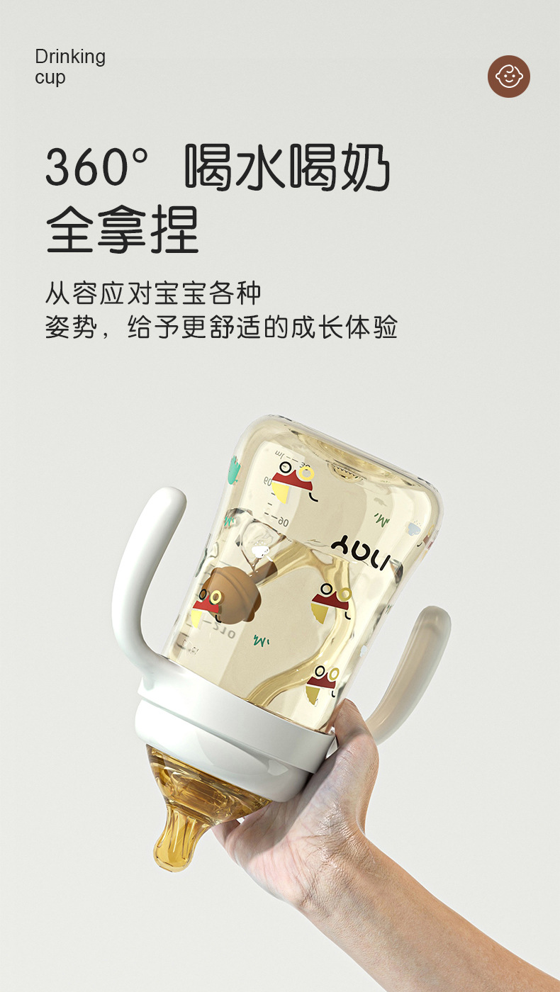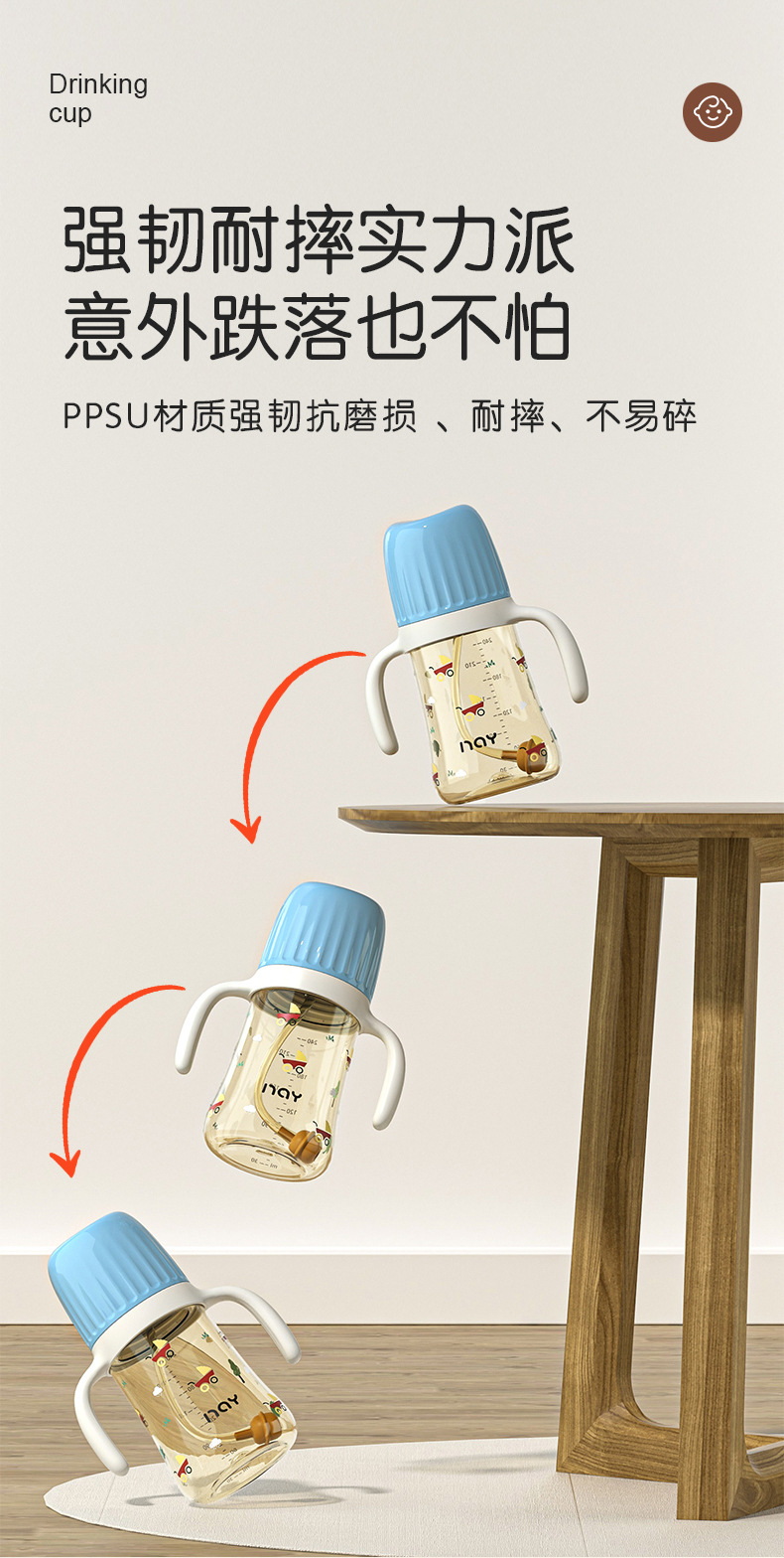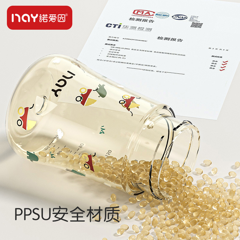 诺爱因新款 PPSU奶瓶婴儿宝宝6个月以上防摔仿母乳奶嘴带手柄奶瓶