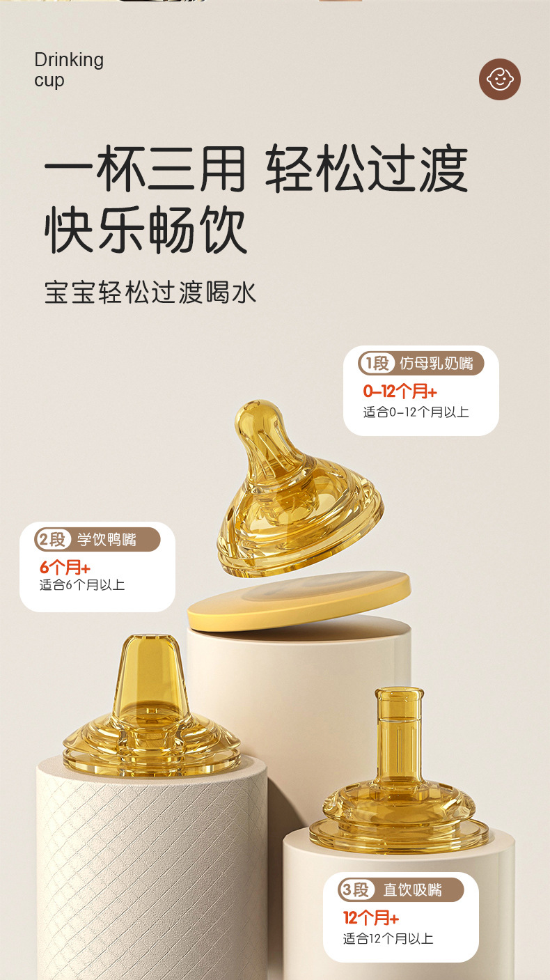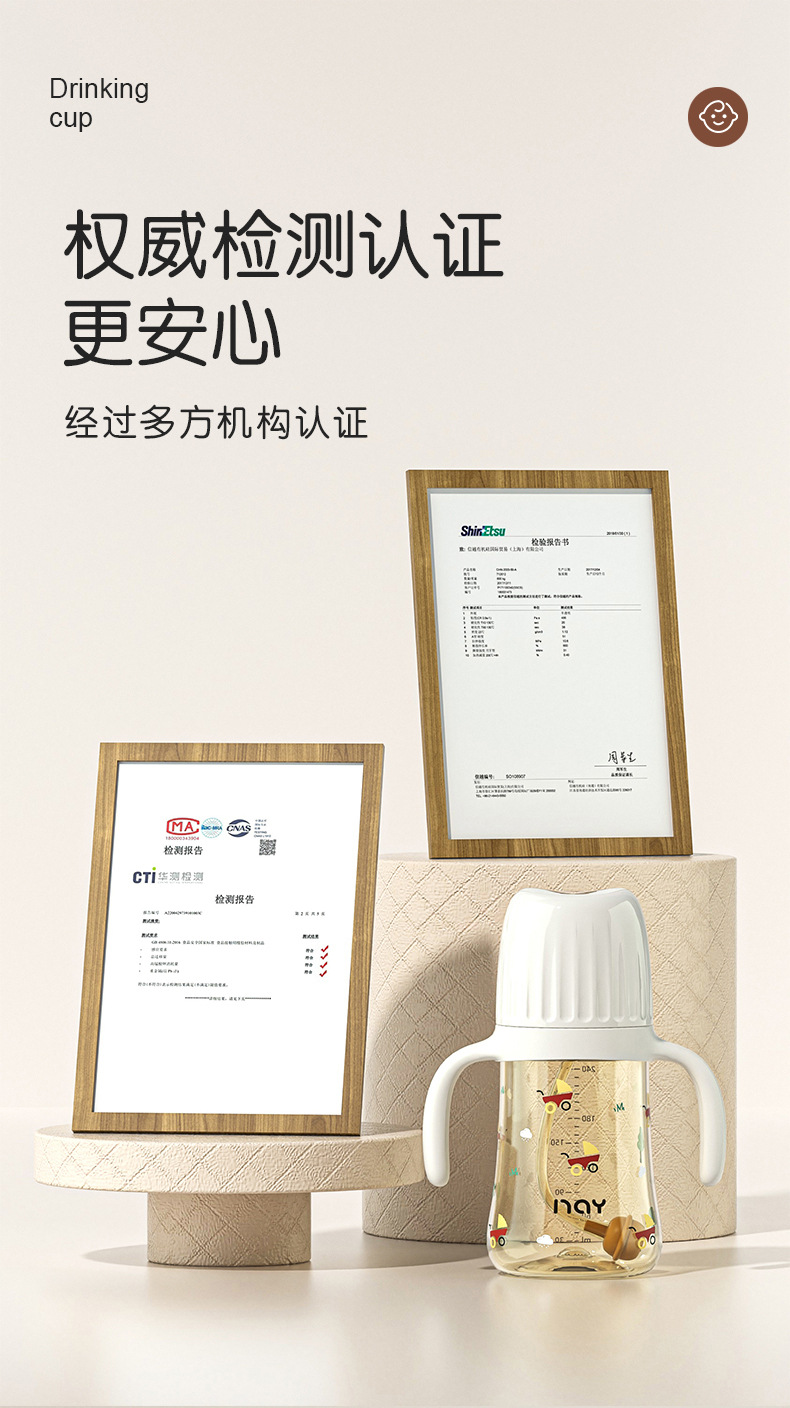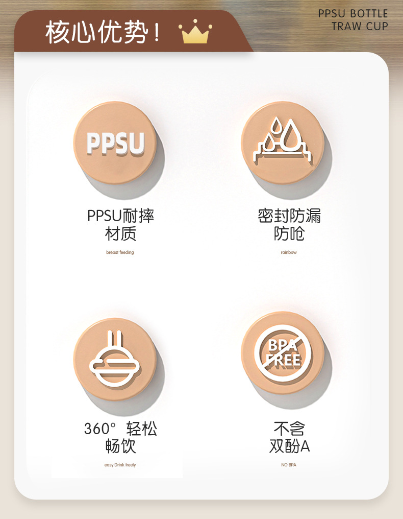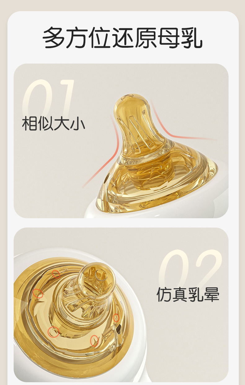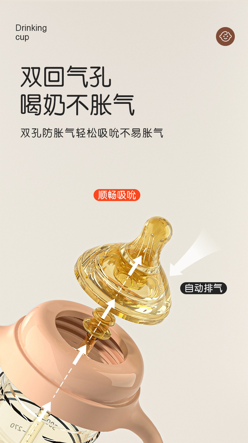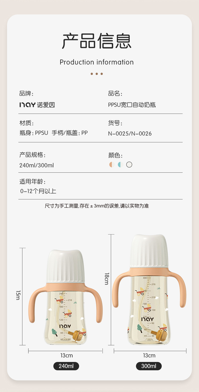 诺爱因新款 PPSU奶瓶婴儿宝宝6个月以上防摔仿母乳奶嘴带手柄奶瓶