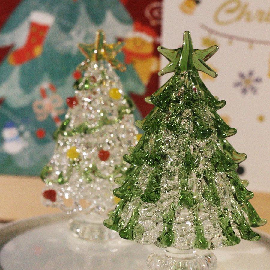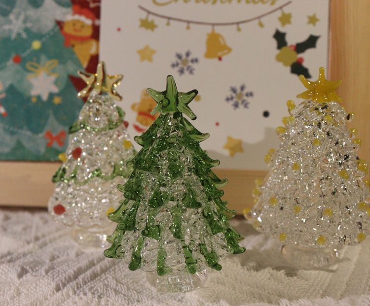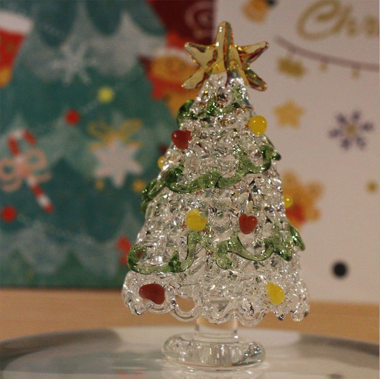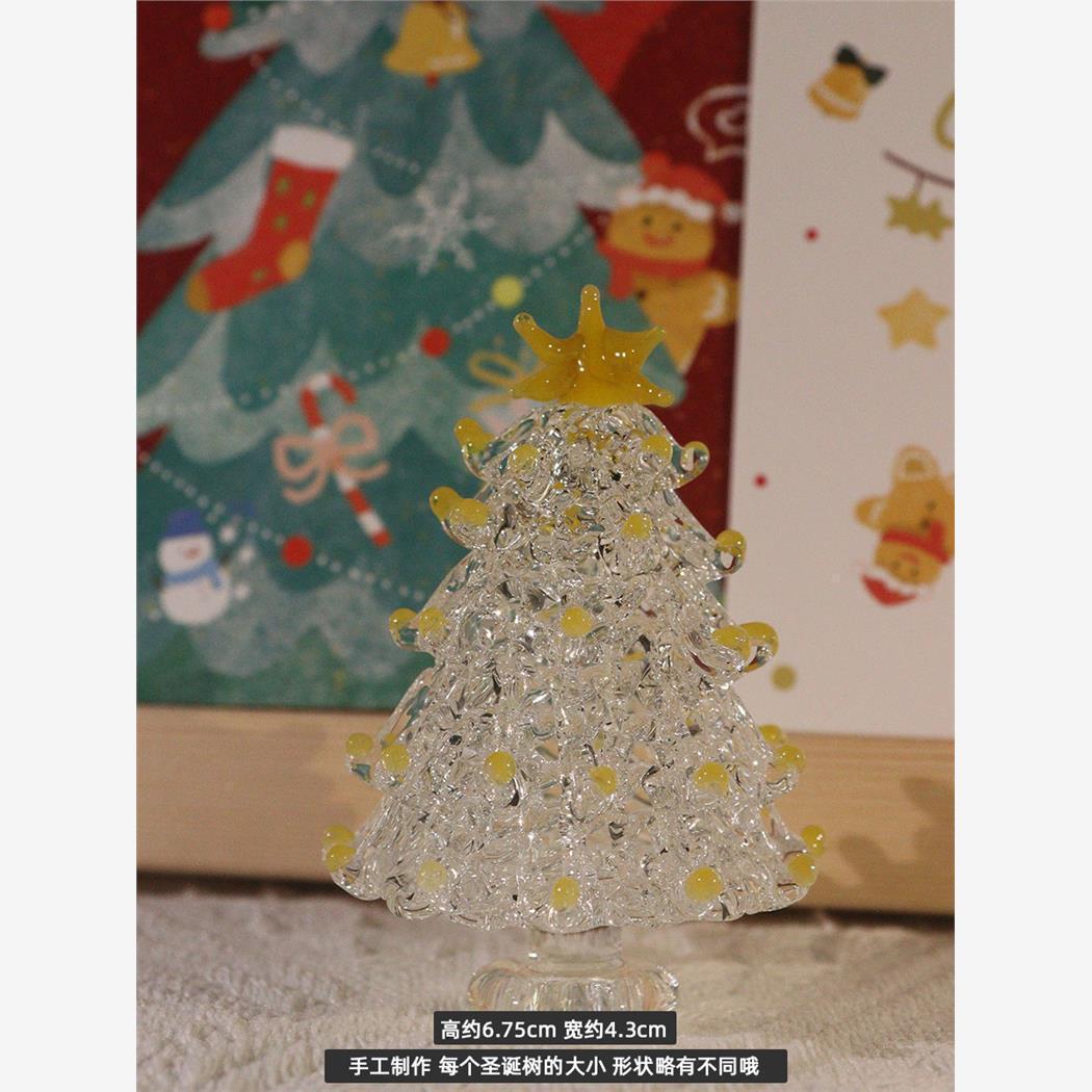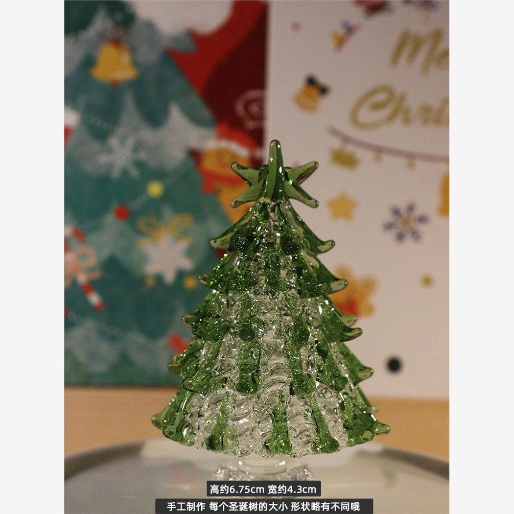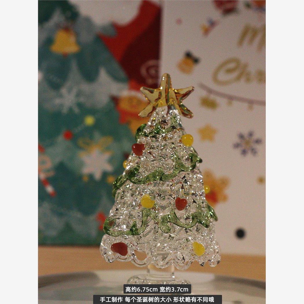手工拉丝琉璃圣诞树亮晶晶桌面摆件日常送礼可爱礼物玻璃家居装饰
