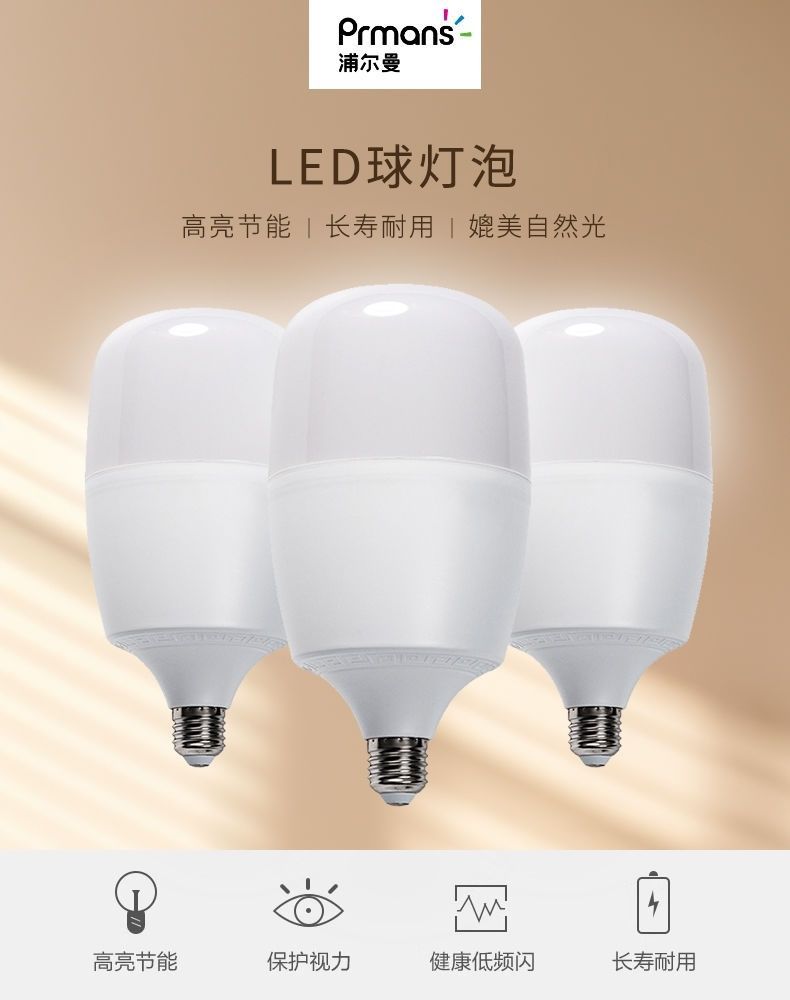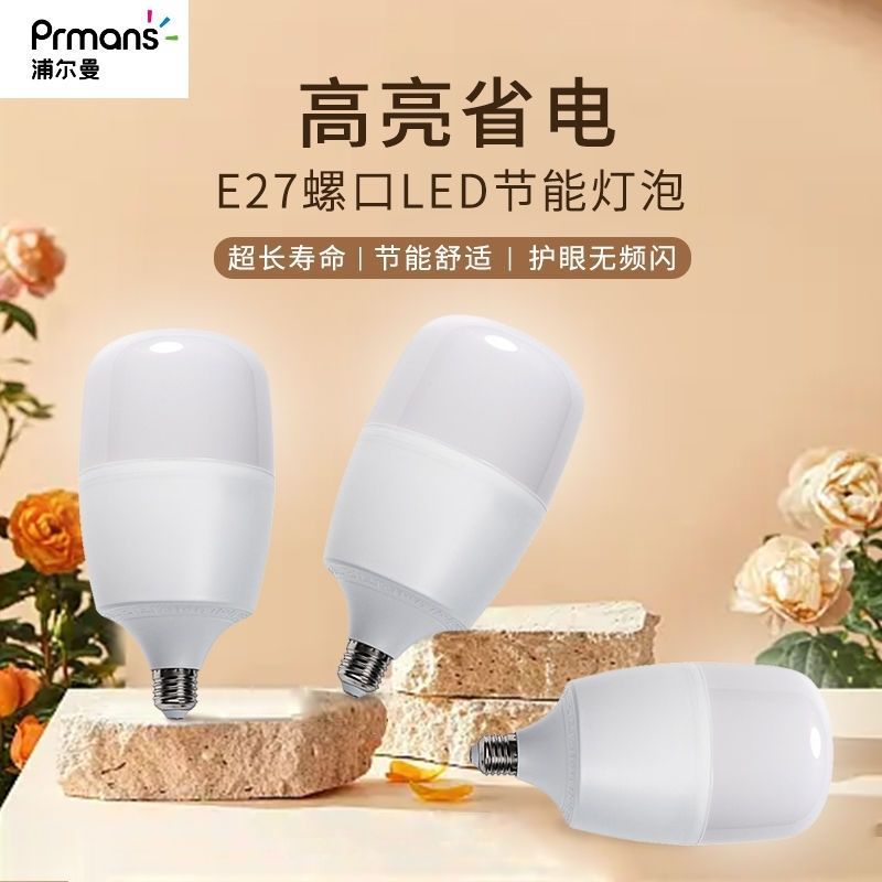 浦尔曼led球泡灯爆亮节能塑包铝大功率超亮灯泡家用B22卡口批发