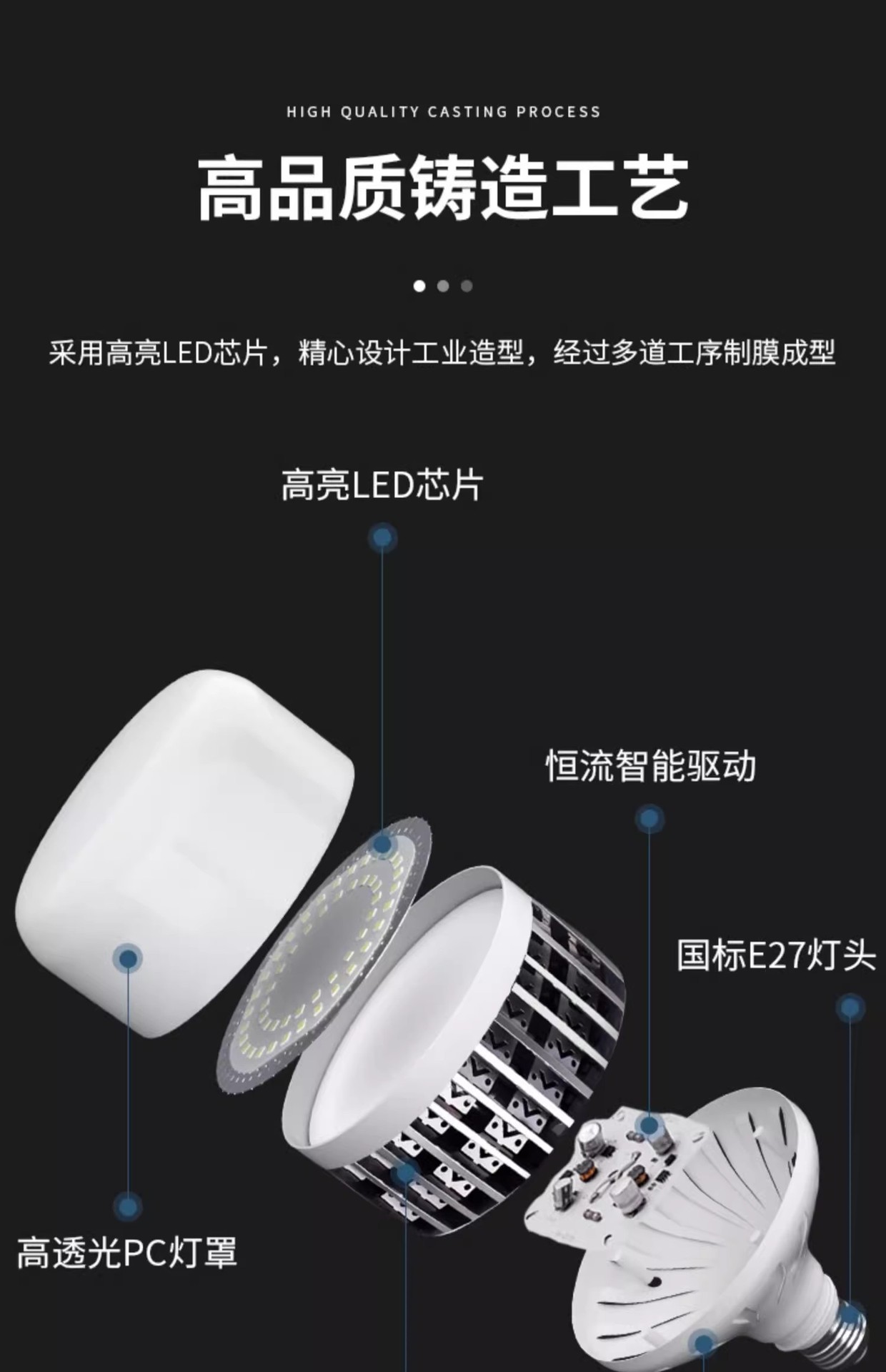 LED大功率灯泡螺口E27家用超亮球泡灯强光工地厂房车间节能照明灯