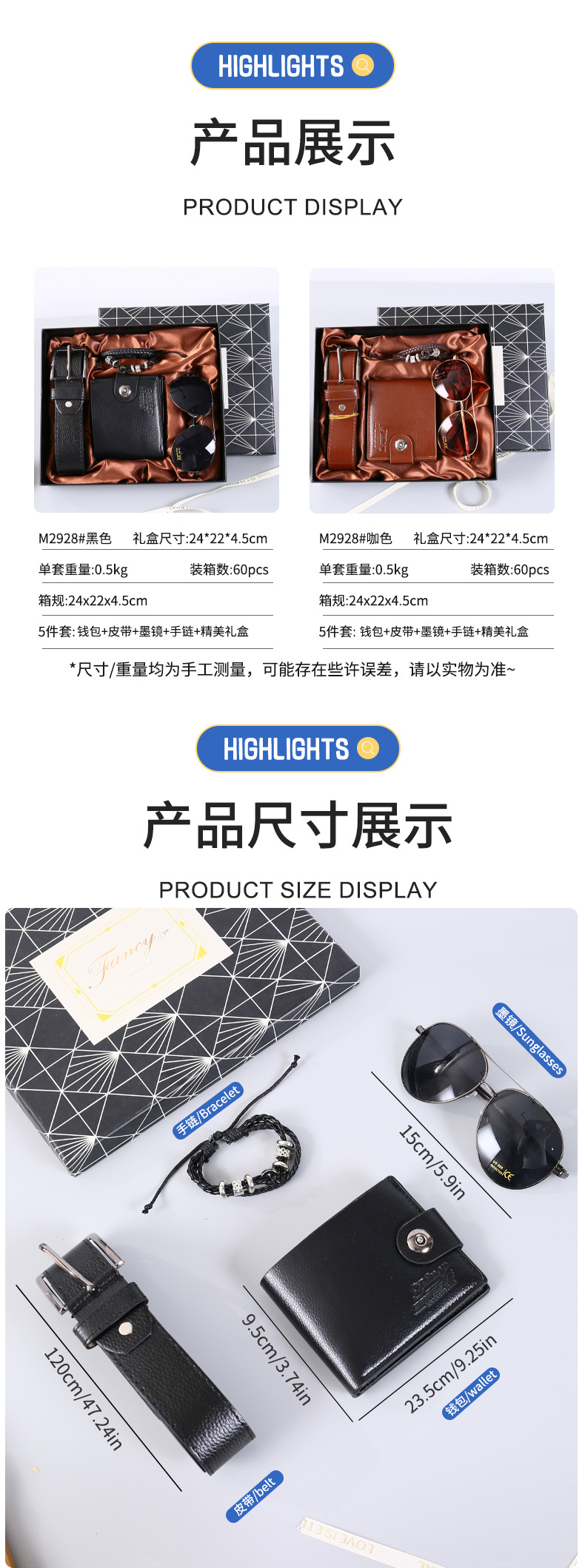 跨境男士礼品套装钱包皮带手链墨镜情人节感恩节礼物伴手礼盒套装
