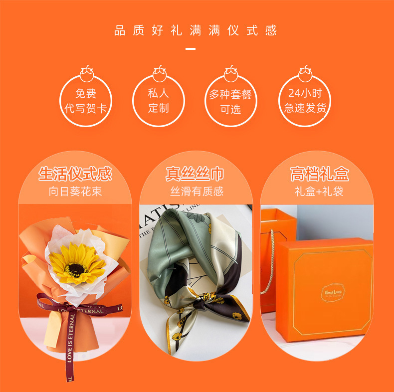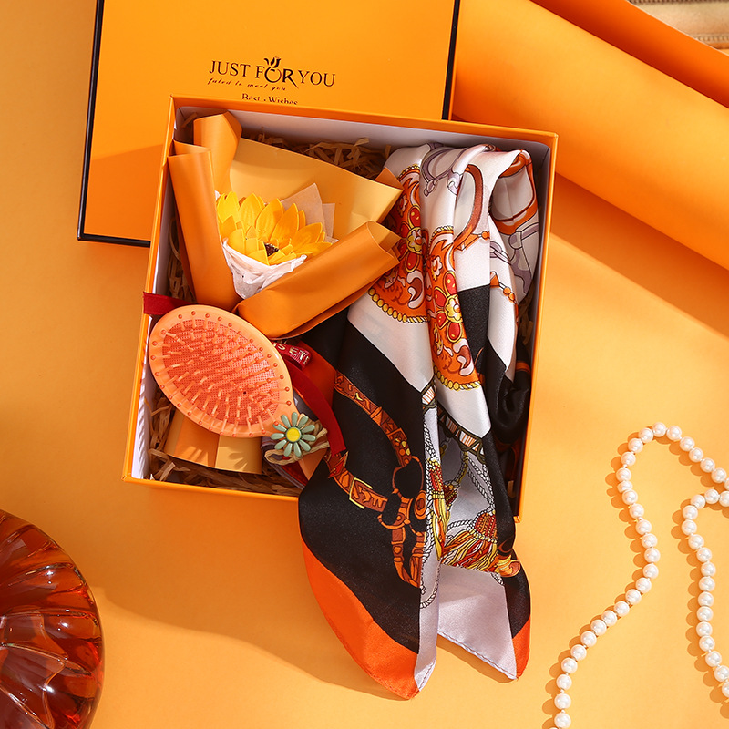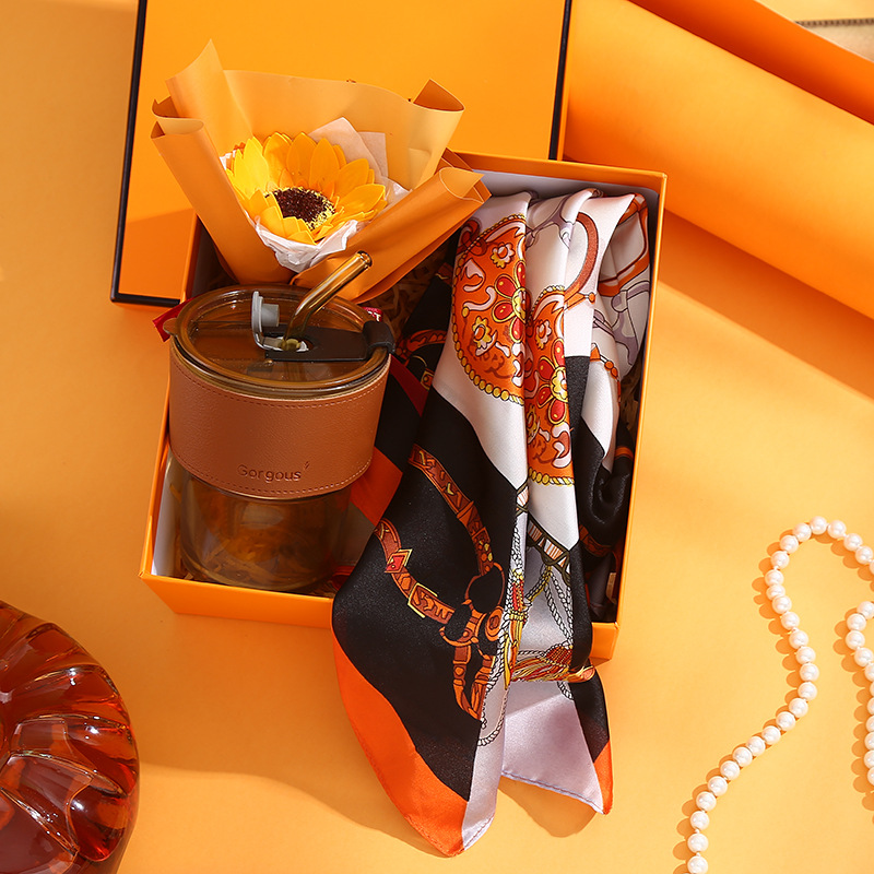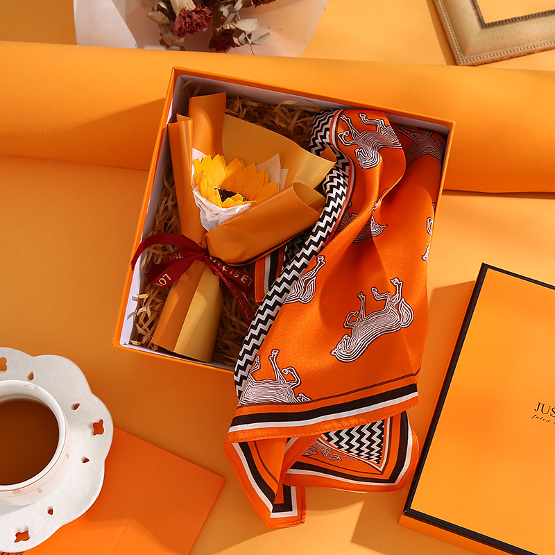 感恩节礼品女生生日礼物伴手礼礼盒套装高档丝巾花重阳节送老师女