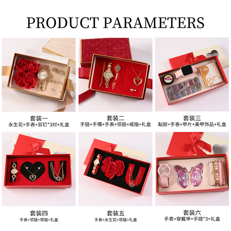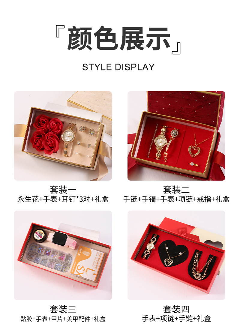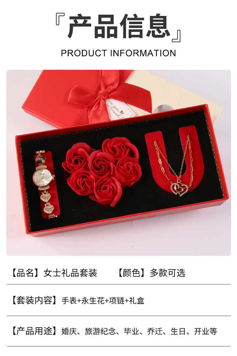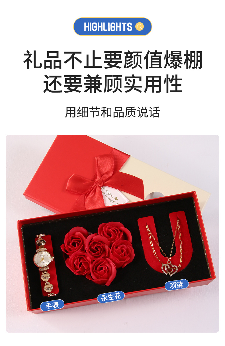 跨境情人节礼物套装感恩节伴手礼永生花项链手表结婚伴手礼套装
