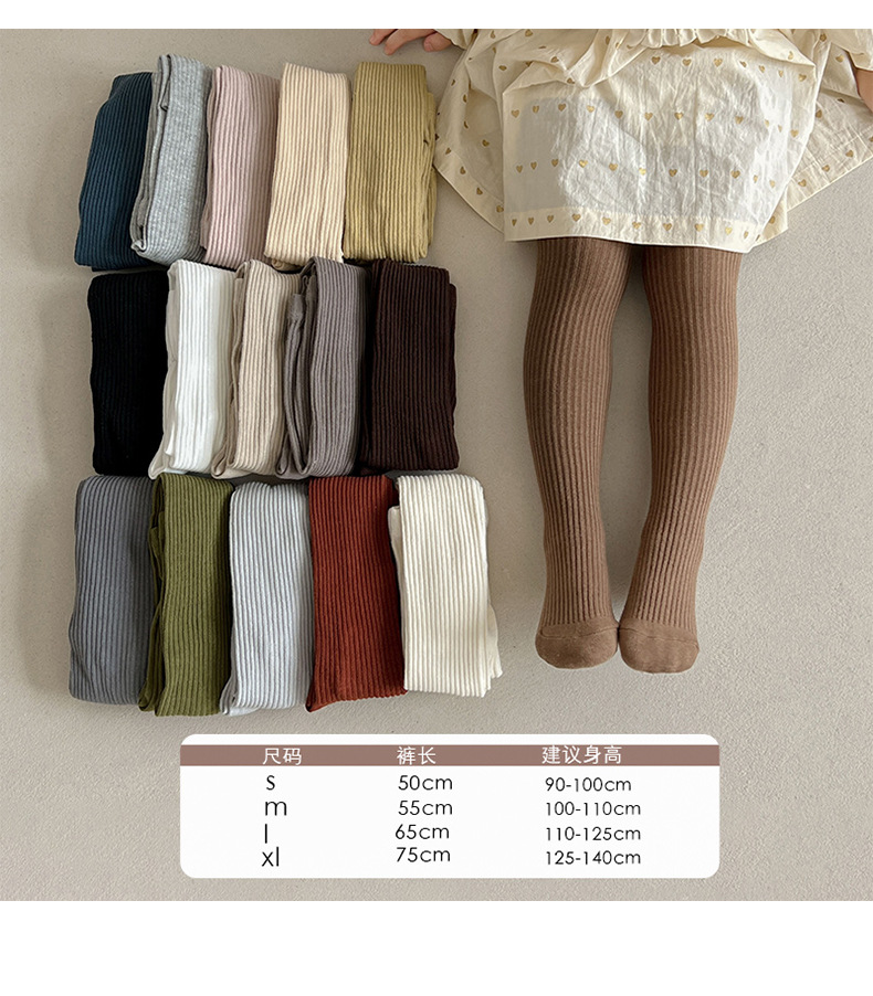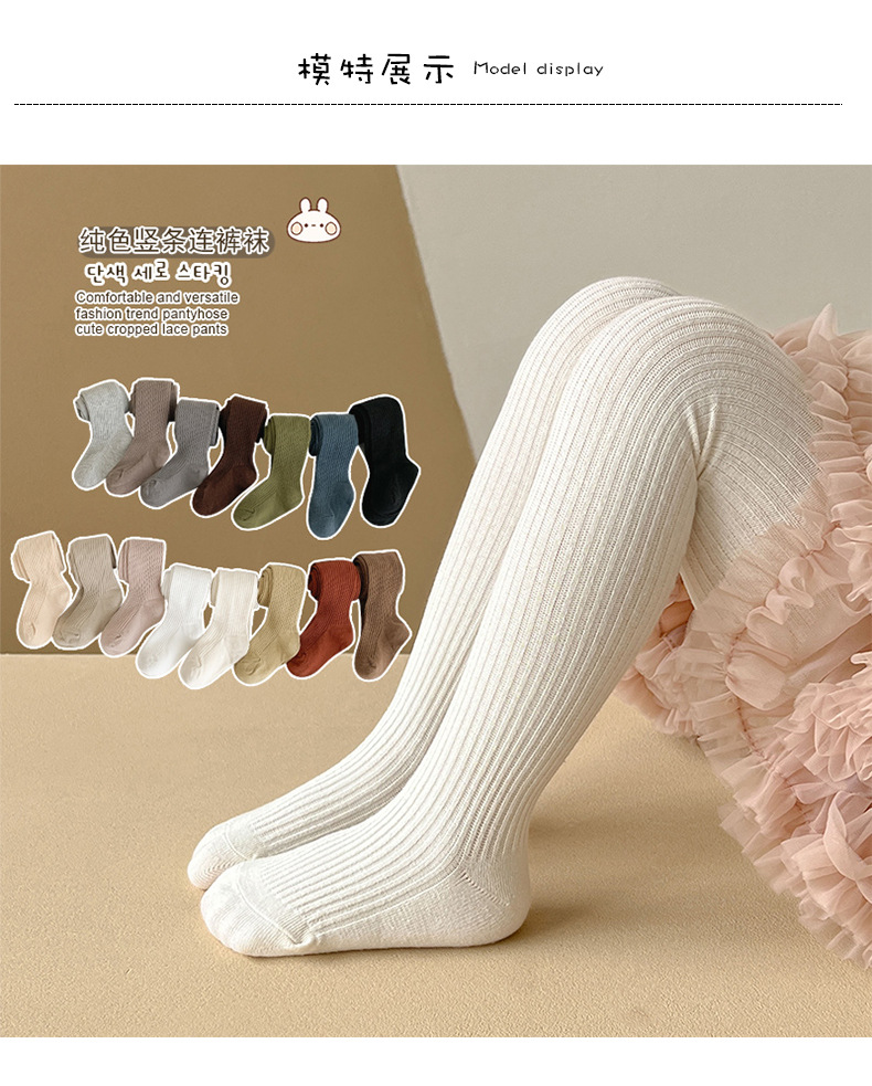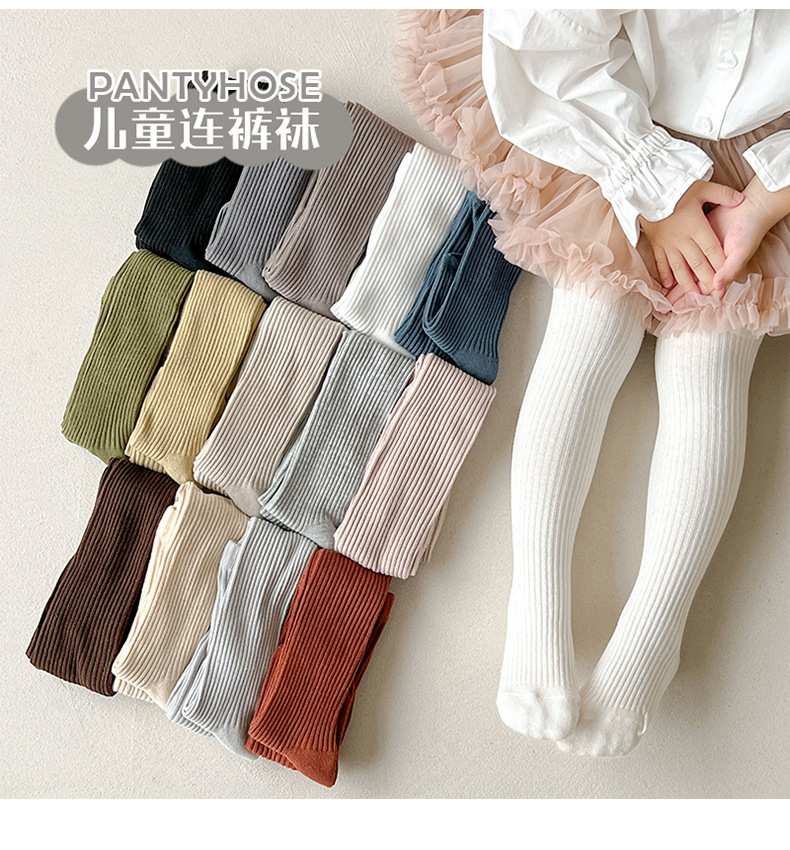 女童打底裤2023秋冬新款纯色竖条纹儿童打底裤韩版女童连裤袜代发