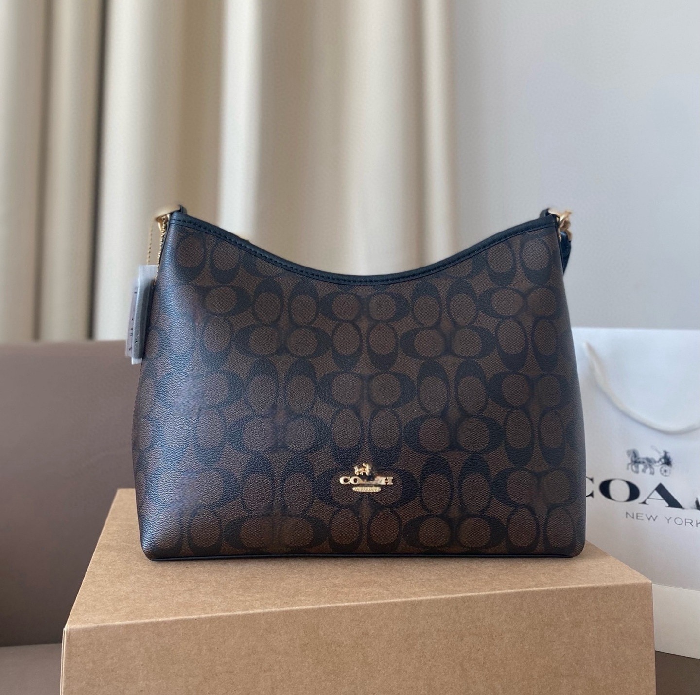 流浪包单肩斜挎腋下包真皮托特包深棕色老花包C家女包
