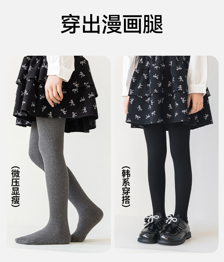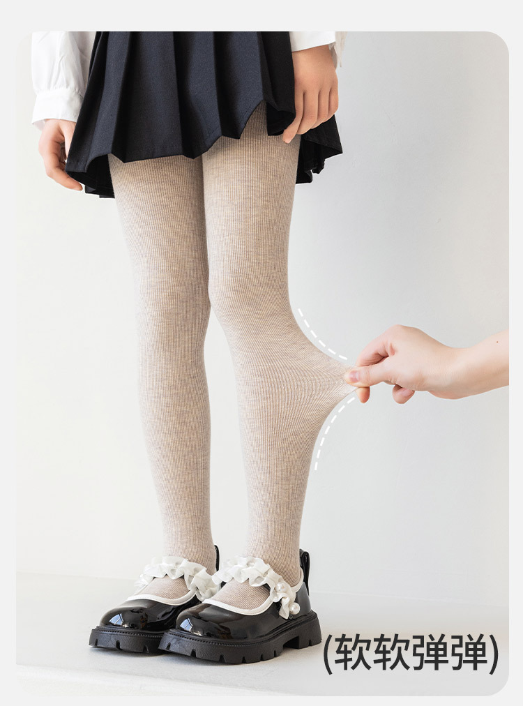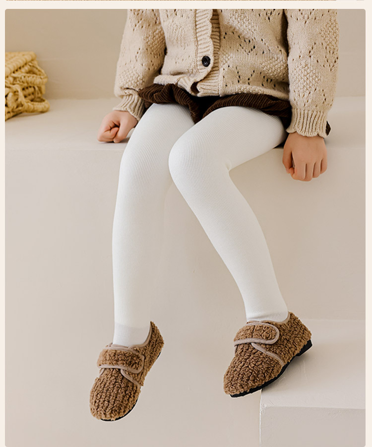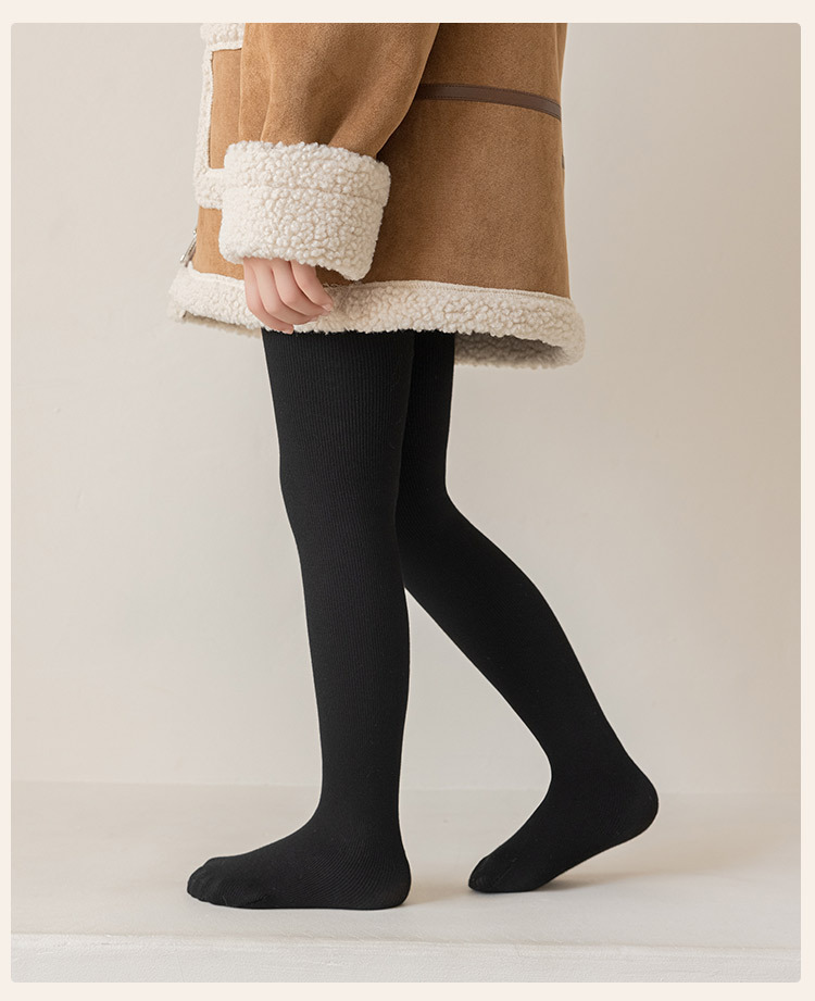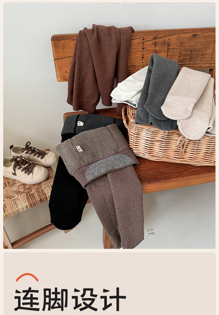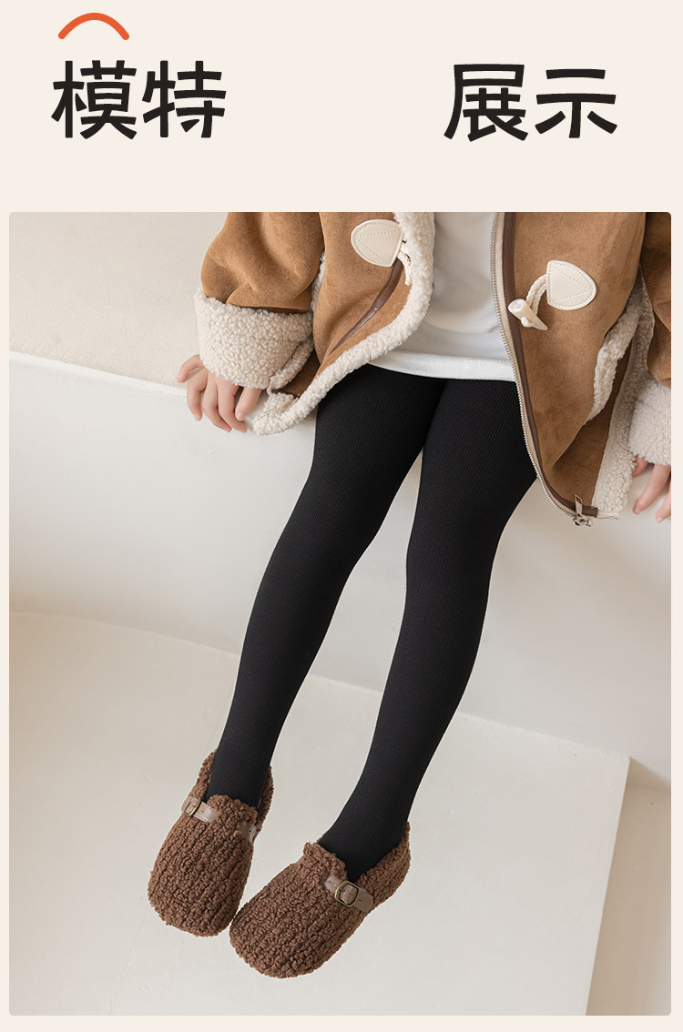 儿童冬季竖条纹加绒加厚打底裤女童连体裤袜子弹力加档白色舞蹈袜