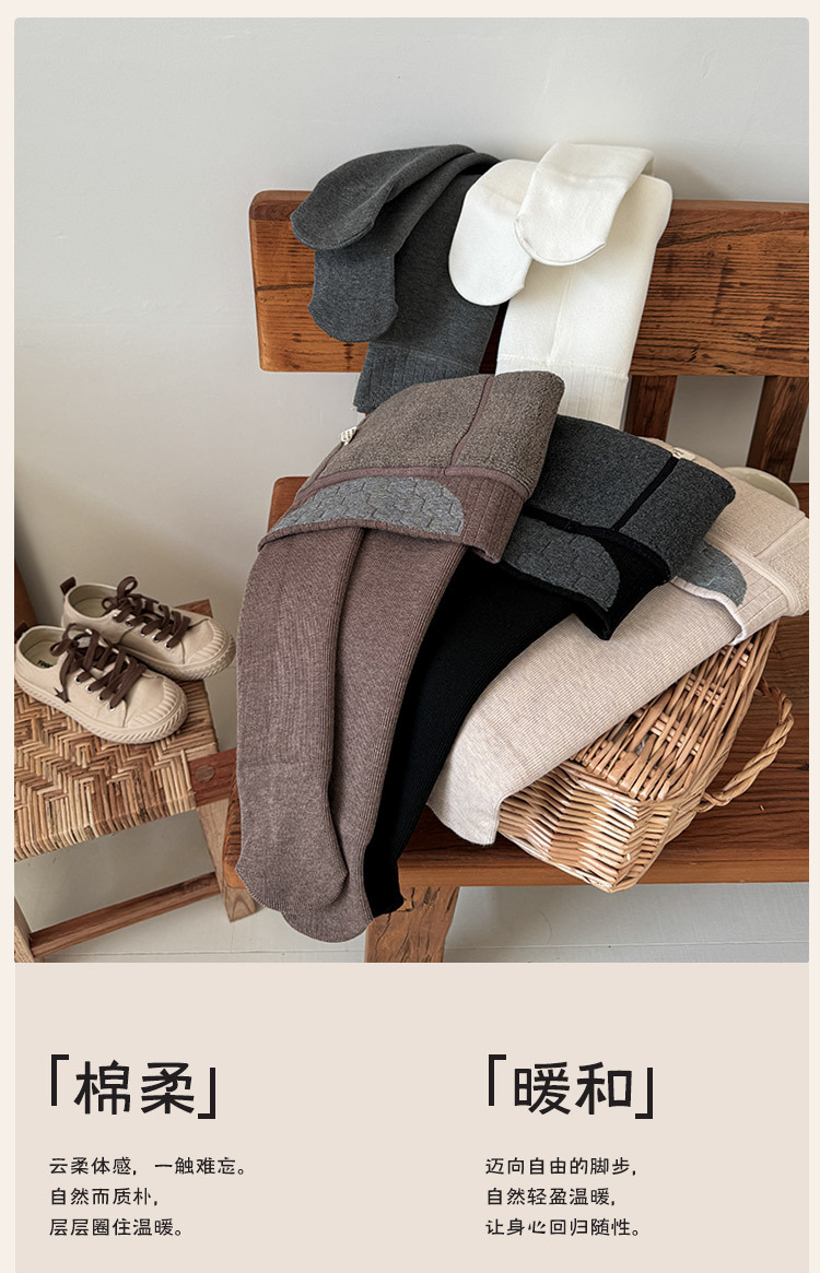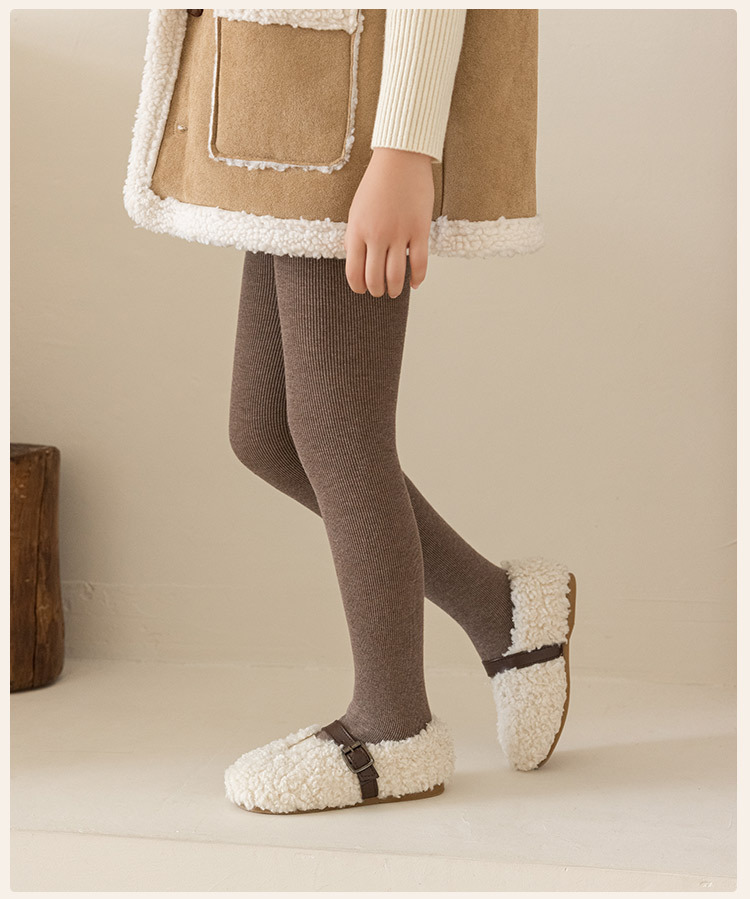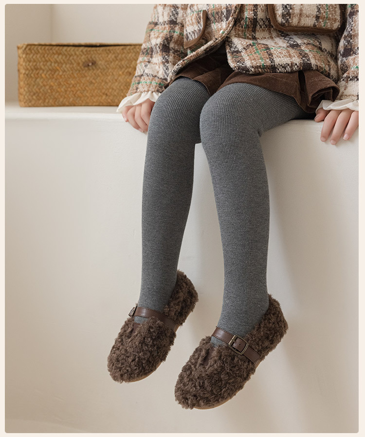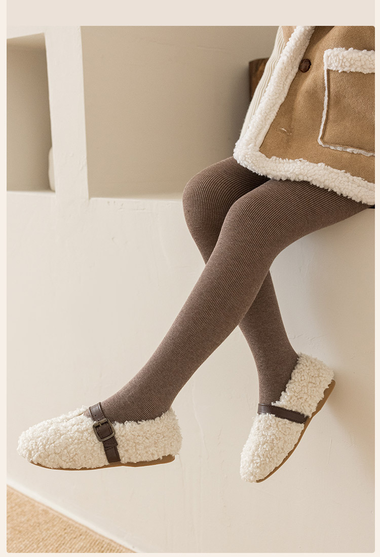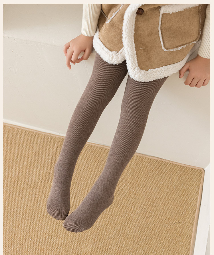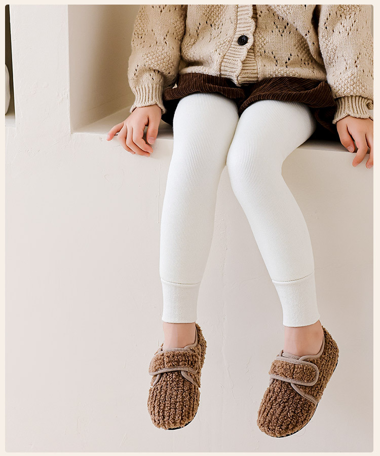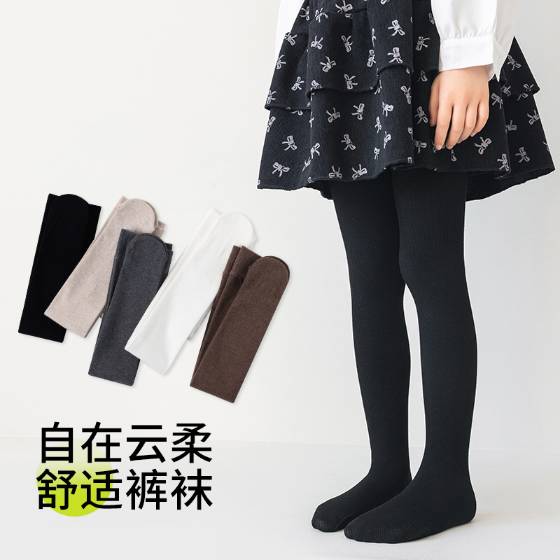 儿童冬季竖条纹加绒加厚打底裤女童连体裤袜子弹力加档白色舞蹈袜