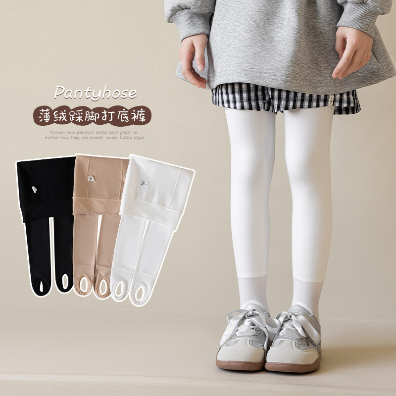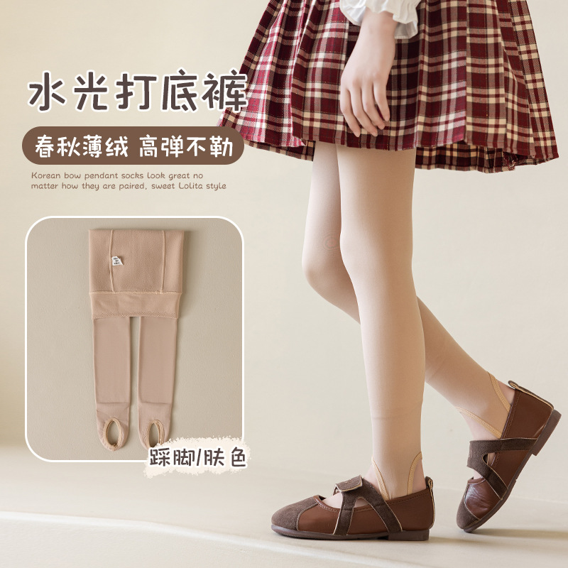 2025女童水光袜光腿袜子神器秋冬薄绒踩脚儿童肤色连裤袜打底裤潮