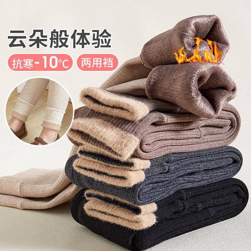 女童打底裤冬款加绒加厚小童宝宝两用裆一体裤竖条纹棉裤外穿洋气