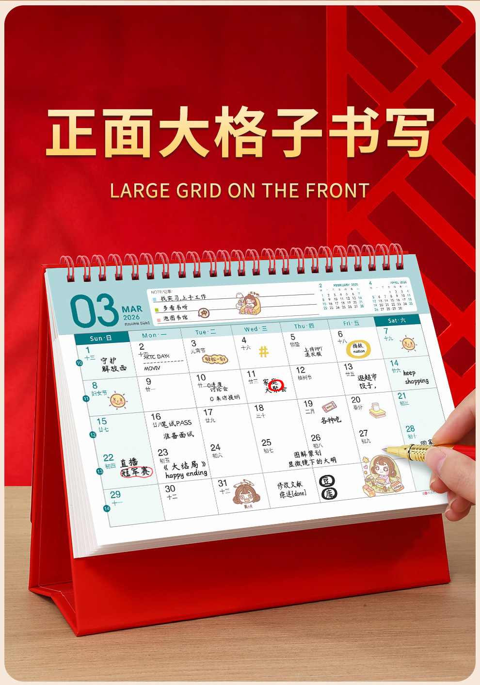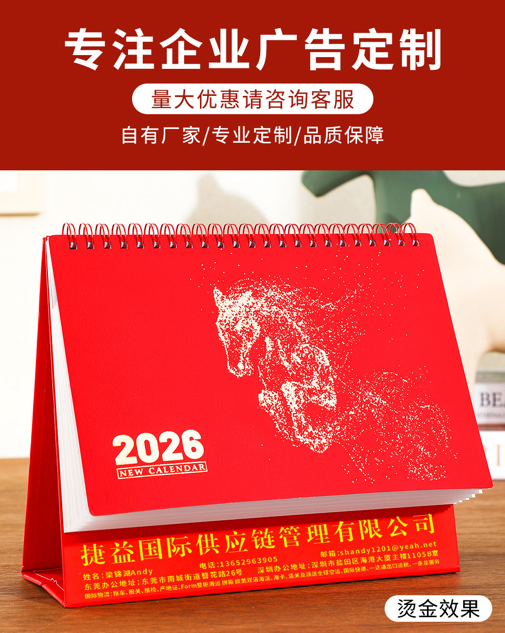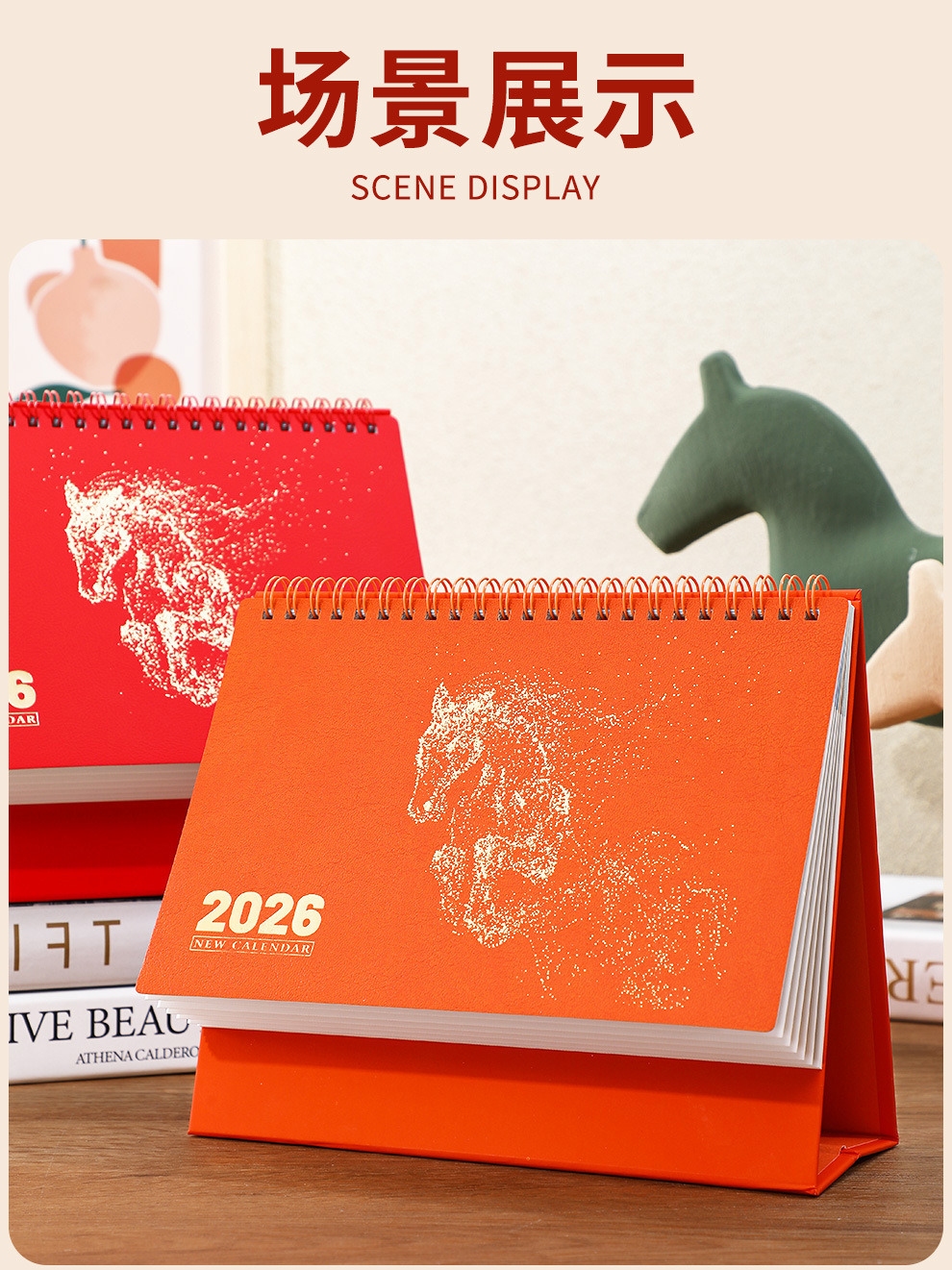 2026年新款台历定制皮革封面月历定制马年创意桌面摆件办公日历本