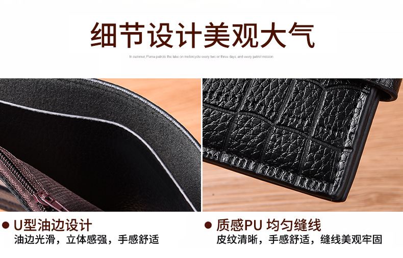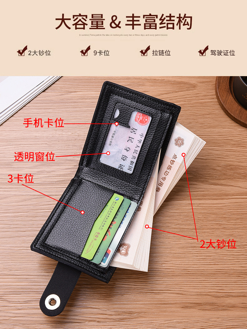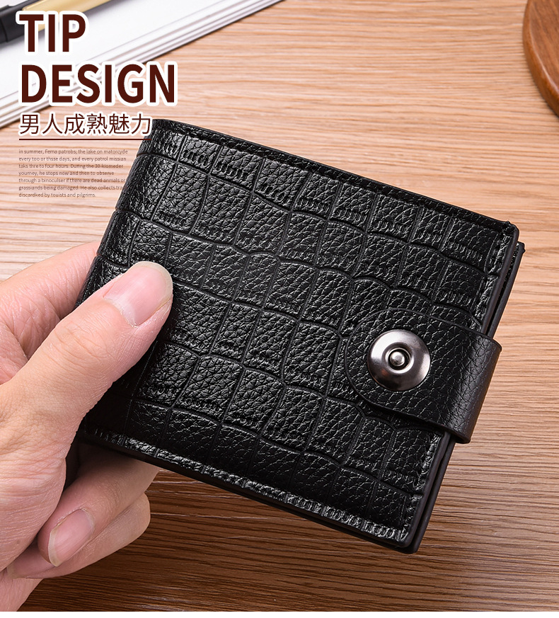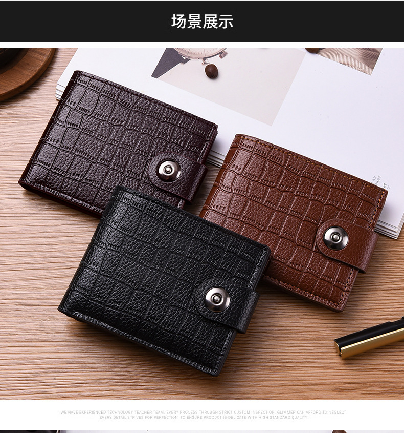 新款跨境男士短款钱包商务时尚零钱包多卡位吸扣拉链男包皮夹批发
