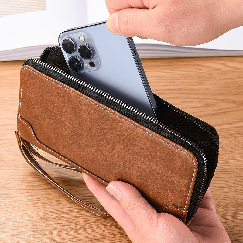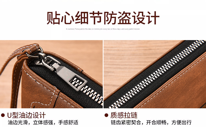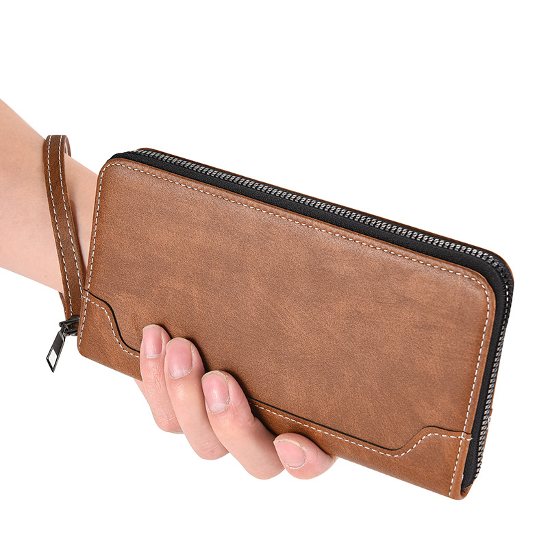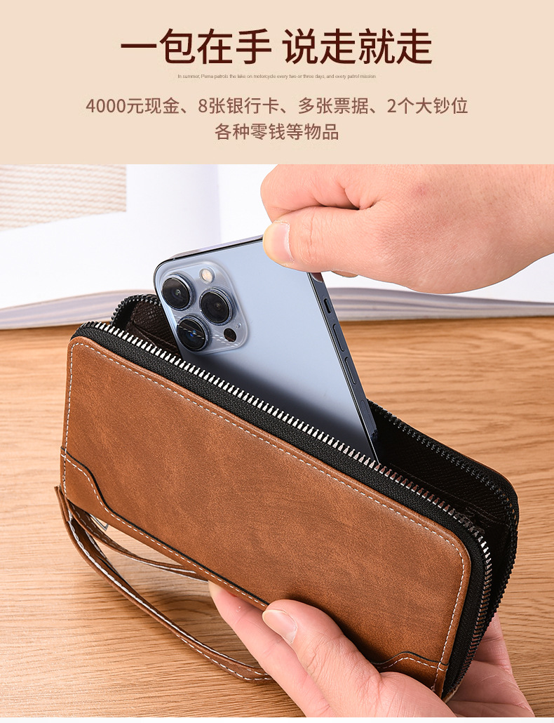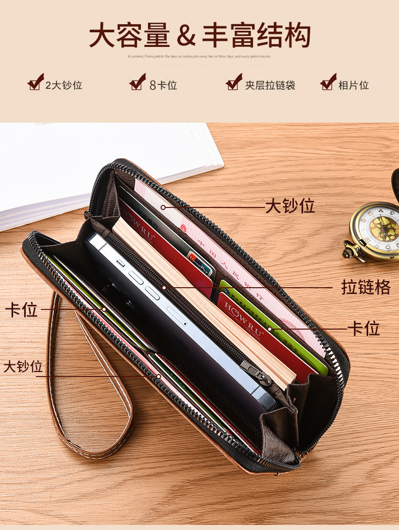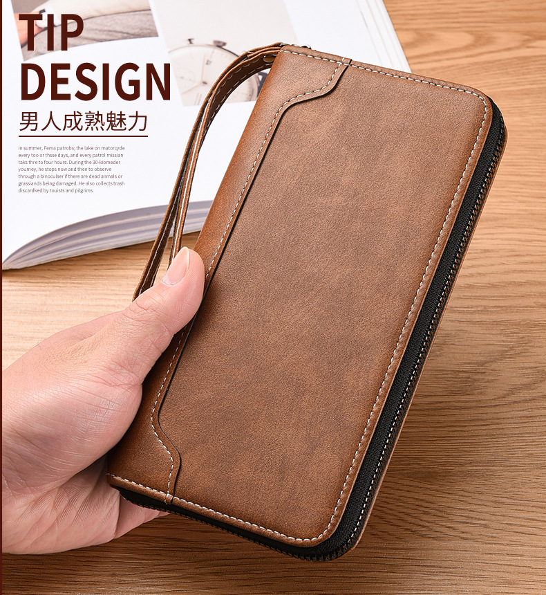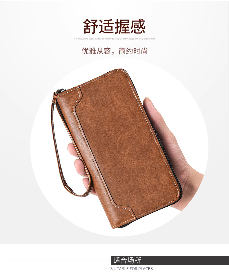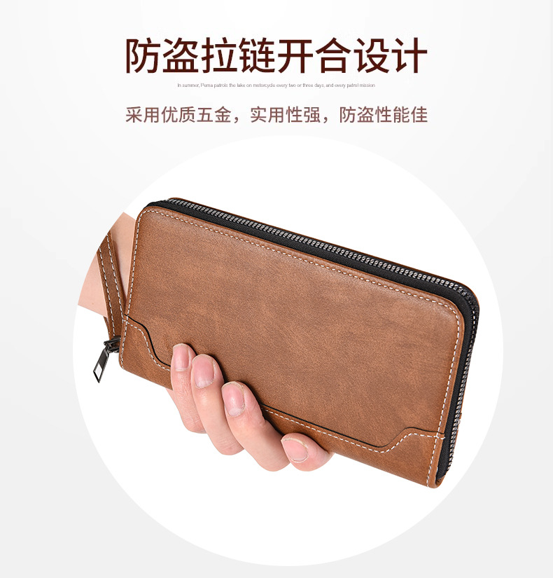 新款男士长款拉链钱包多卡位男款钱夹简约拼皮手拿包大容量男钱包