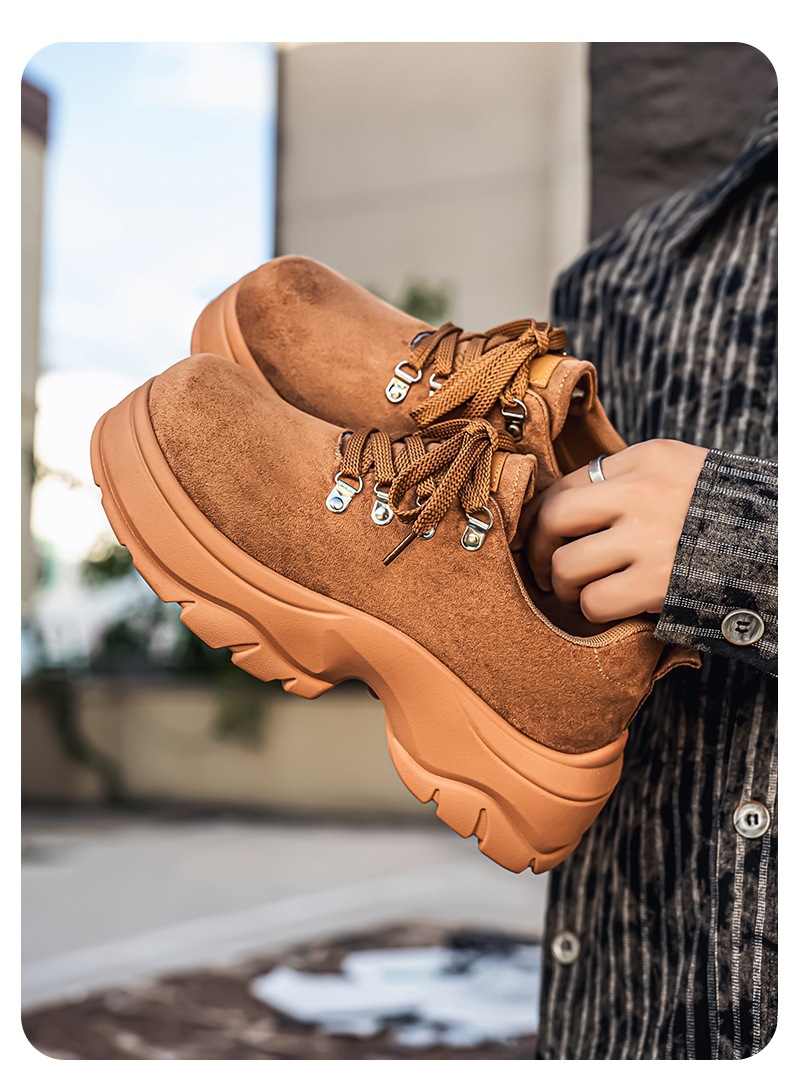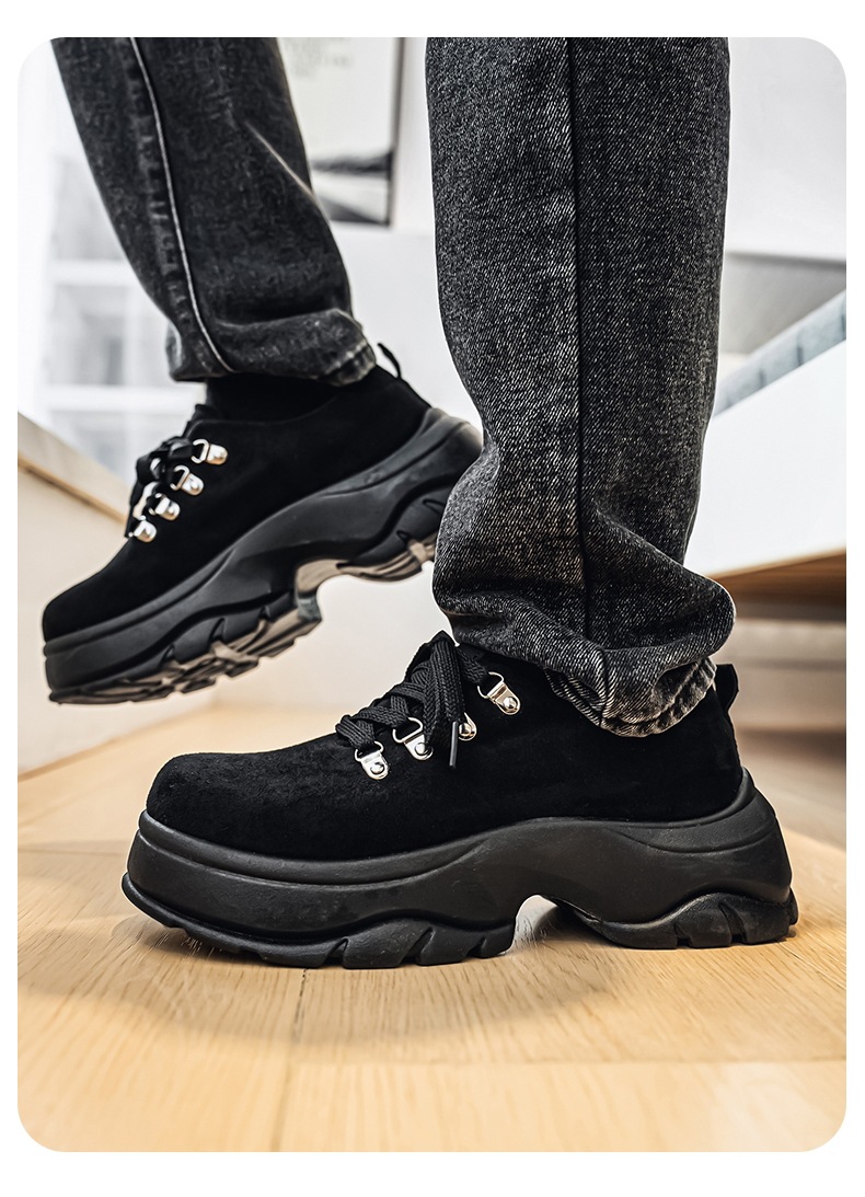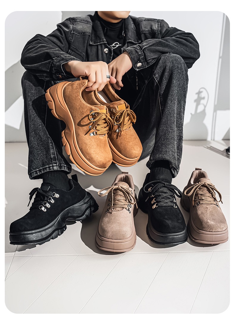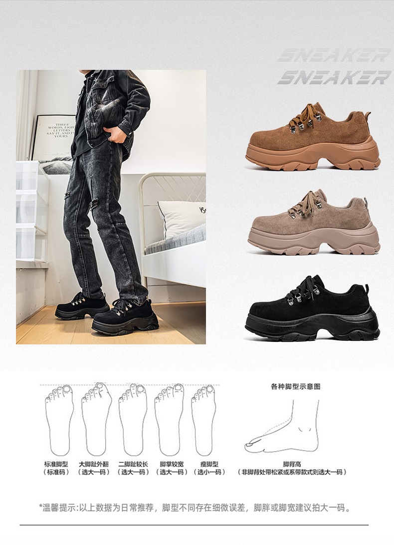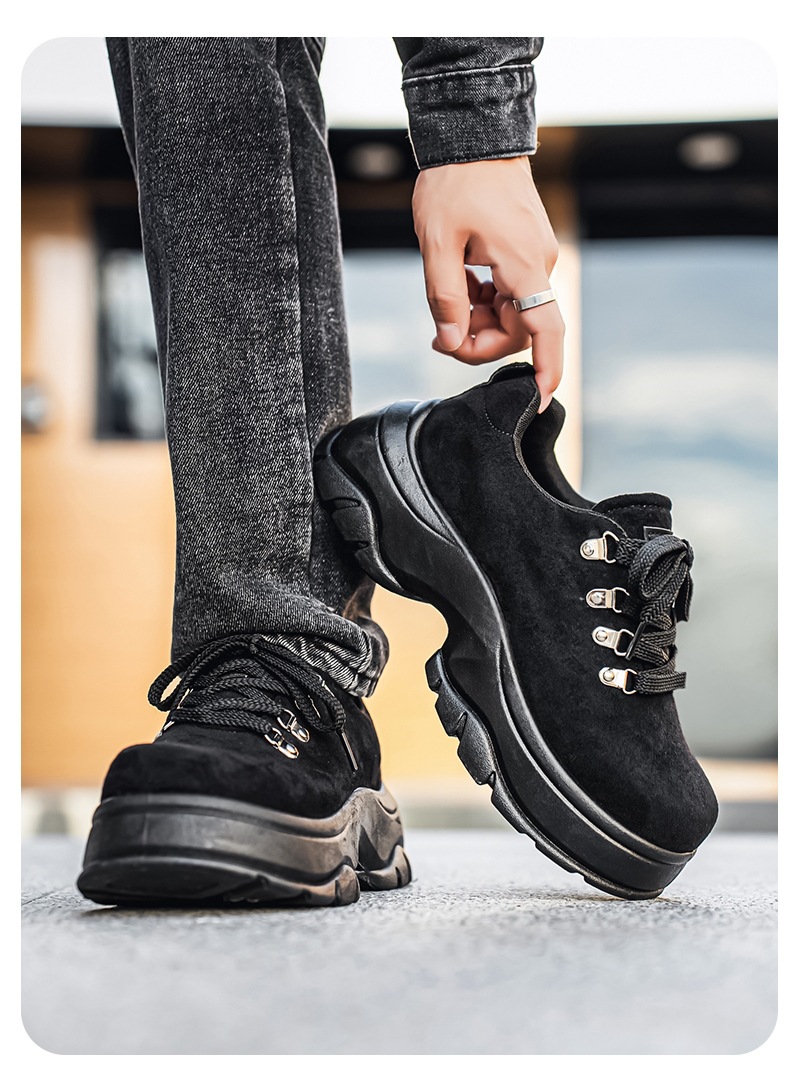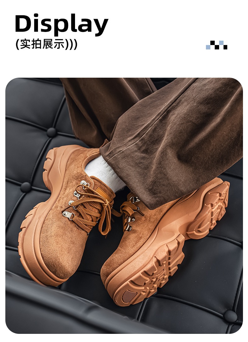 厚底增高休闲皮鞋绒面时尚老爹潮男鞋秋冬新款青年工装德比鞋低帮