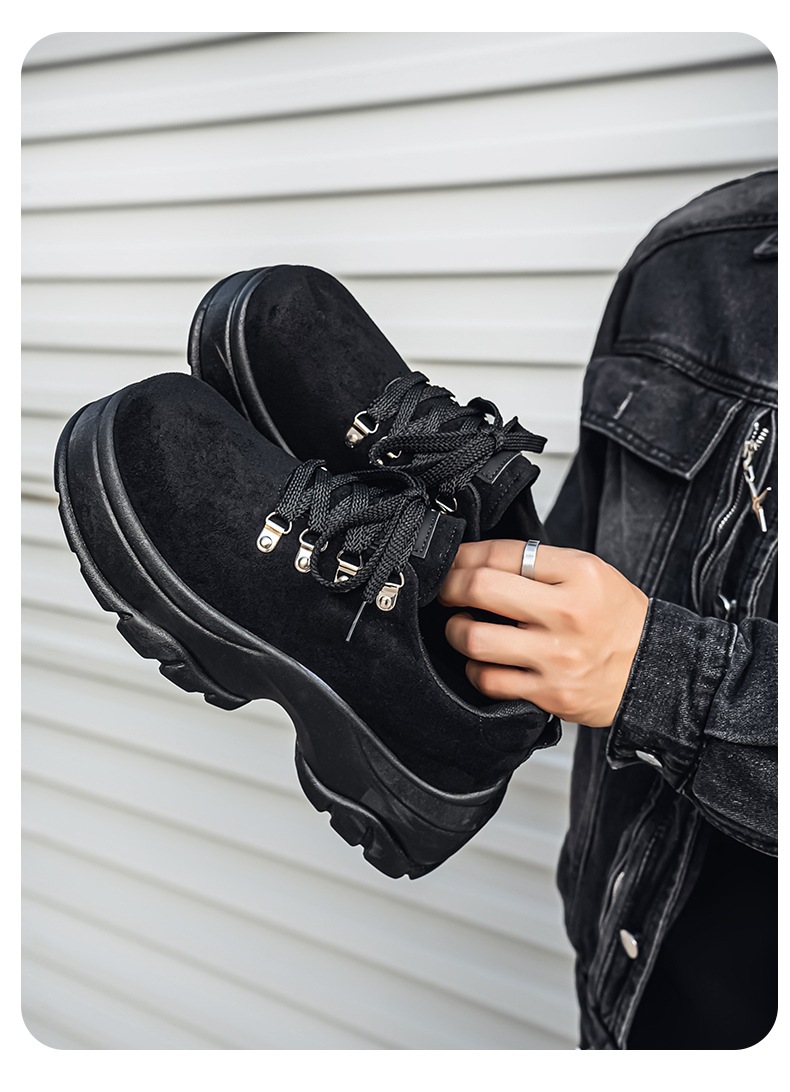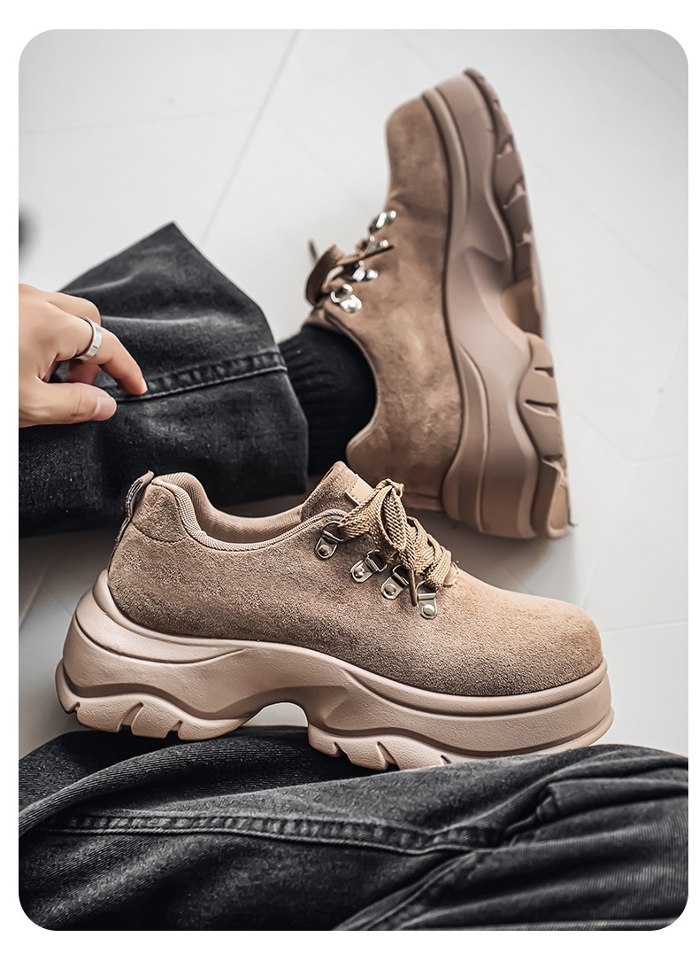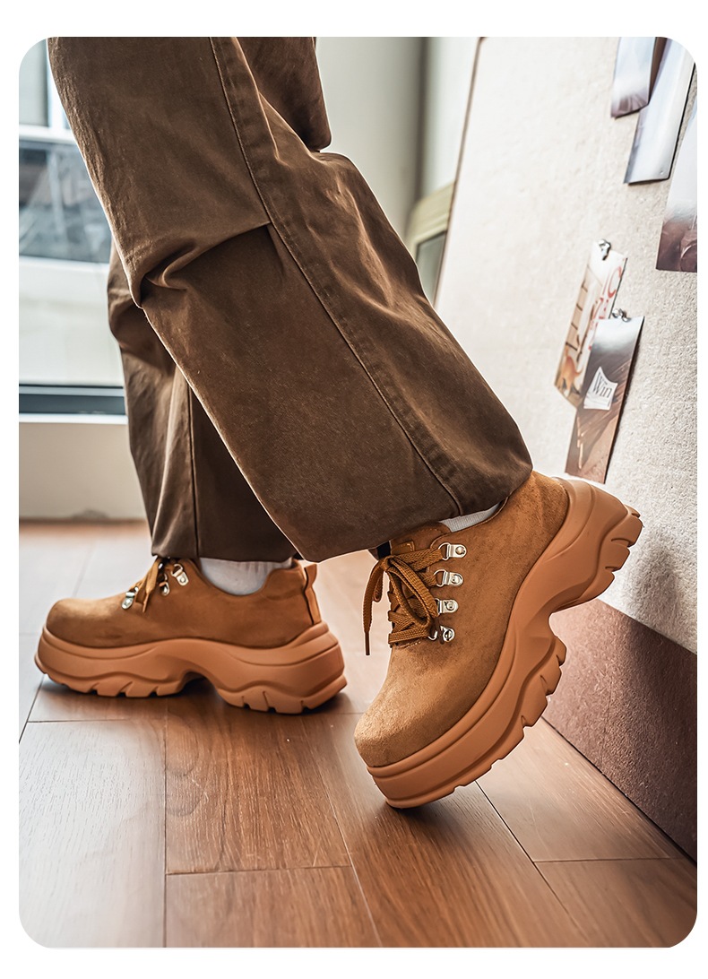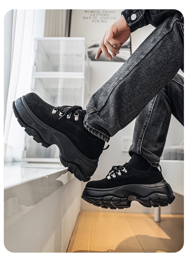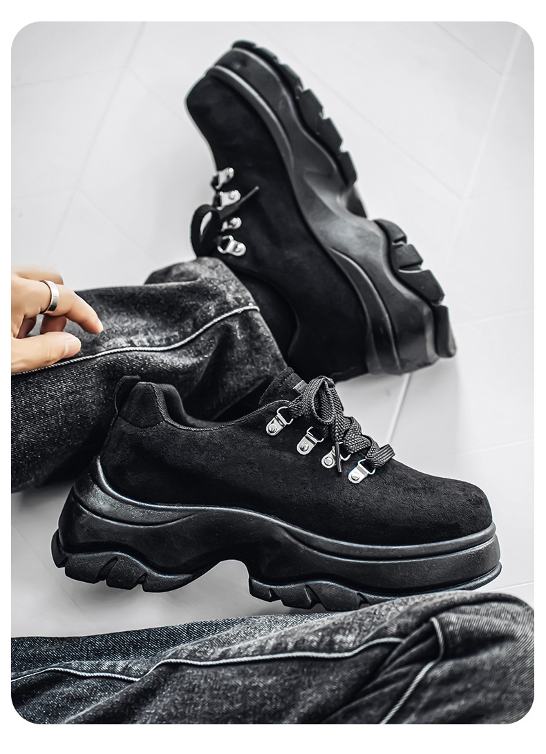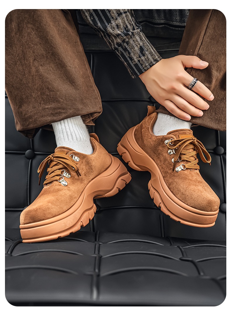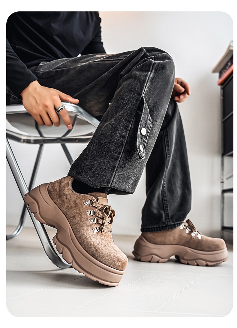 厚底增高休闲皮鞋绒面时尚老爹潮男鞋秋冬新款青年工装德比鞋低帮