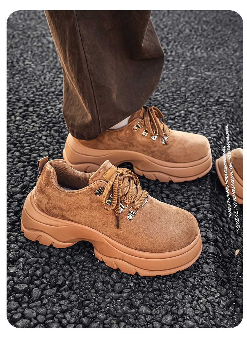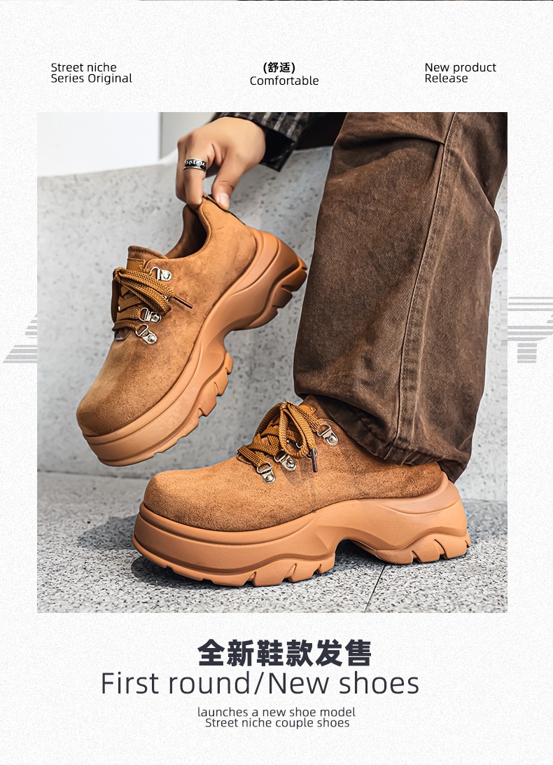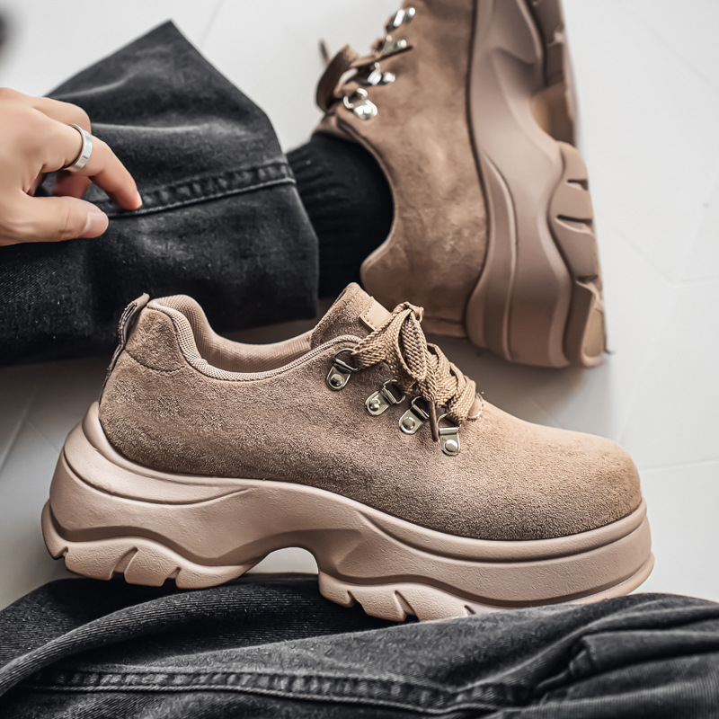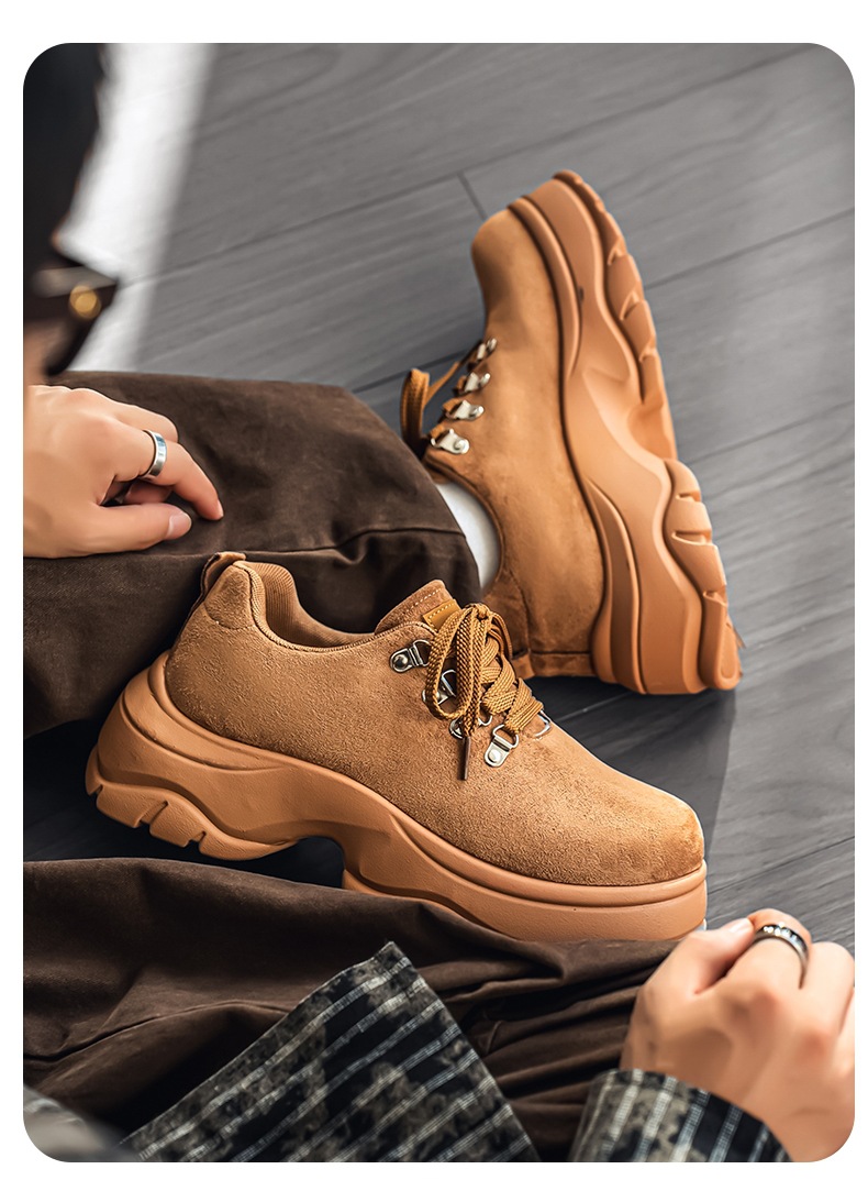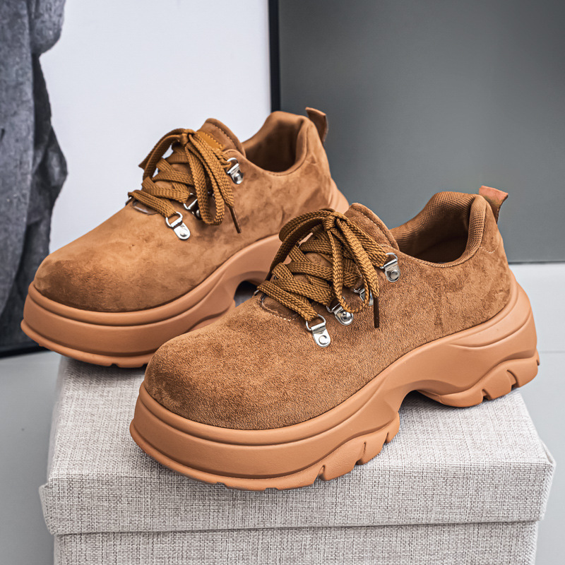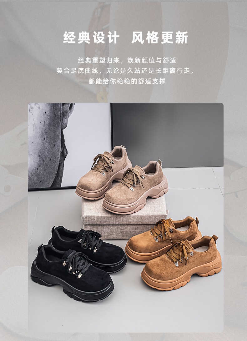厚底增高休闲皮鞋绒面时尚老爹潮男鞋秋冬新款青年工装德比鞋低帮