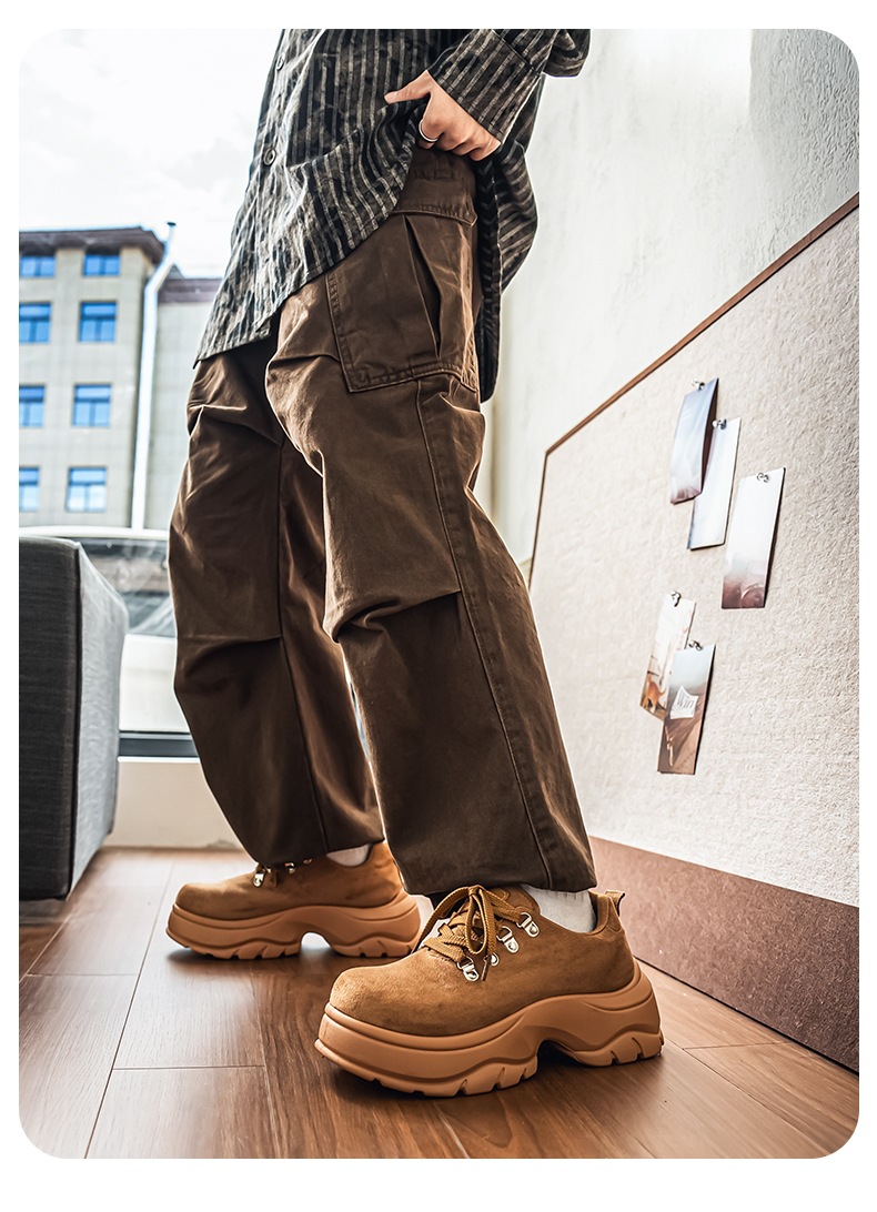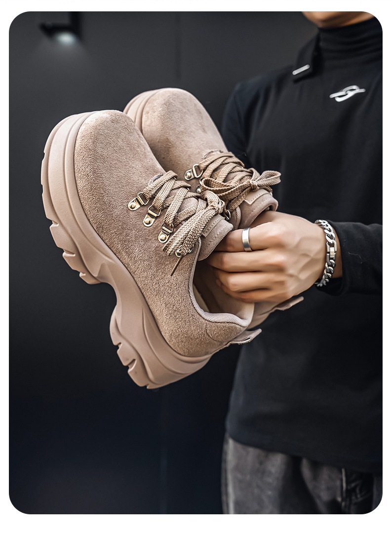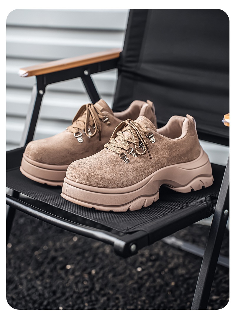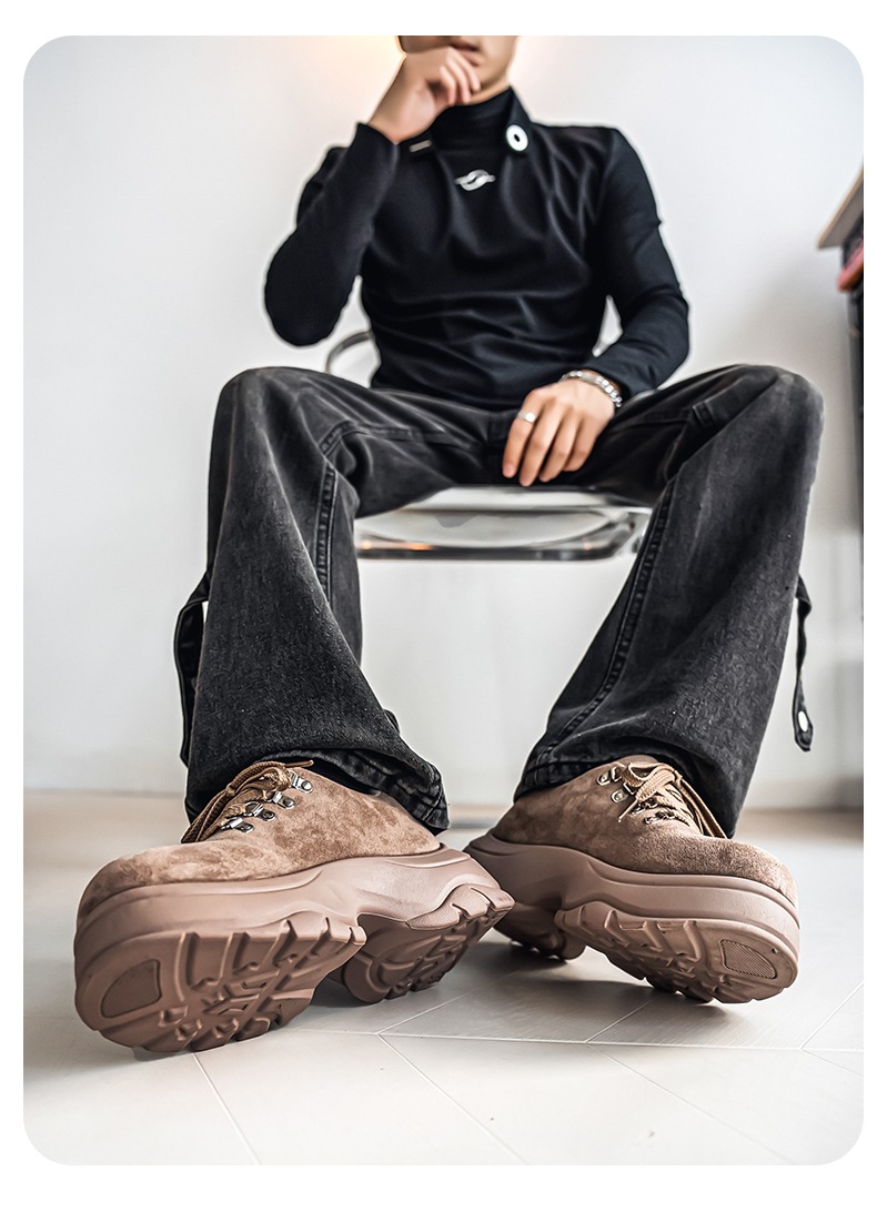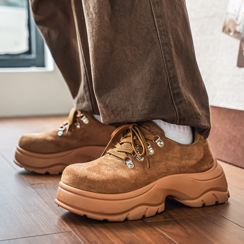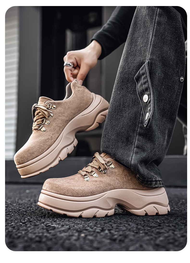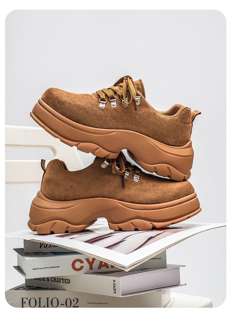 厚底增高休闲皮鞋绒面时尚老爹潮男鞋秋冬新款青年工装德比鞋低帮