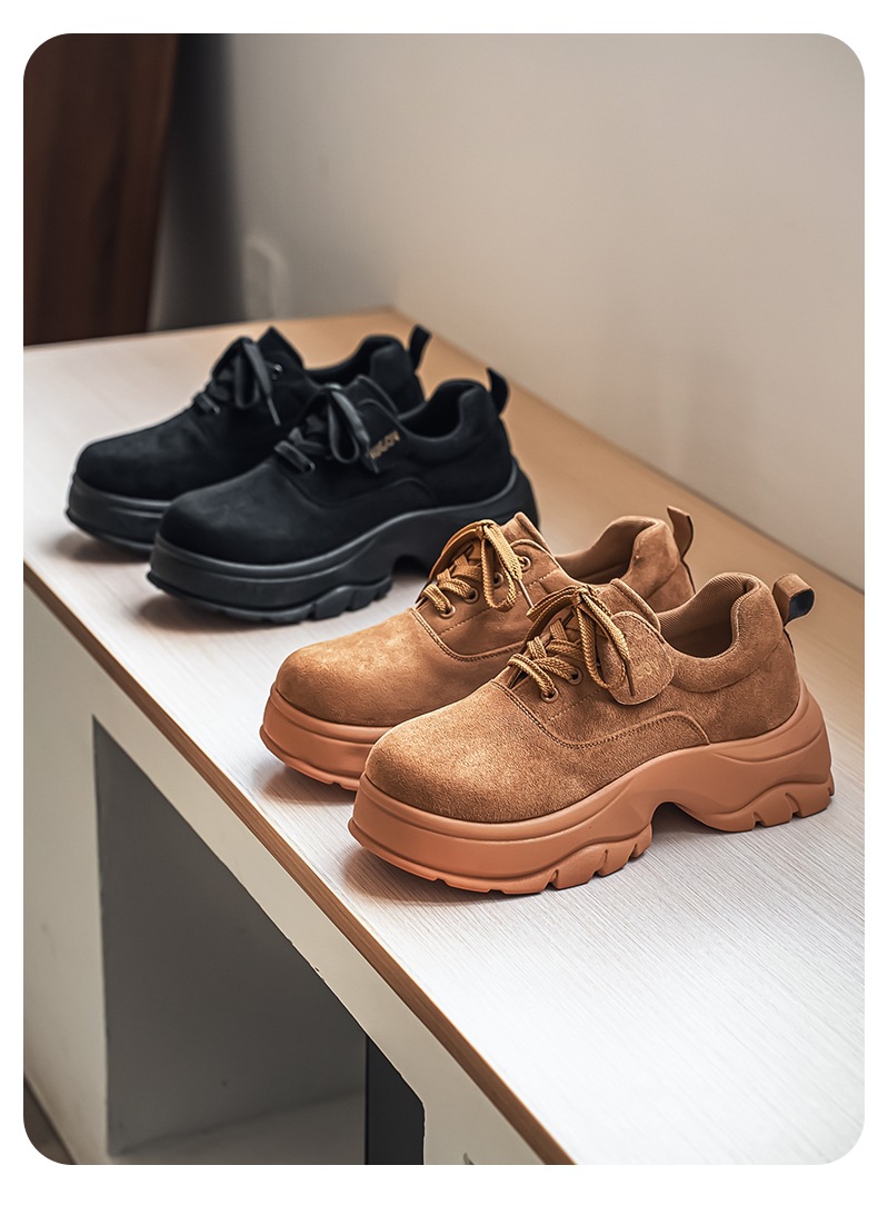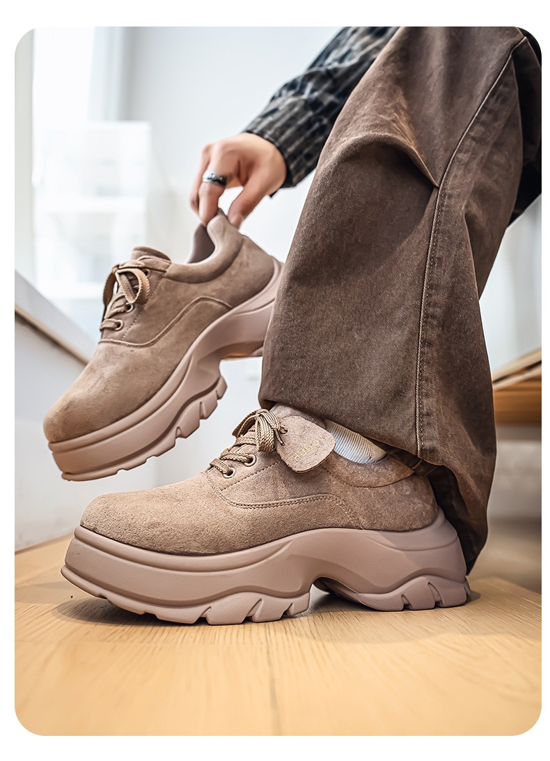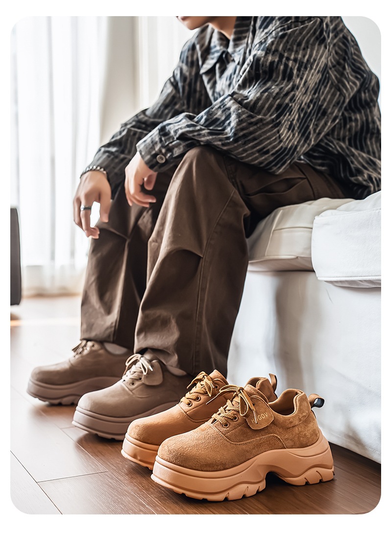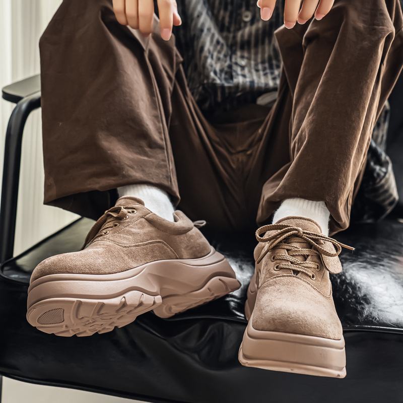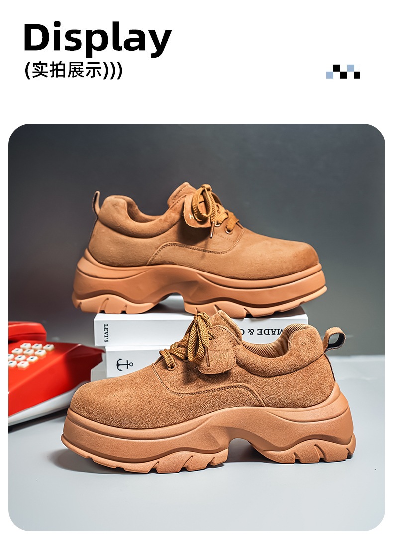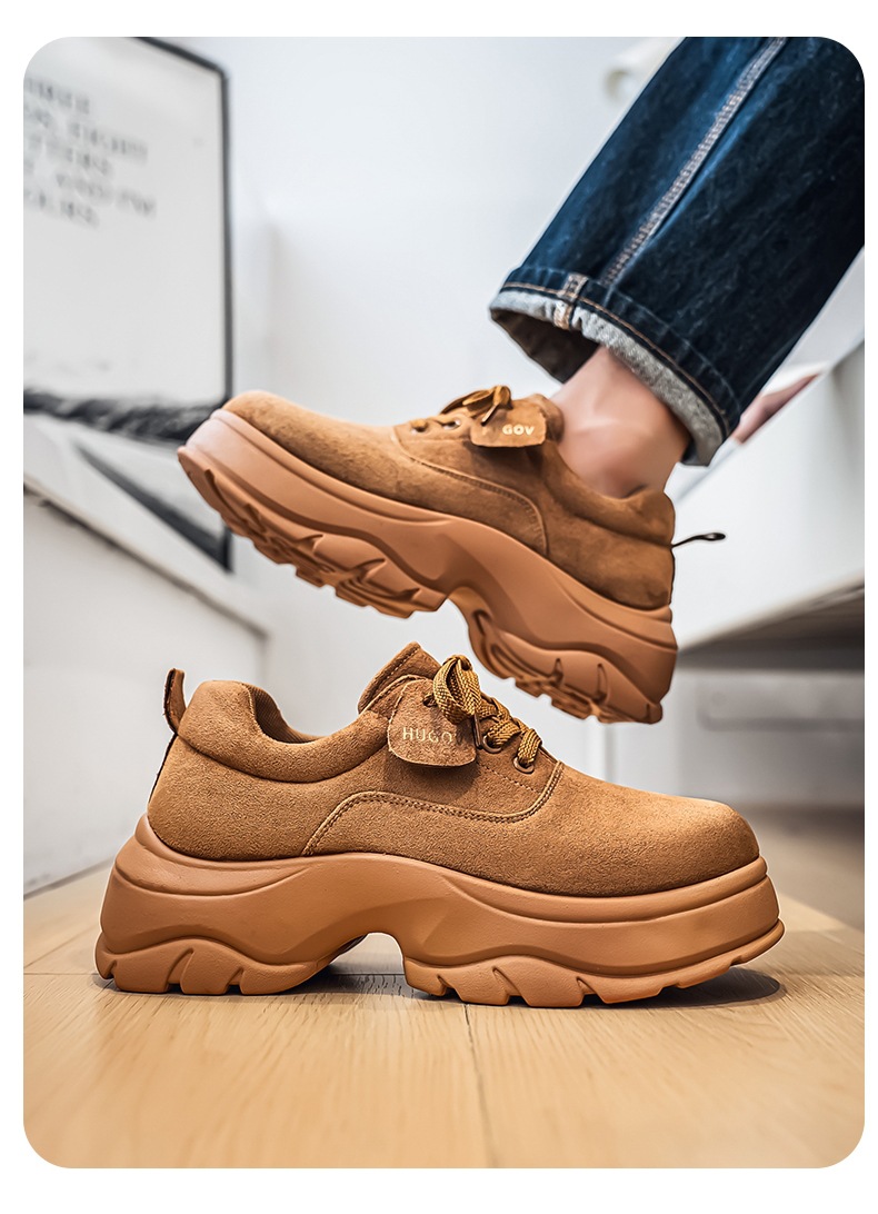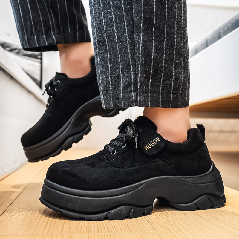 厚底增高休闲皮鞋绒面时尚老爹潮男鞋秋冬新款青年德比鞋系带低帮
