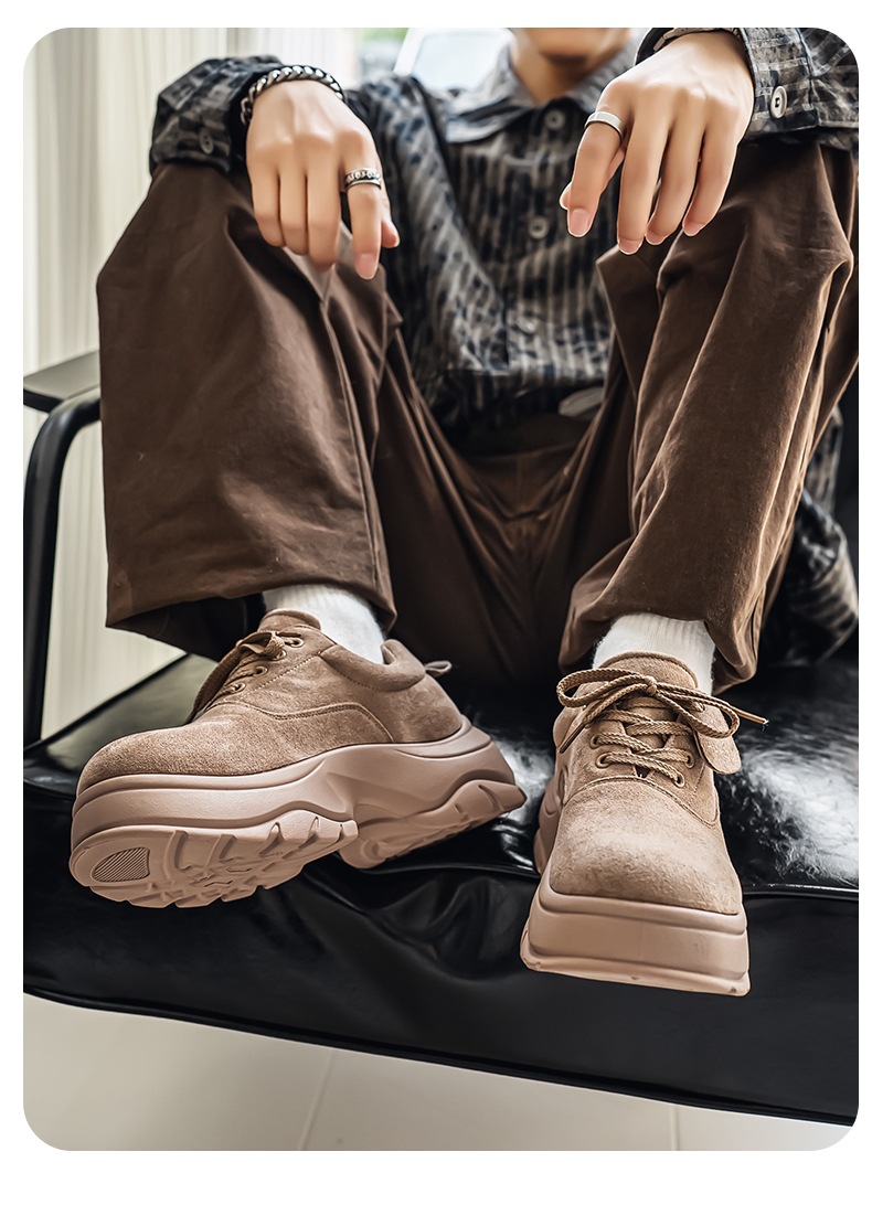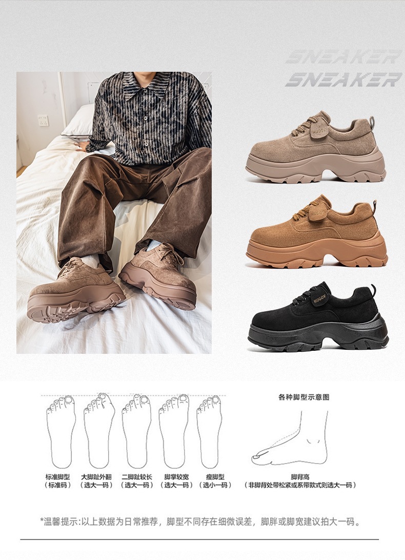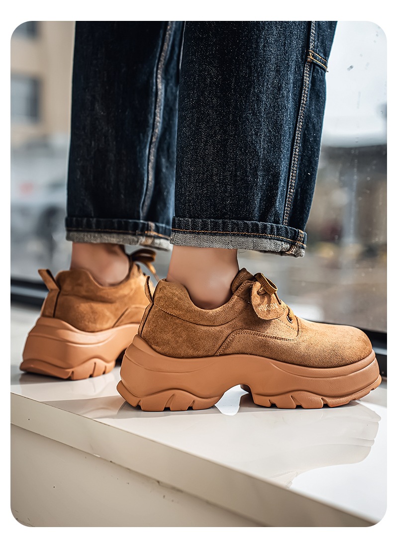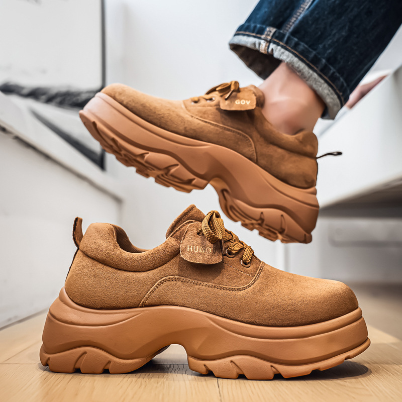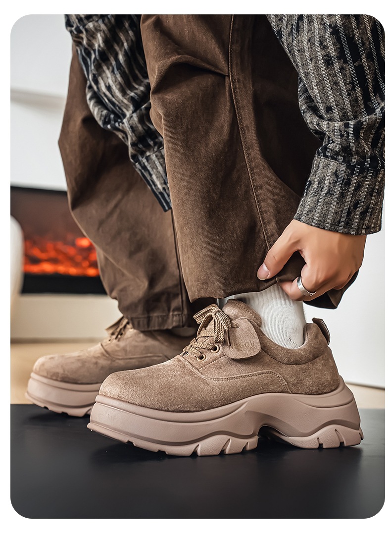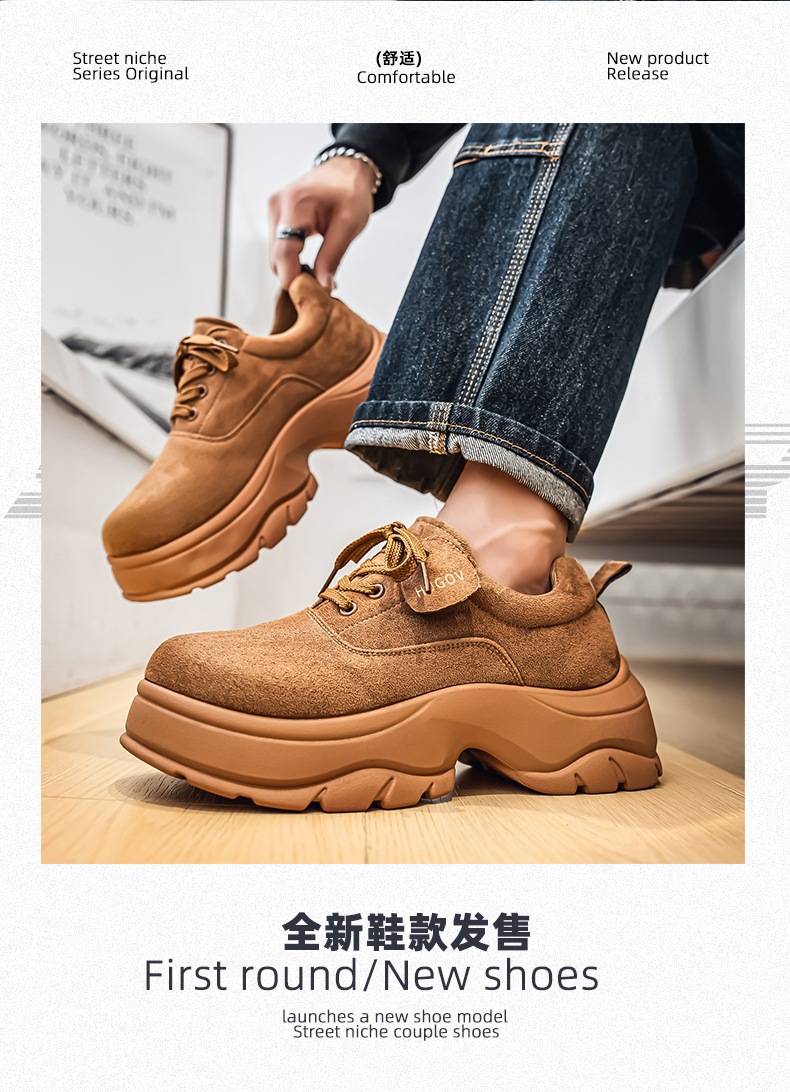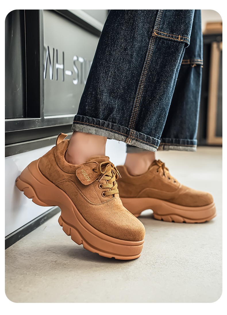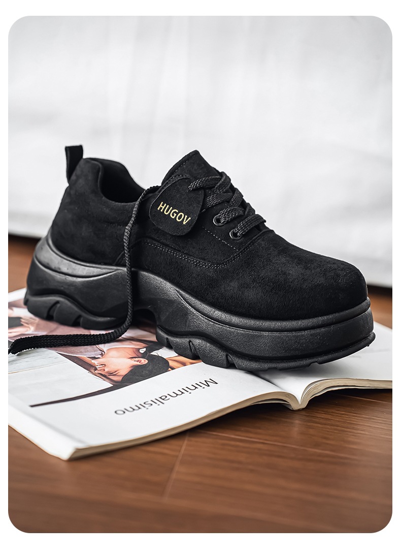 厚底增高休闲皮鞋绒面时尚老爹潮男鞋秋冬新款青年德比鞋系带低帮