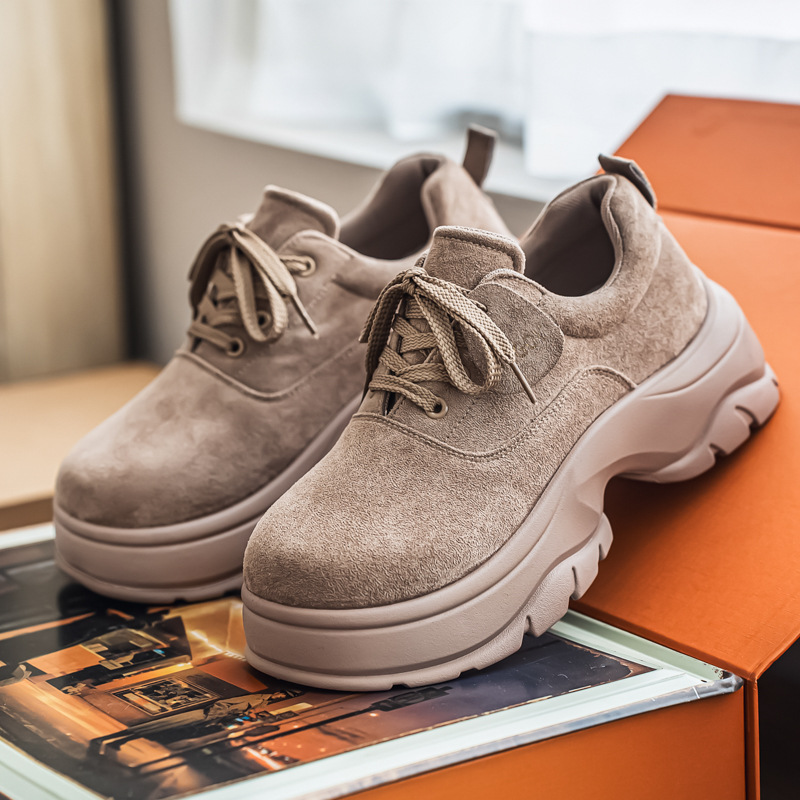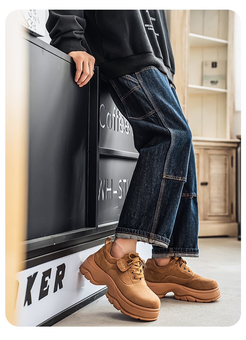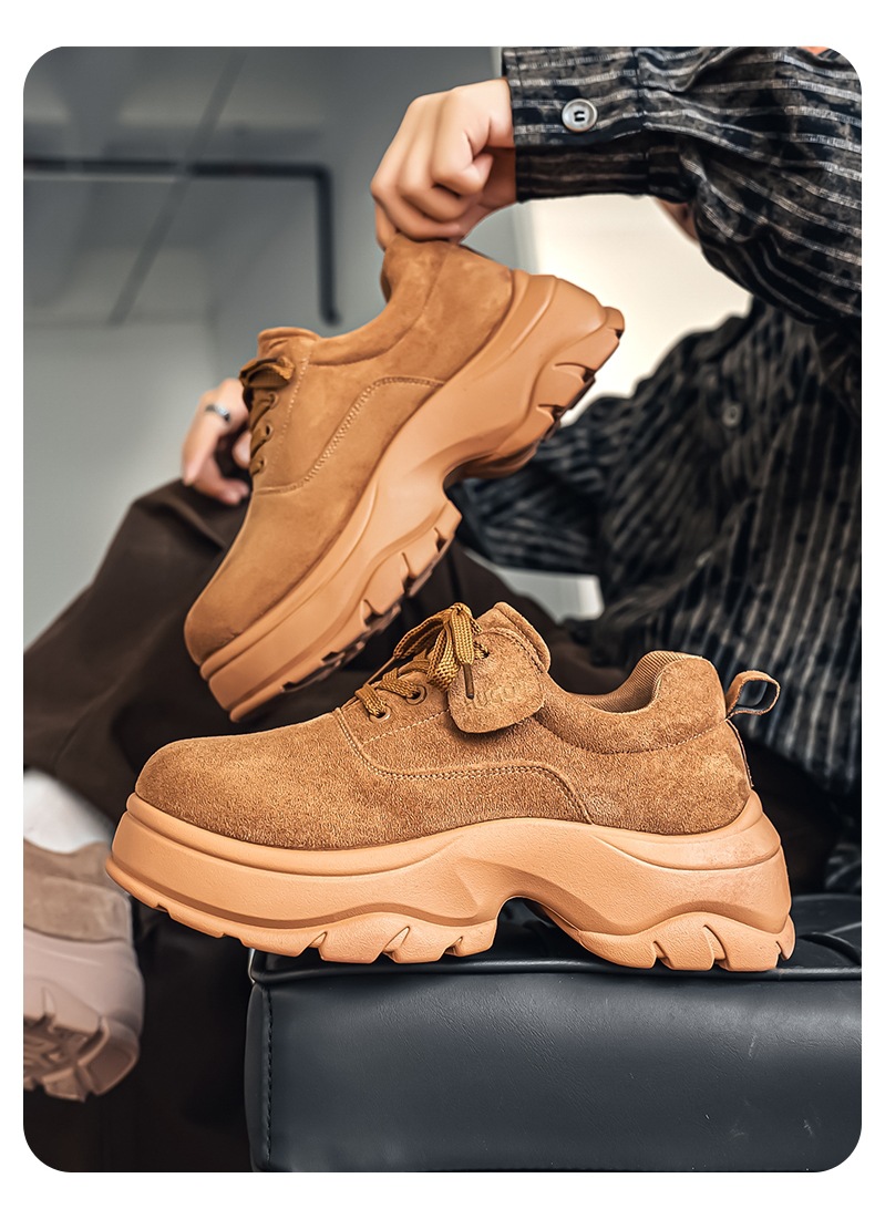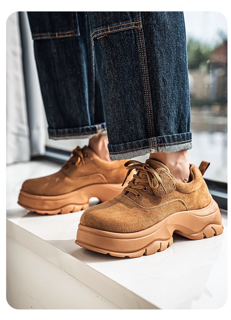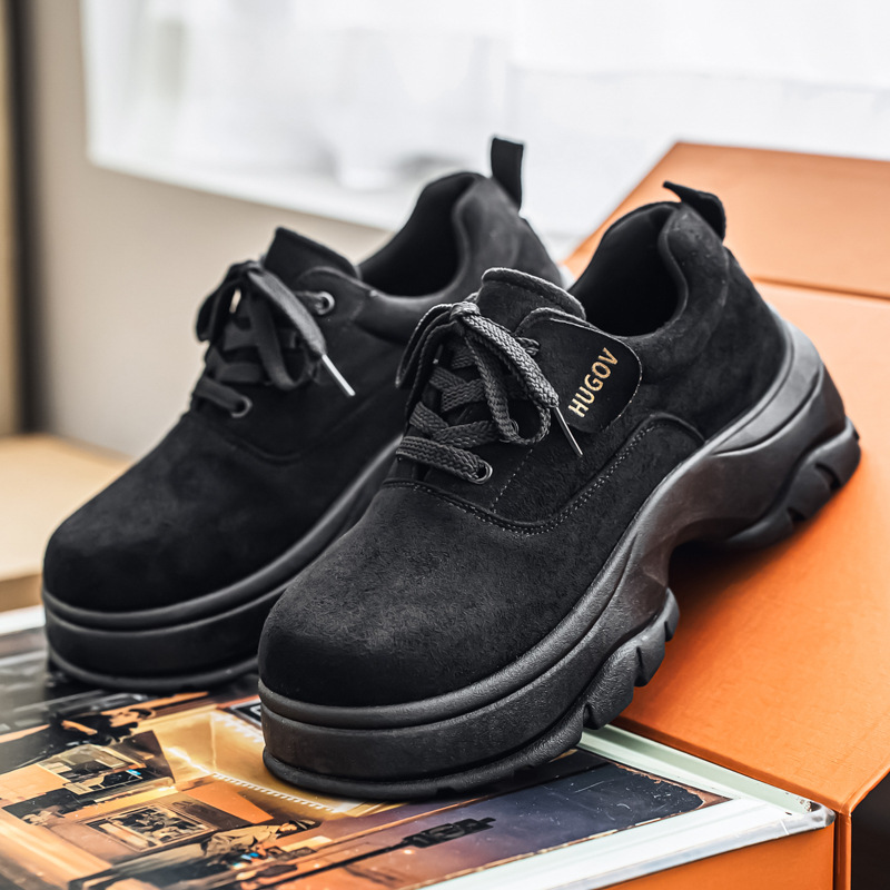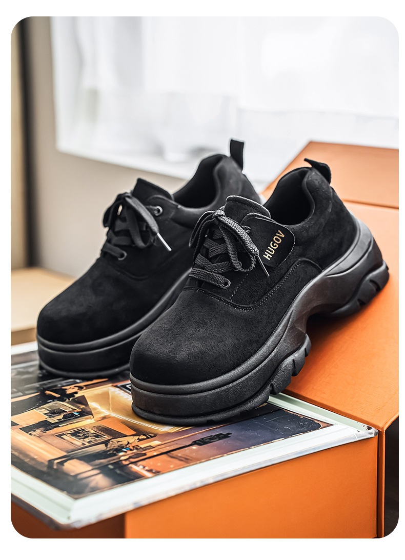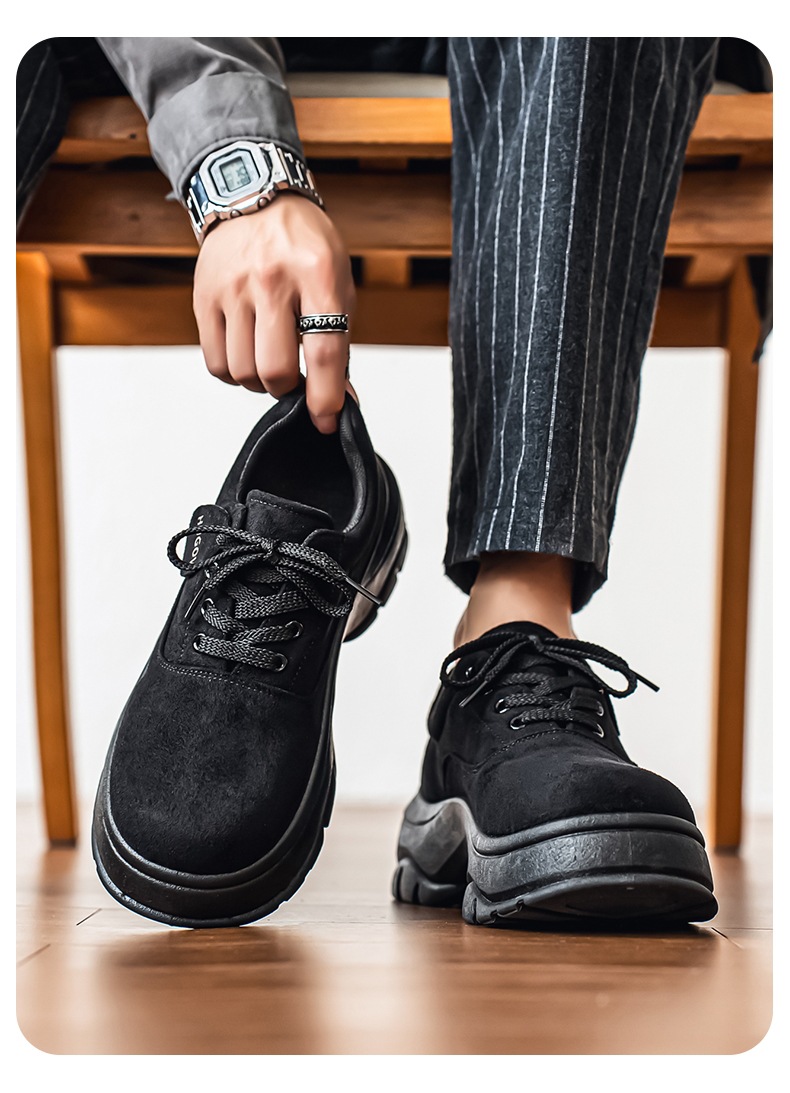 厚底增高休闲皮鞋绒面时尚老爹潮男鞋秋冬新款青年德比鞋系带低帮