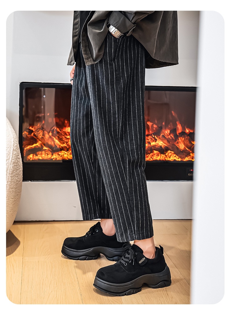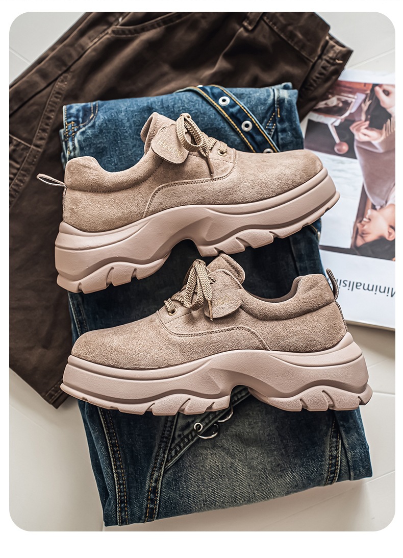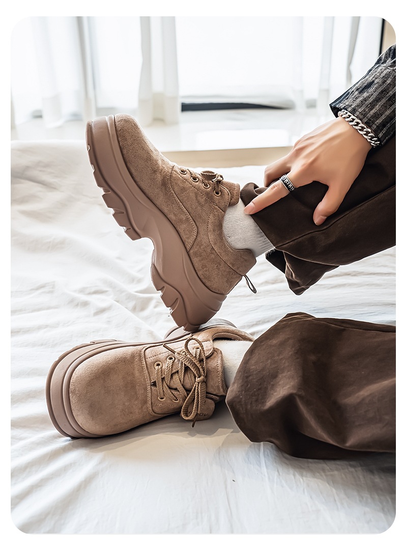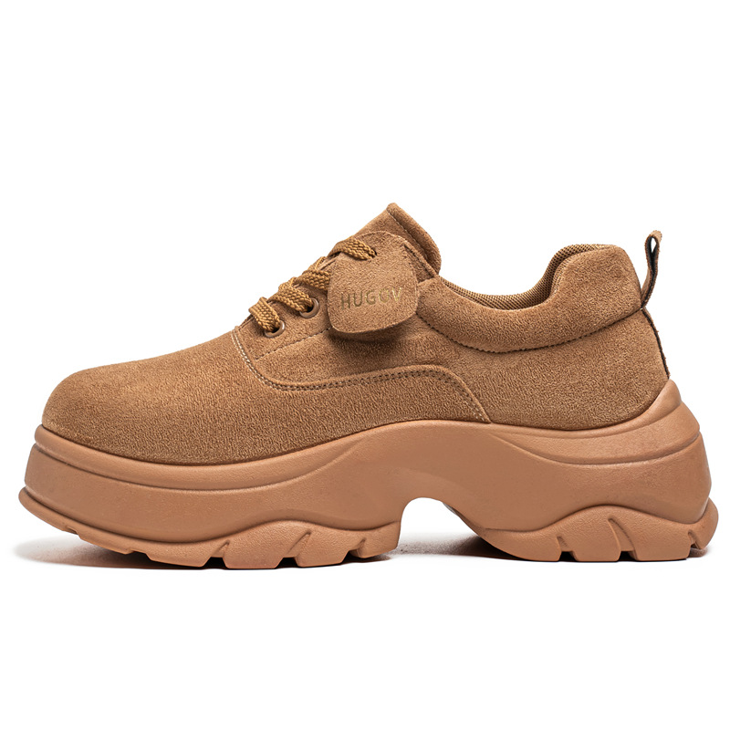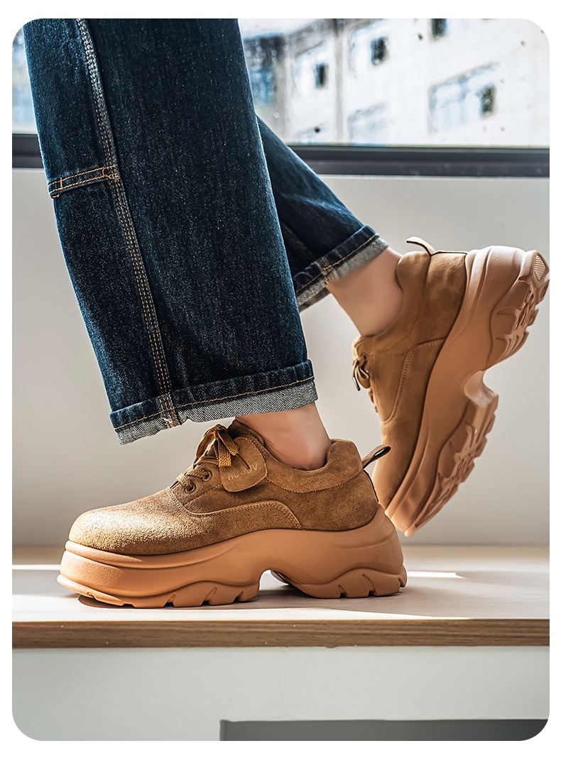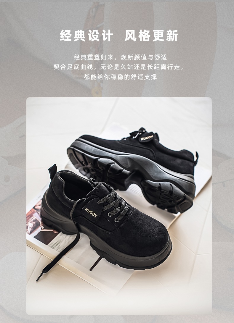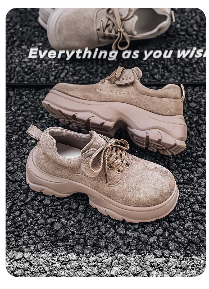 厚底增高休闲皮鞋绒面时尚老爹潮男鞋秋冬新款青年德比鞋系带低帮