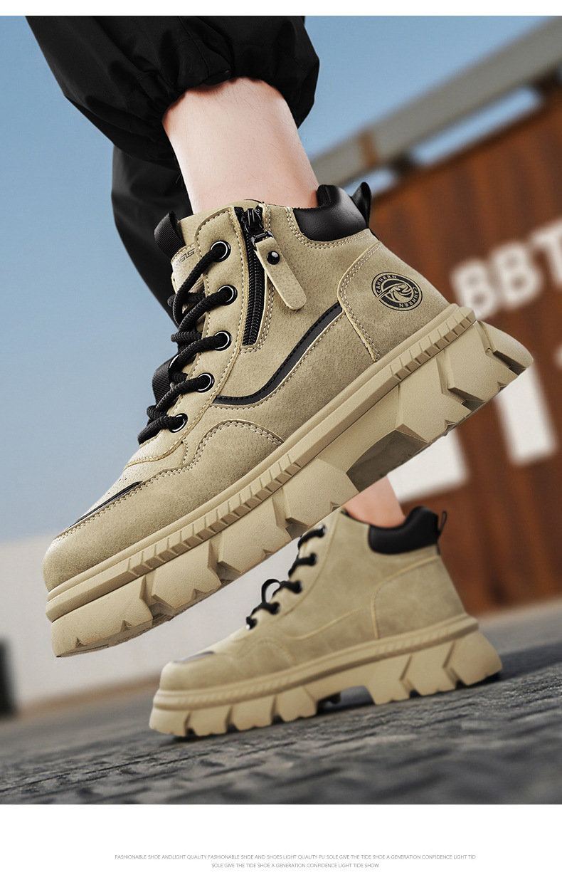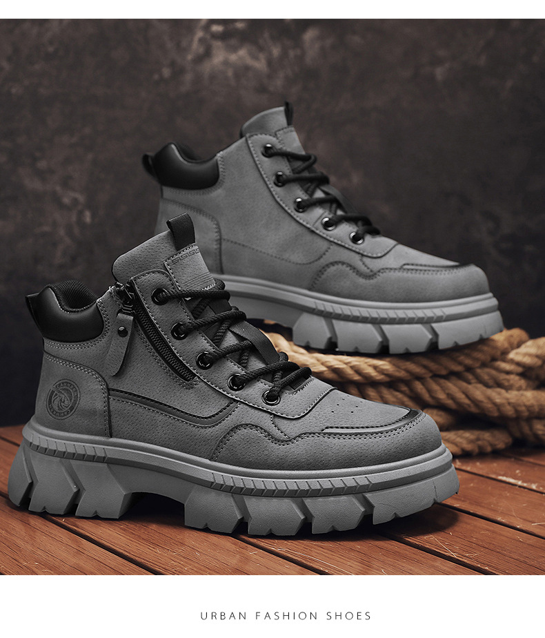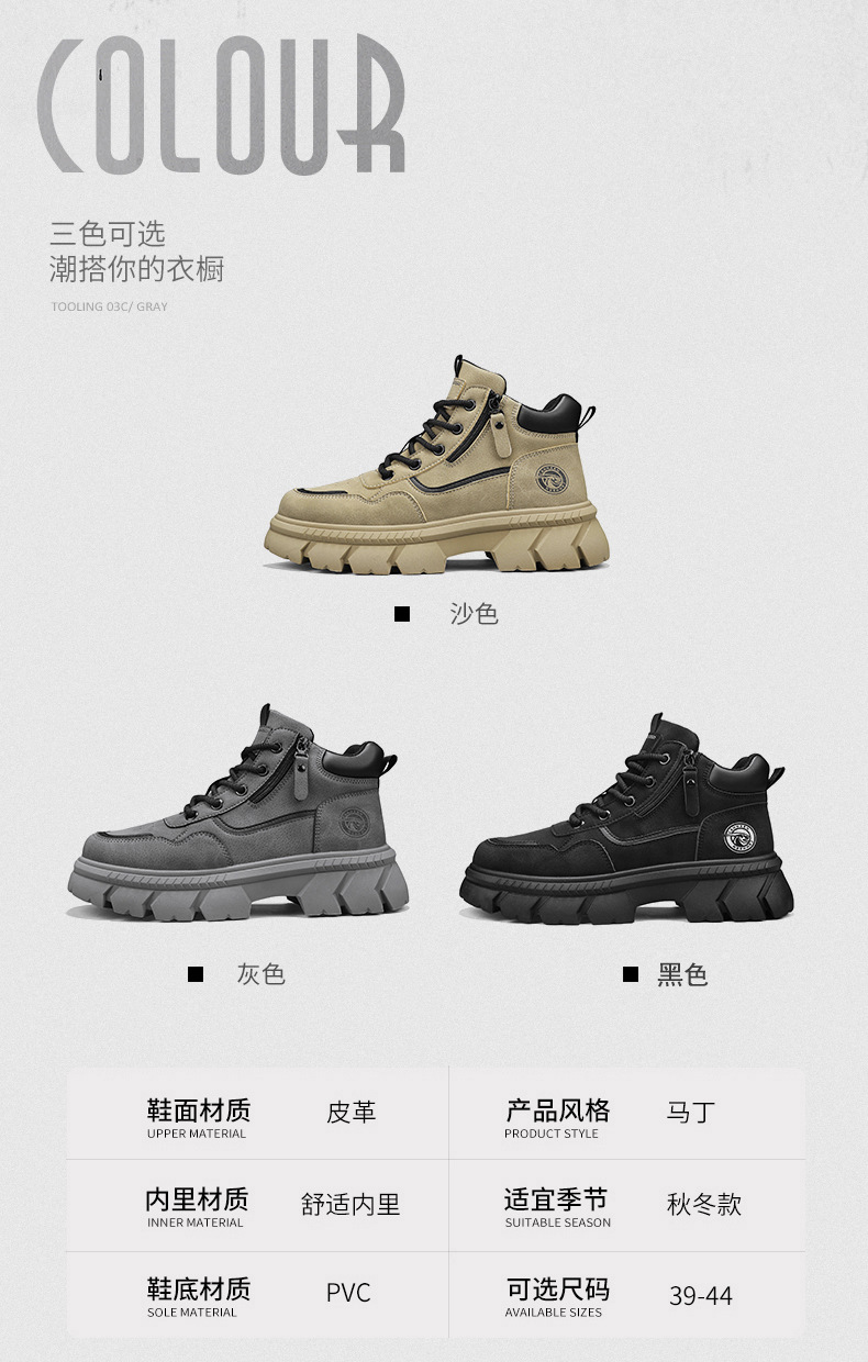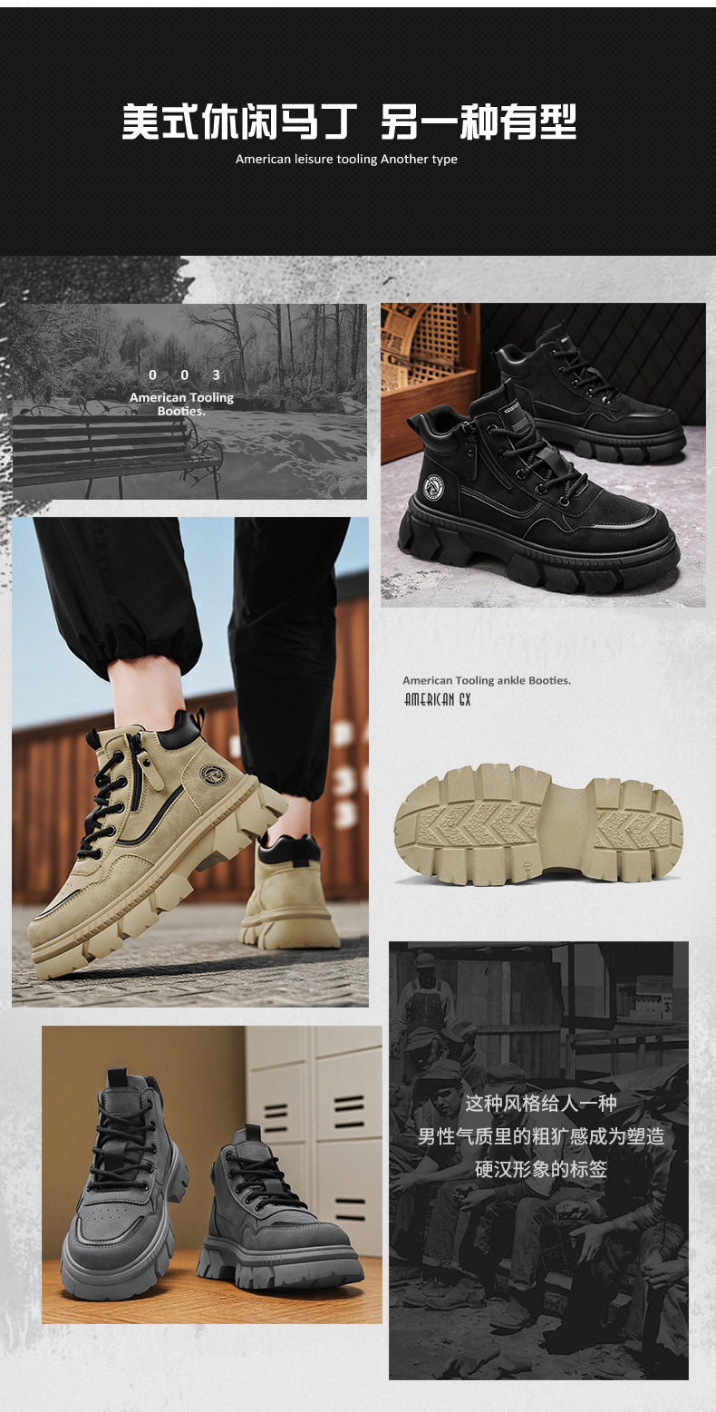 高帮休闲马丁鞋男款皮面工装鞋男士厚底增高男鞋2025秋冬季潮鞋子