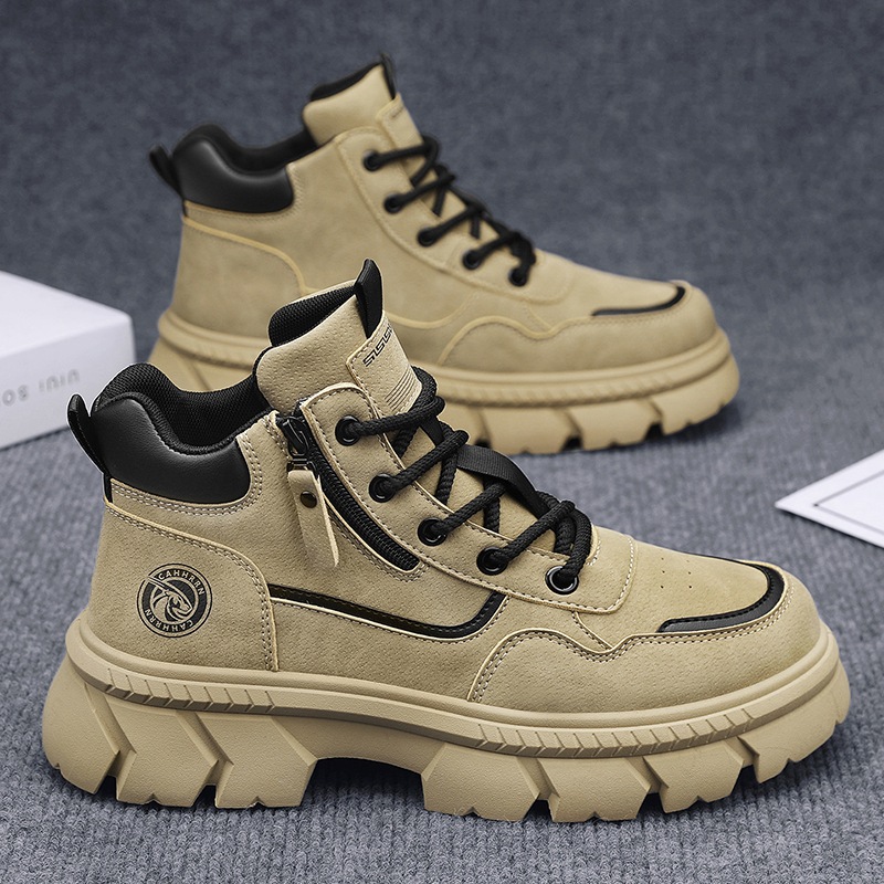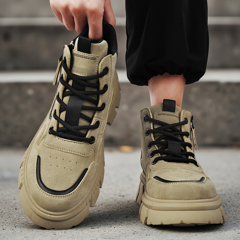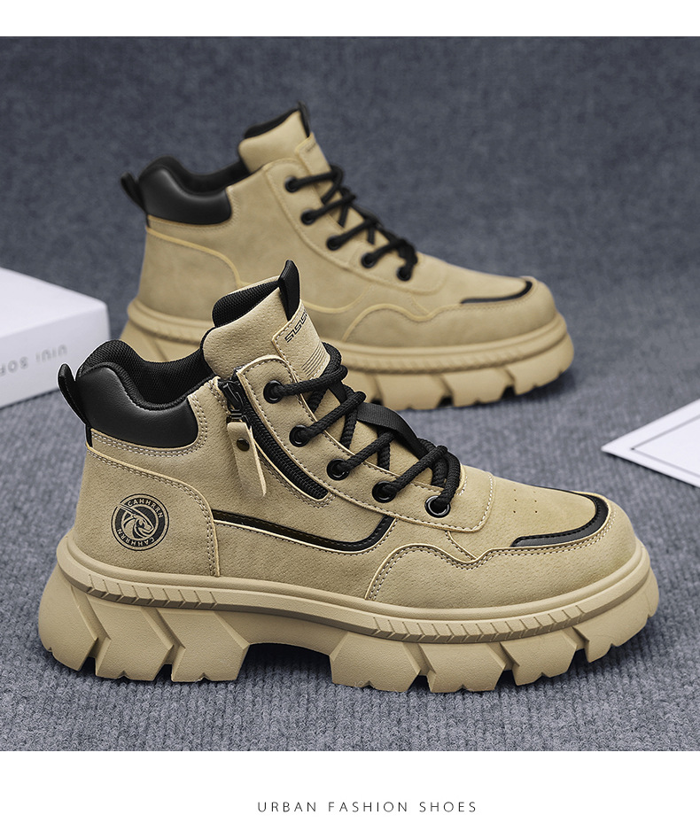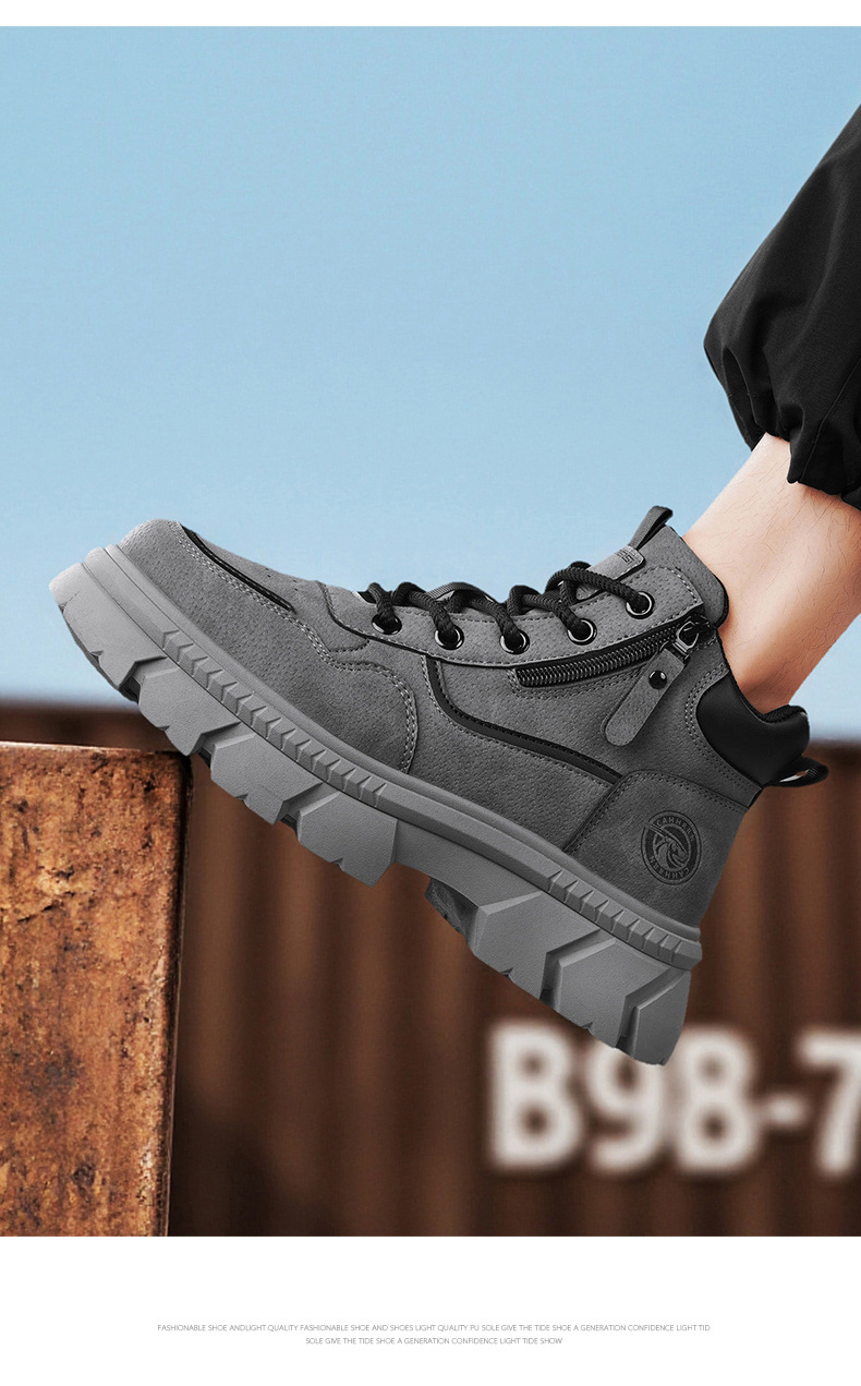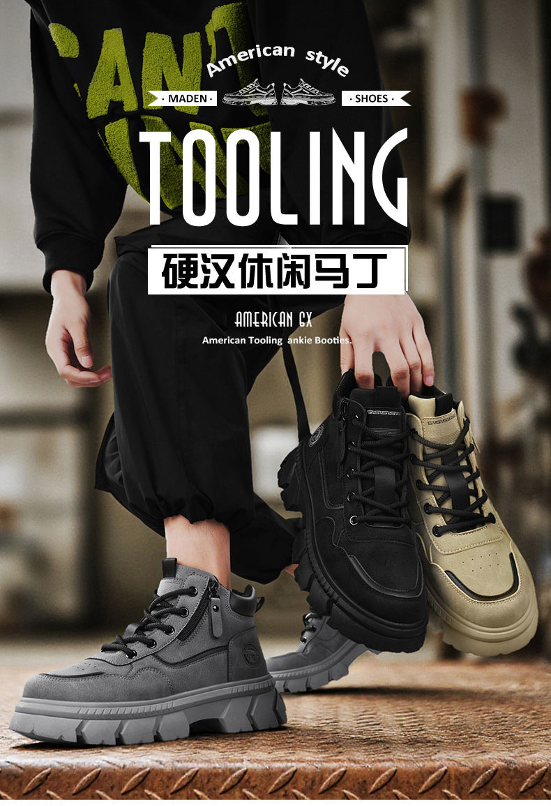 高帮休闲马丁鞋男款皮面工装鞋男士厚底增高男鞋2025秋冬季潮鞋子