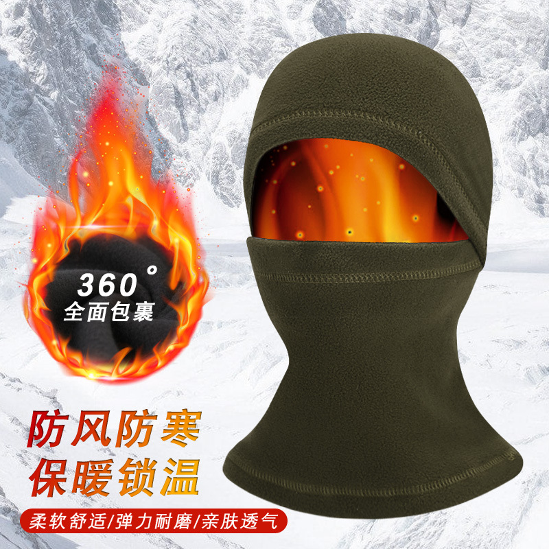 秋冬摇粒绒保暖套头帽跨境一体面罩围脖骑行运动防风防寒滑雪帽子